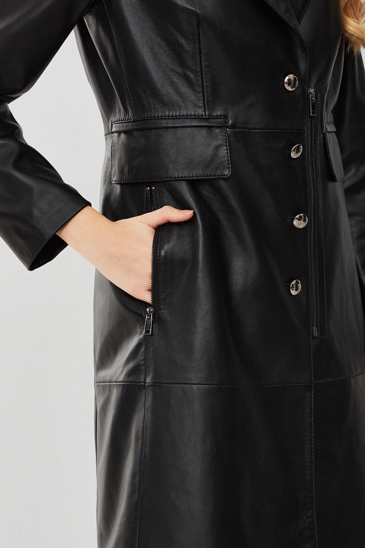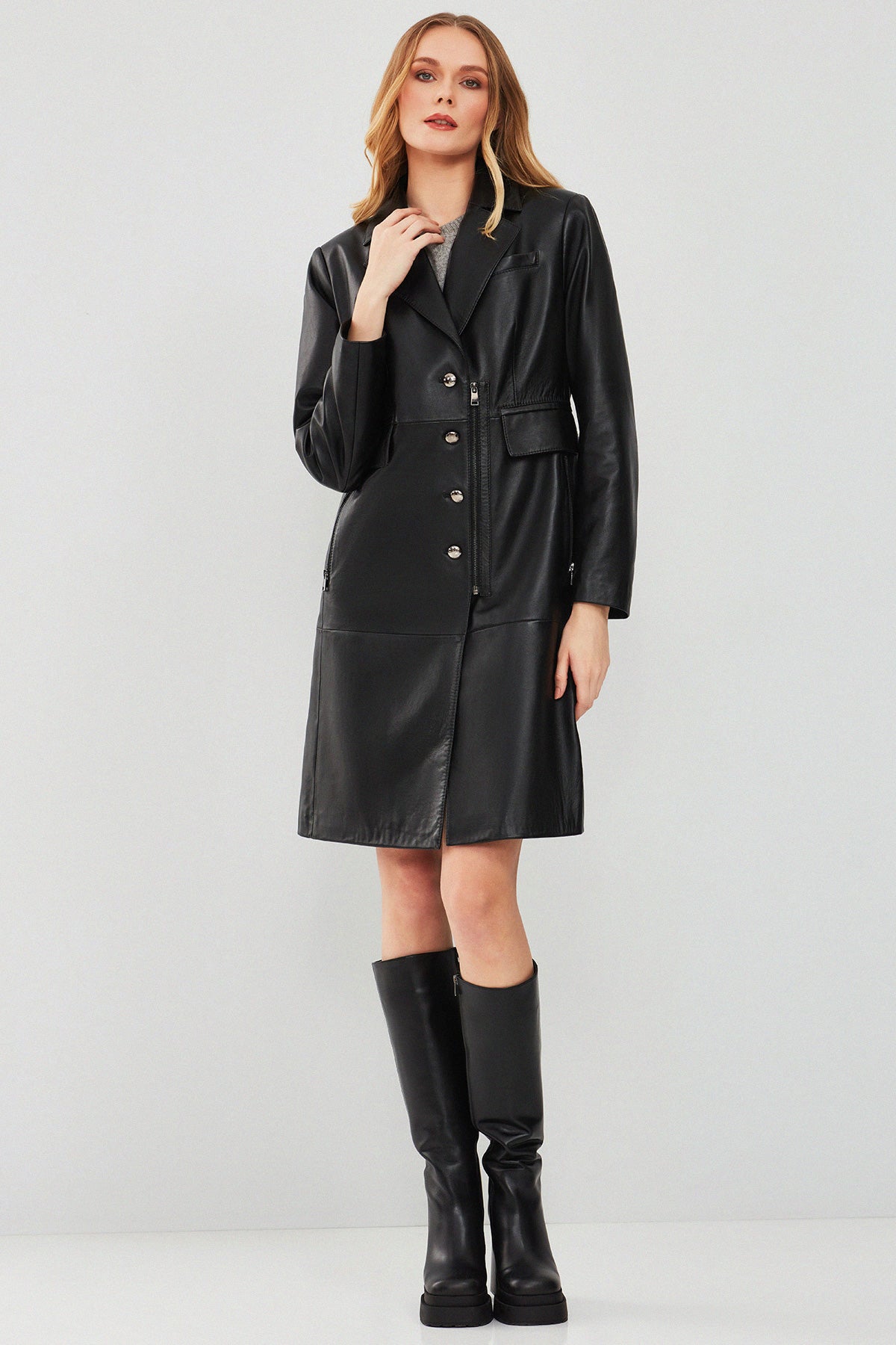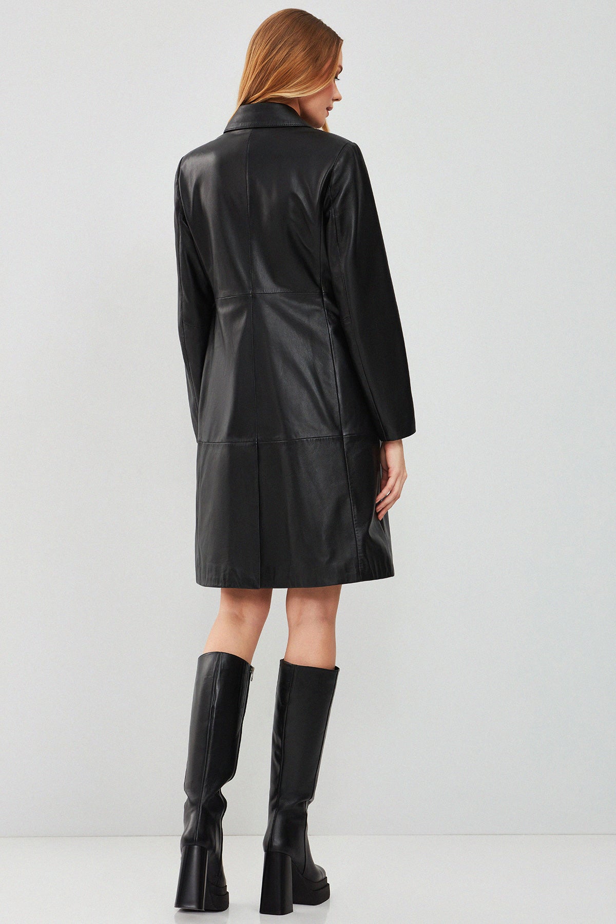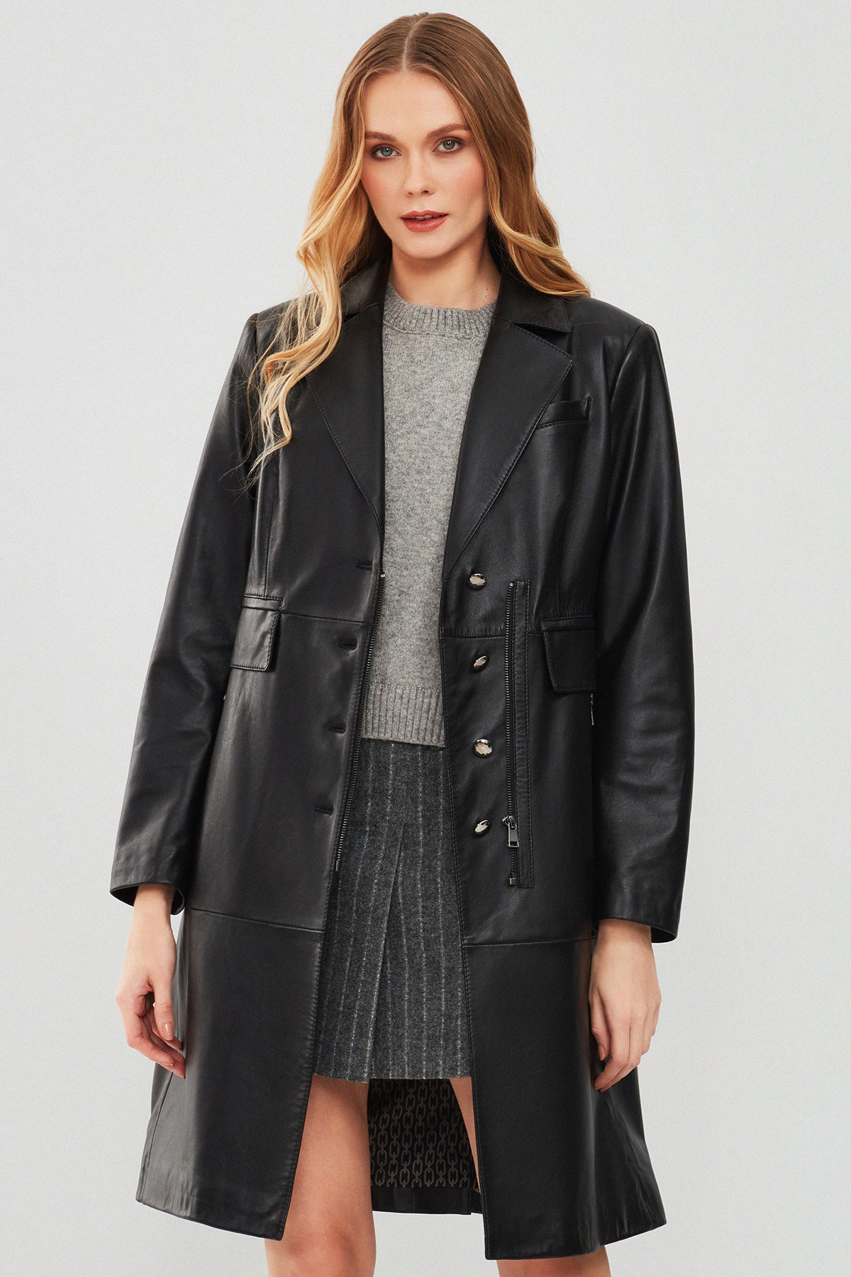 Cameron Kadın Siyah Uzun Deri Ceket