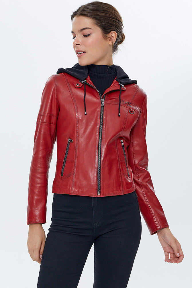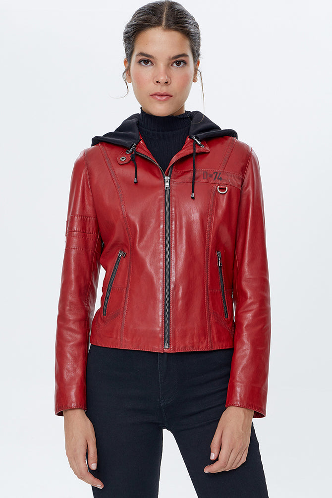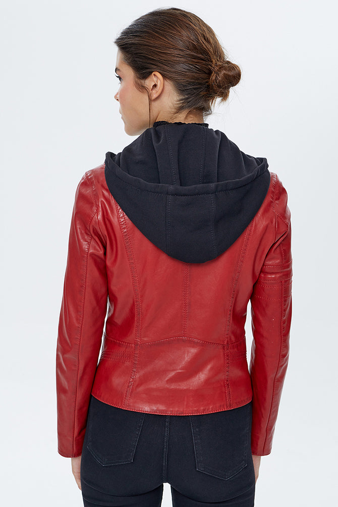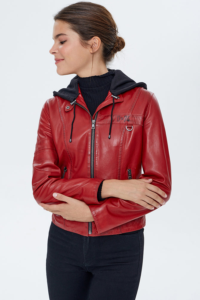 Carrera Kadın Kırmızı Kapüşonlu Deri Ceket