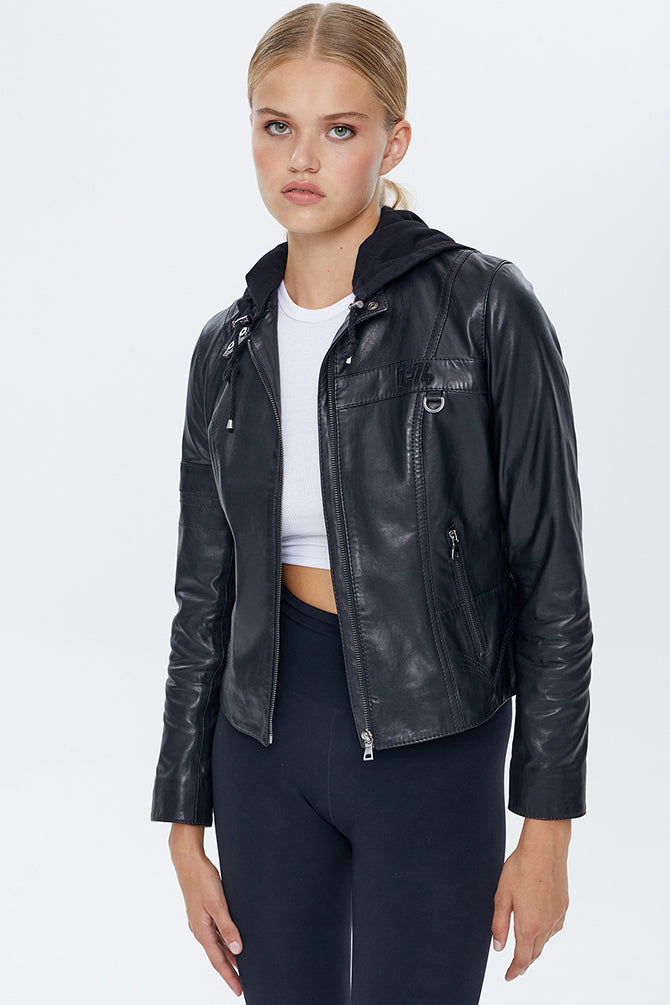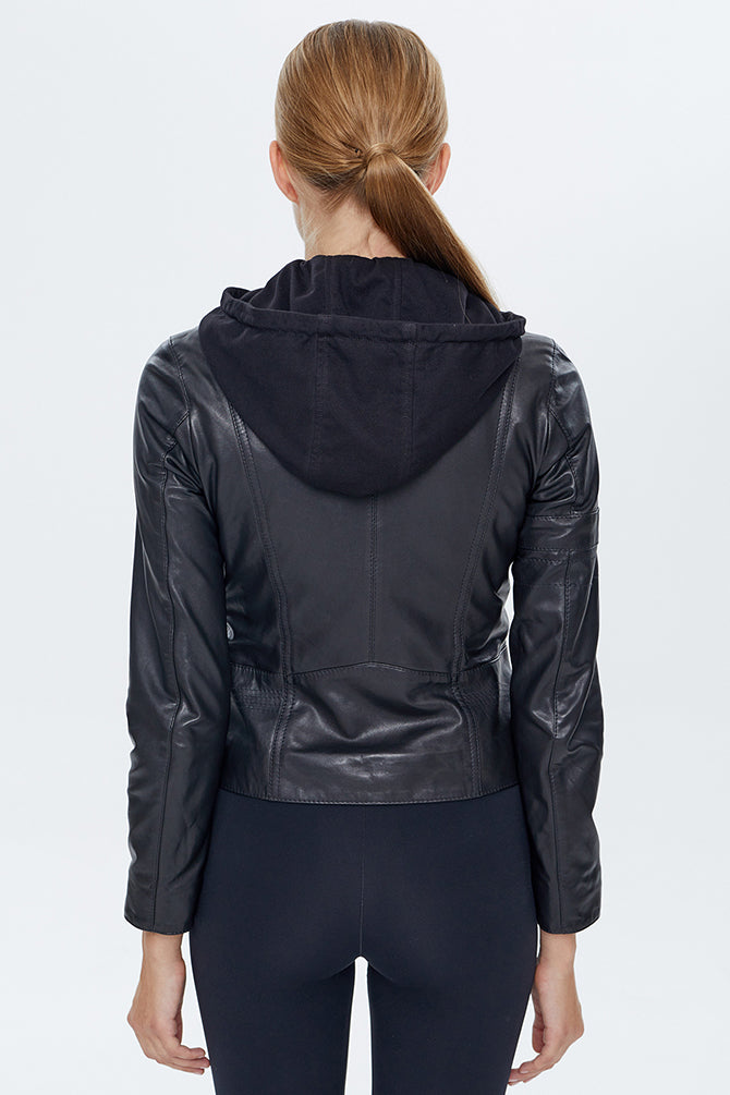 Carrera Kadın Siyah Kapüşonlu Deri Ceket