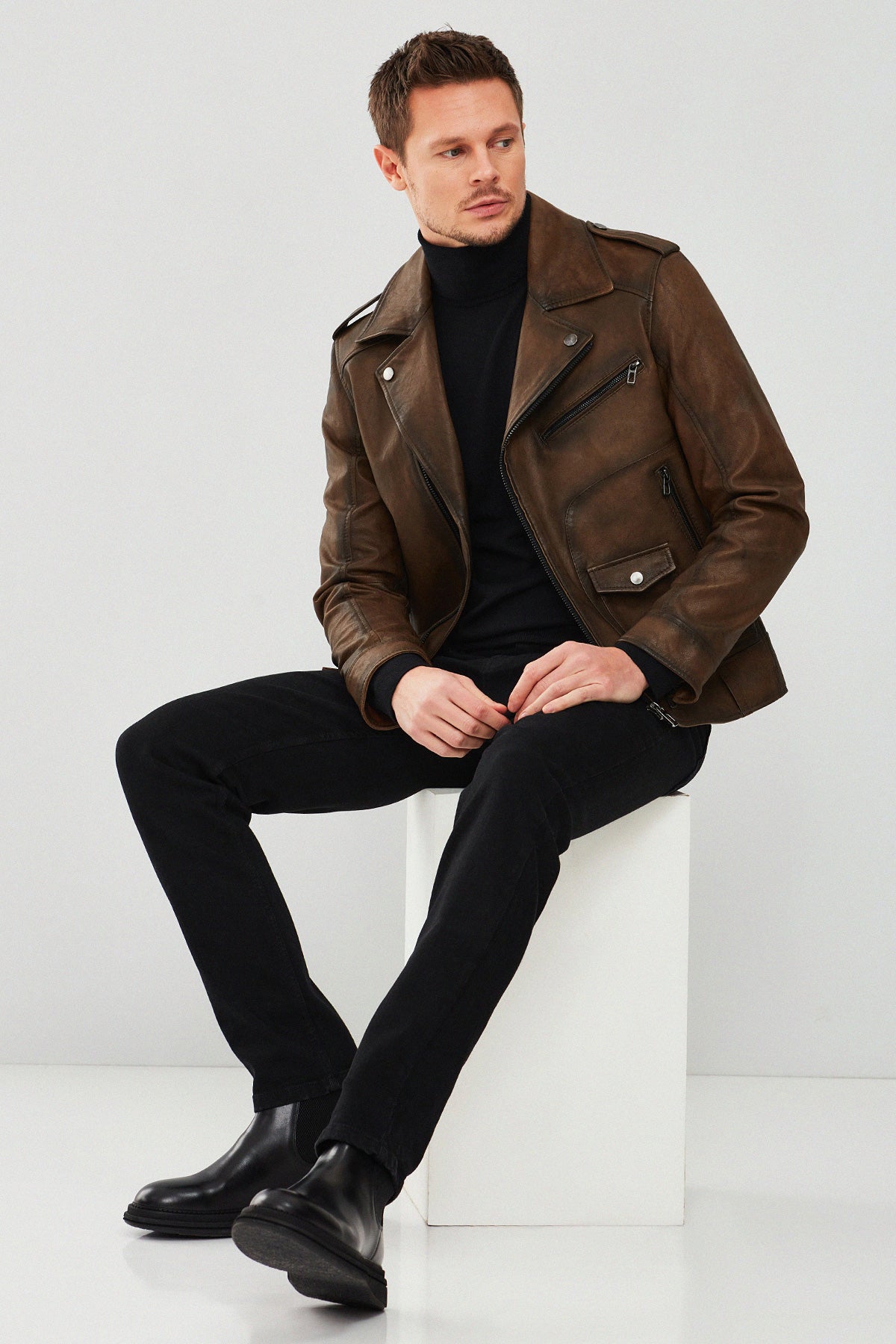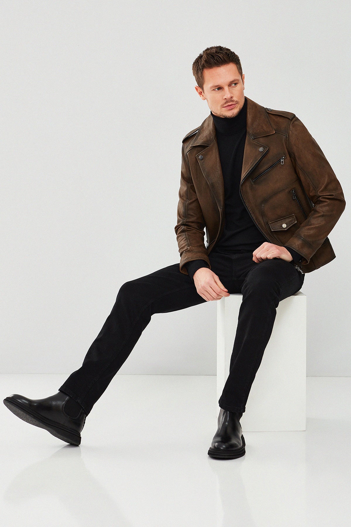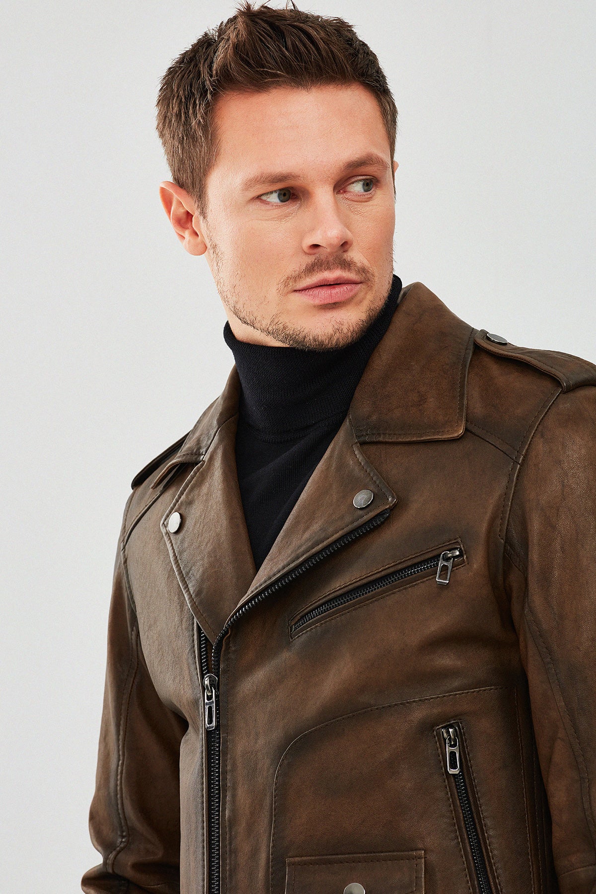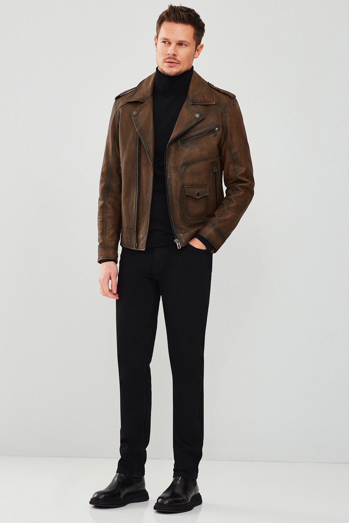 Derimod’un Zarif ve Şıklığı bir arada sunan Carter Erkek Kahverengi Biker Deri Mont ile tarzınızı konuşturun. Ürünün kodu: 23WGD6490M5 25
