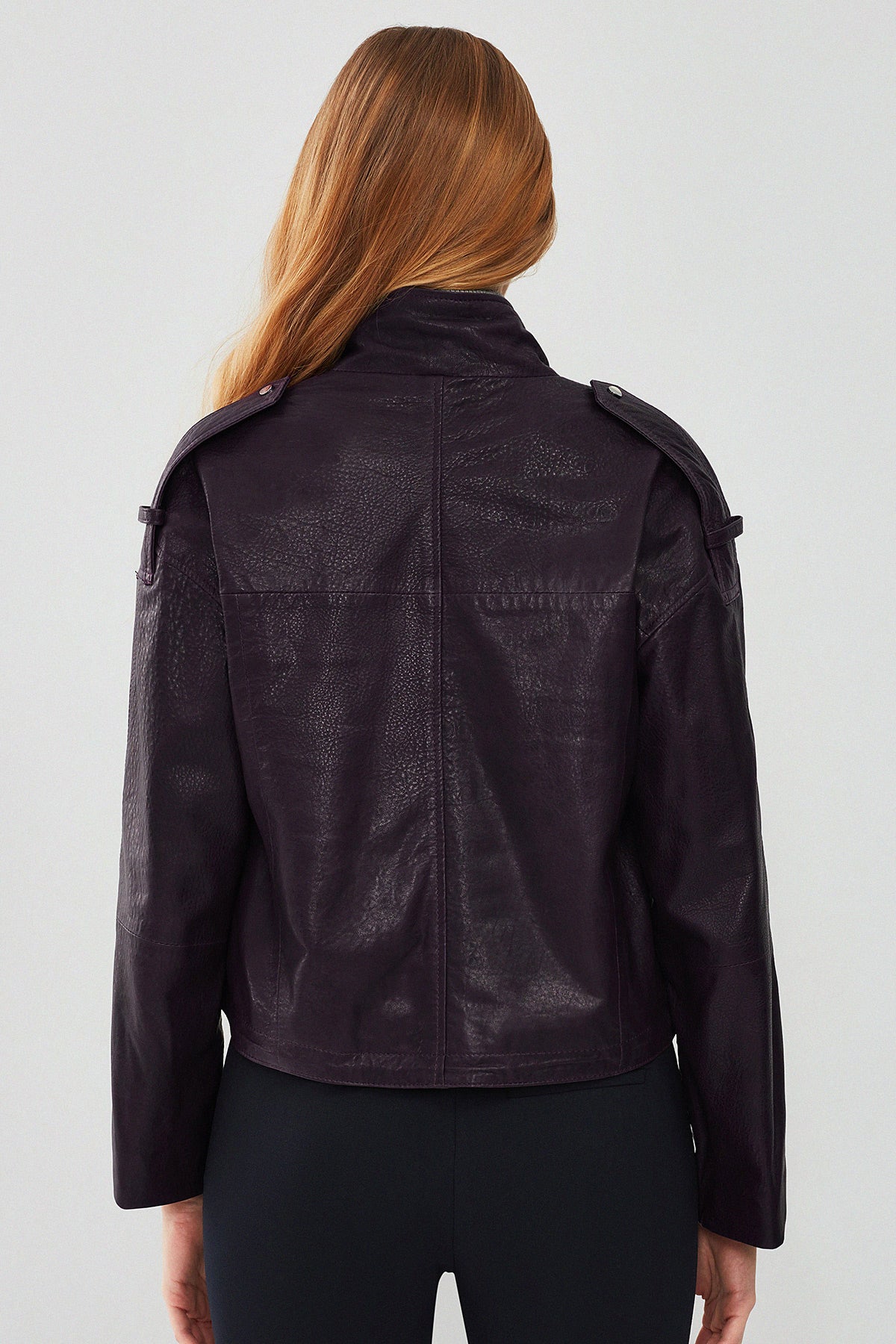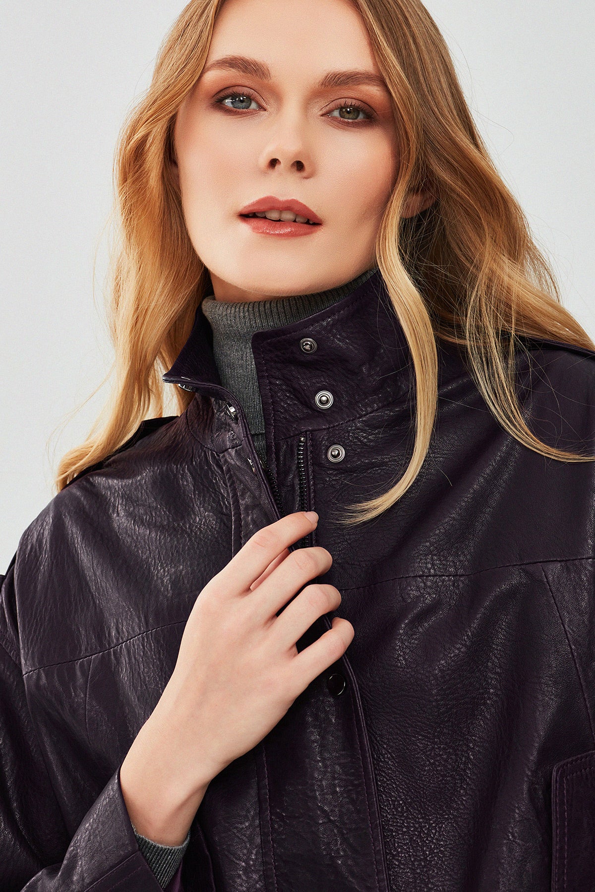 Derimod’un Zarif ve Şıklığı bir arada sunan Cassy Kadın Mor Oversize Deri Ceket ile tarzınızı konuşturun. Ürünün kodu: 23WGD51279M PU