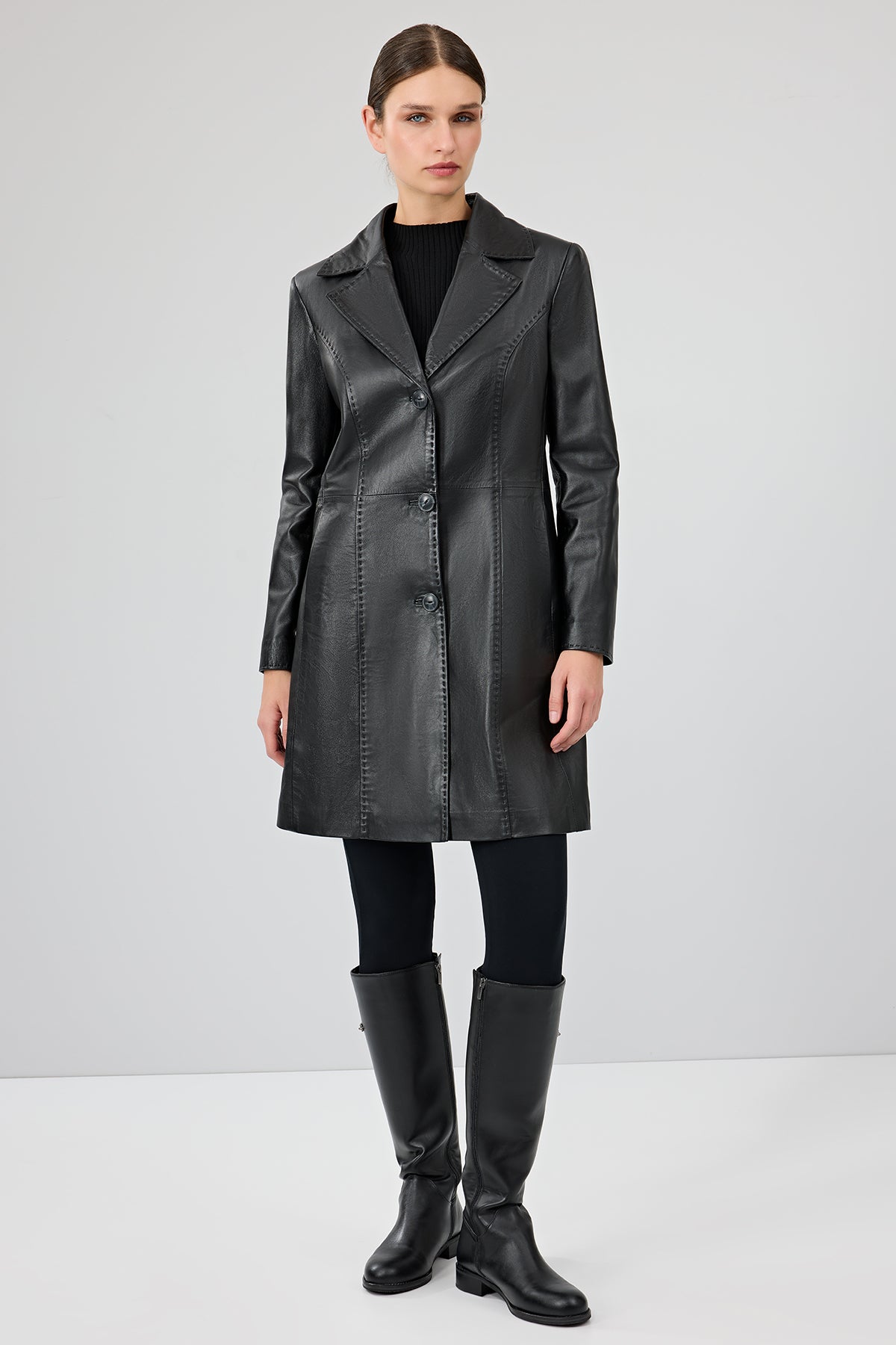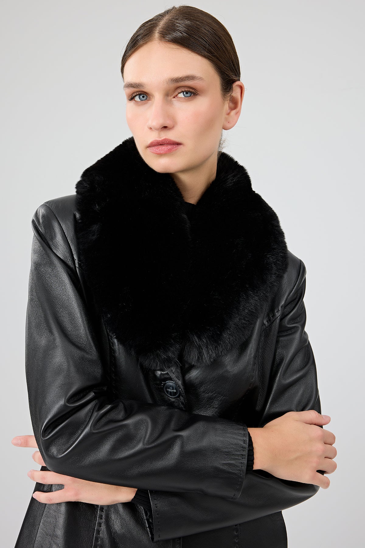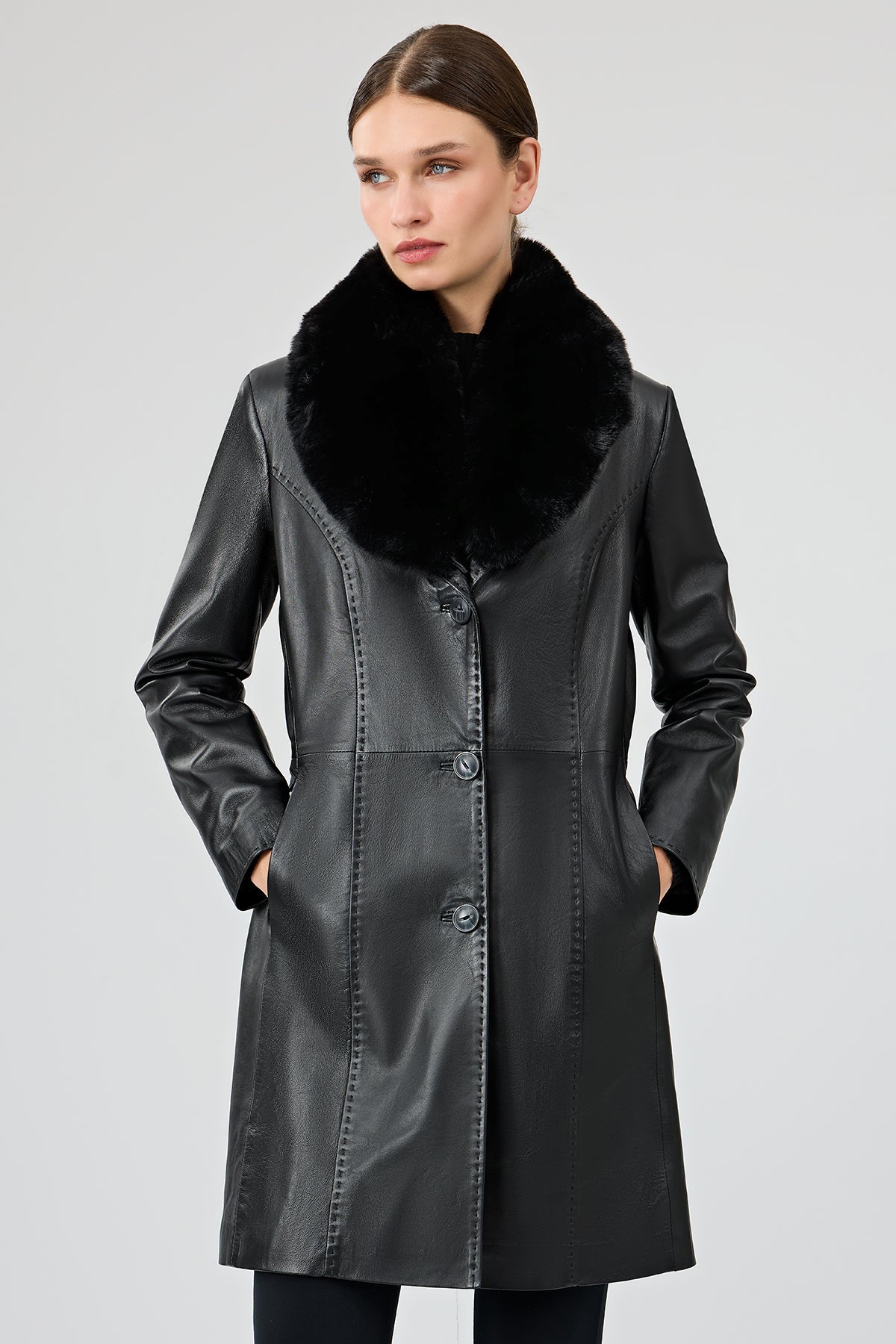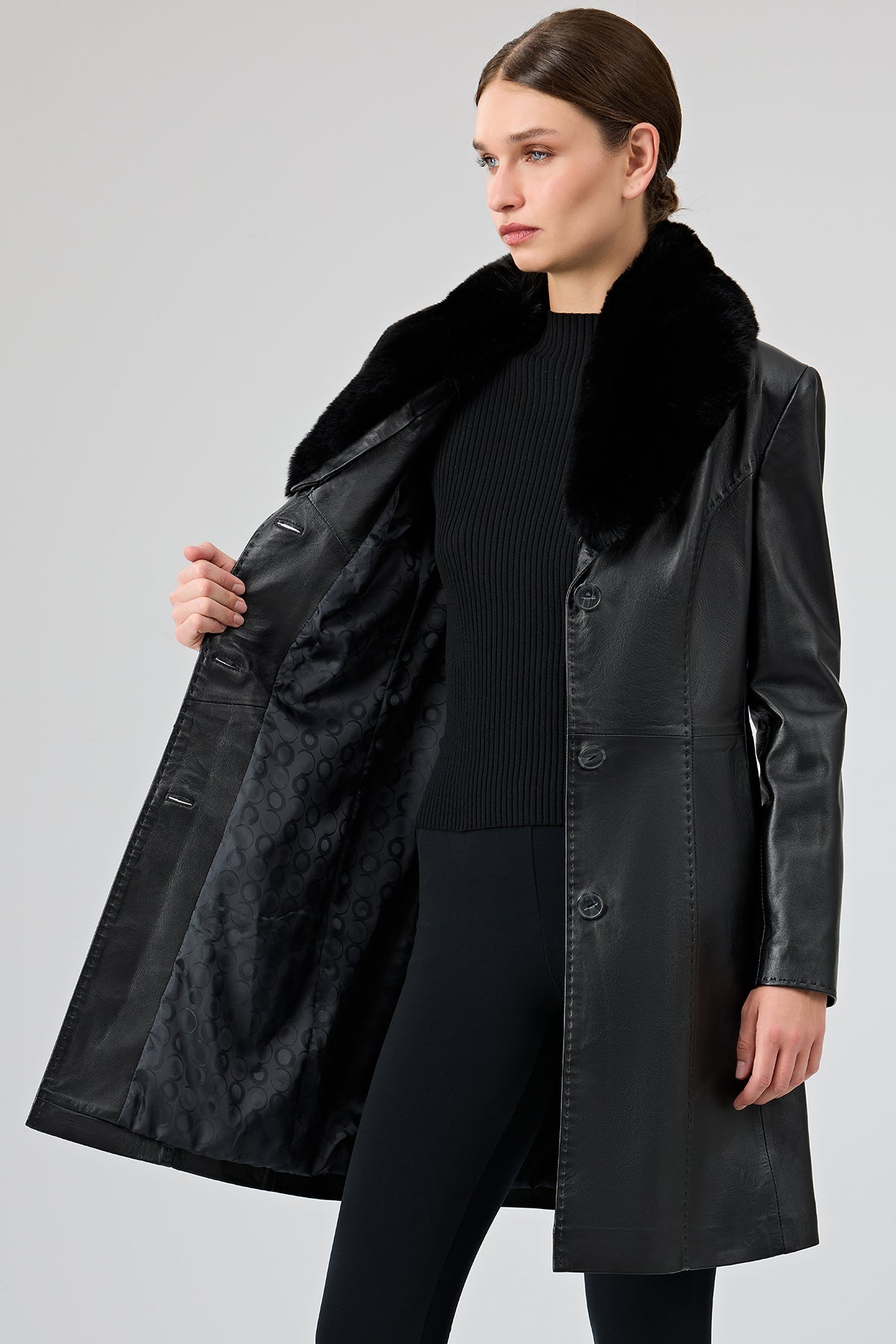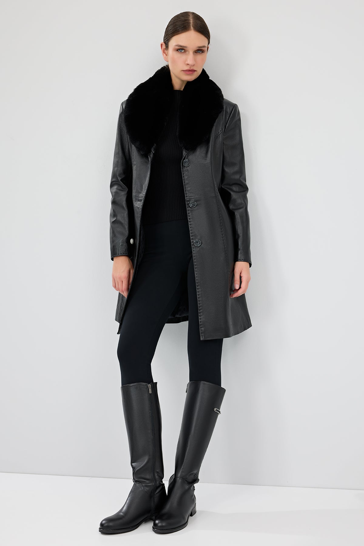 Derimod’un Zarif ve Şıklığı bir arada sunan Christina Kadın Siyah Kürklü Uzun Deri Kaban ile tarzınızı konuşturun. Ürünün kodu: 22WGE59951M 11