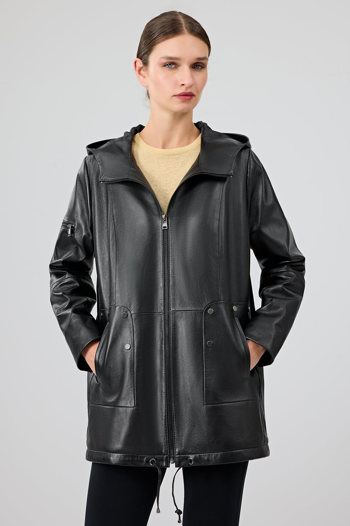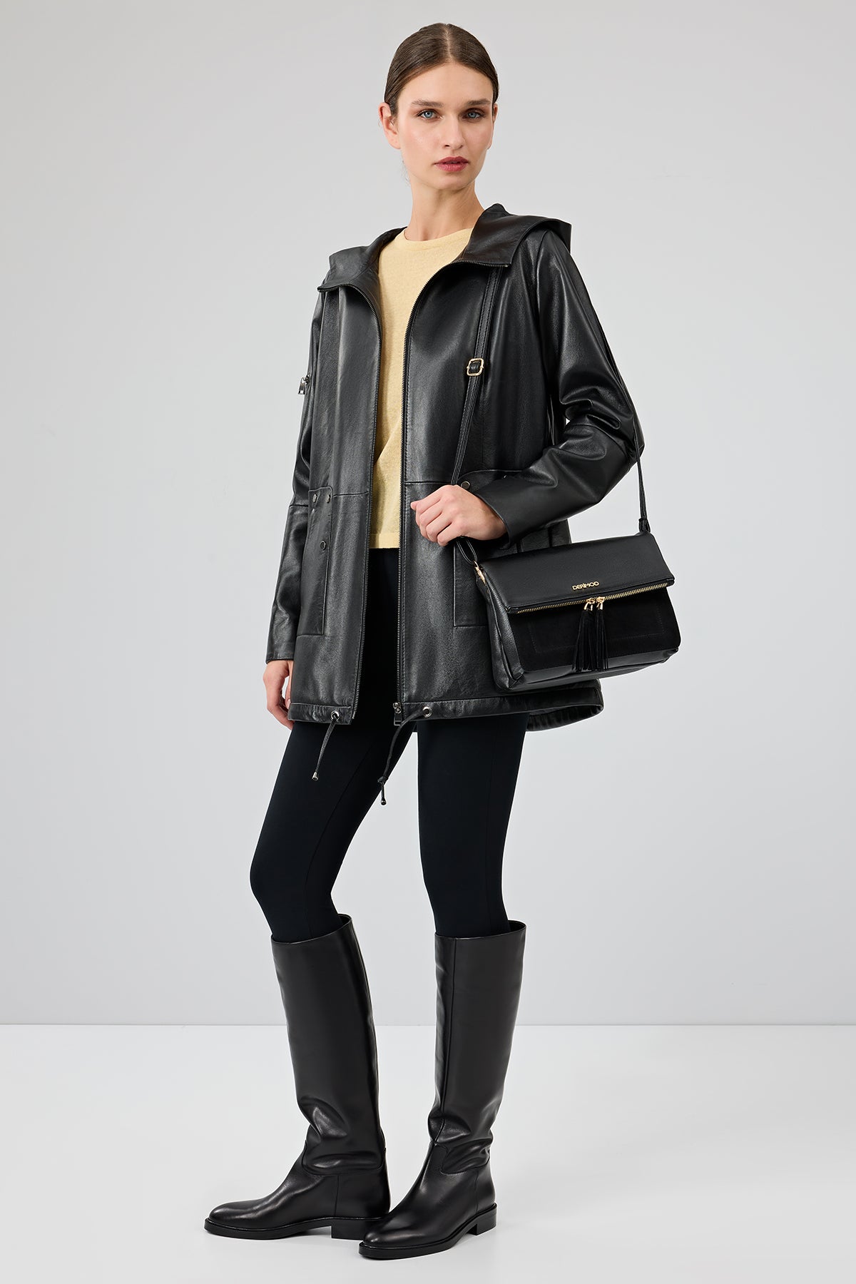 Derimod’un Zarifliği ve Şıklığı bir arada sunan Cindy Kadın Siyah Kapüşonlu Deri Kaban ile tarzınızı konuşturun. Ürünün kodu: 25WGE52731M 11