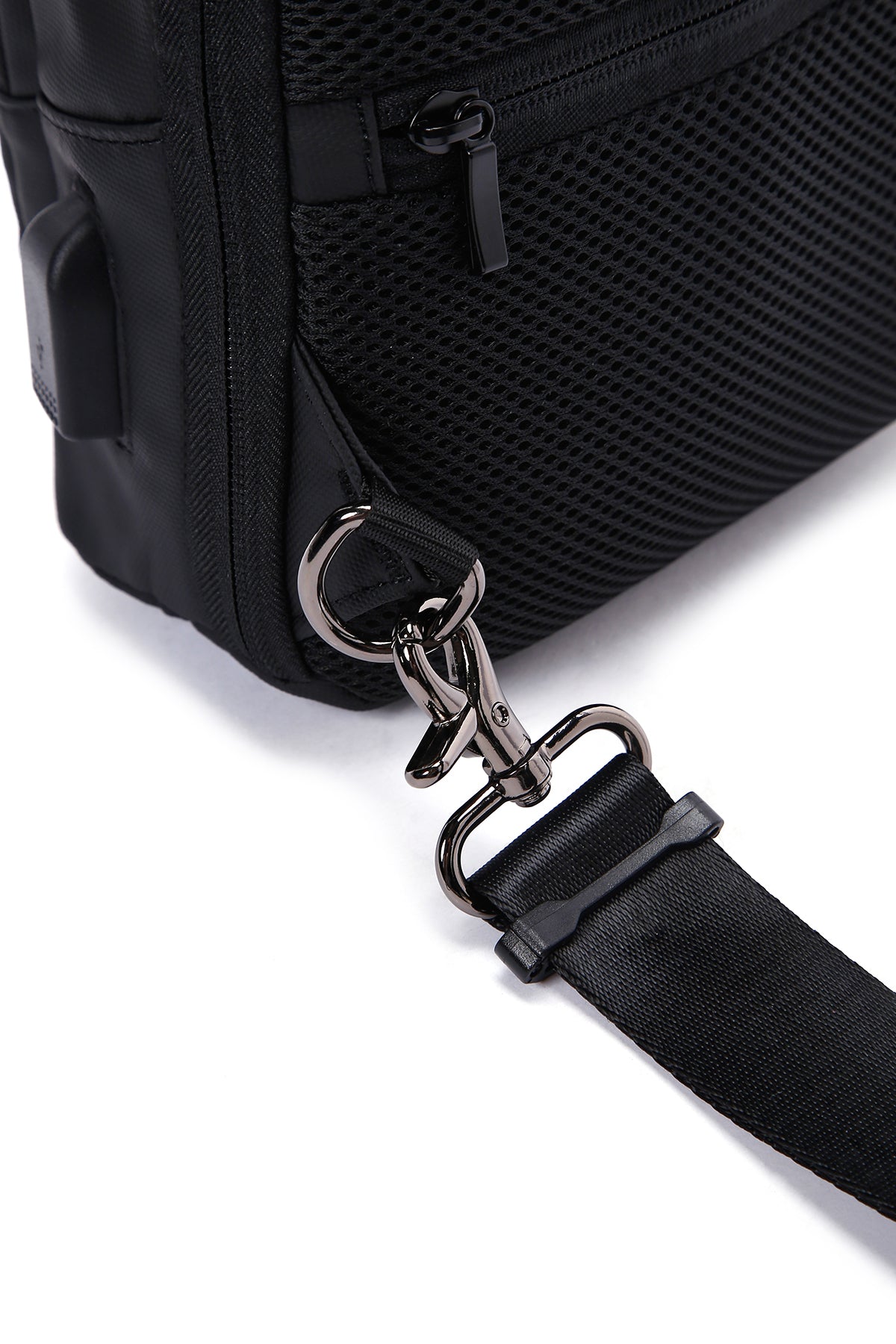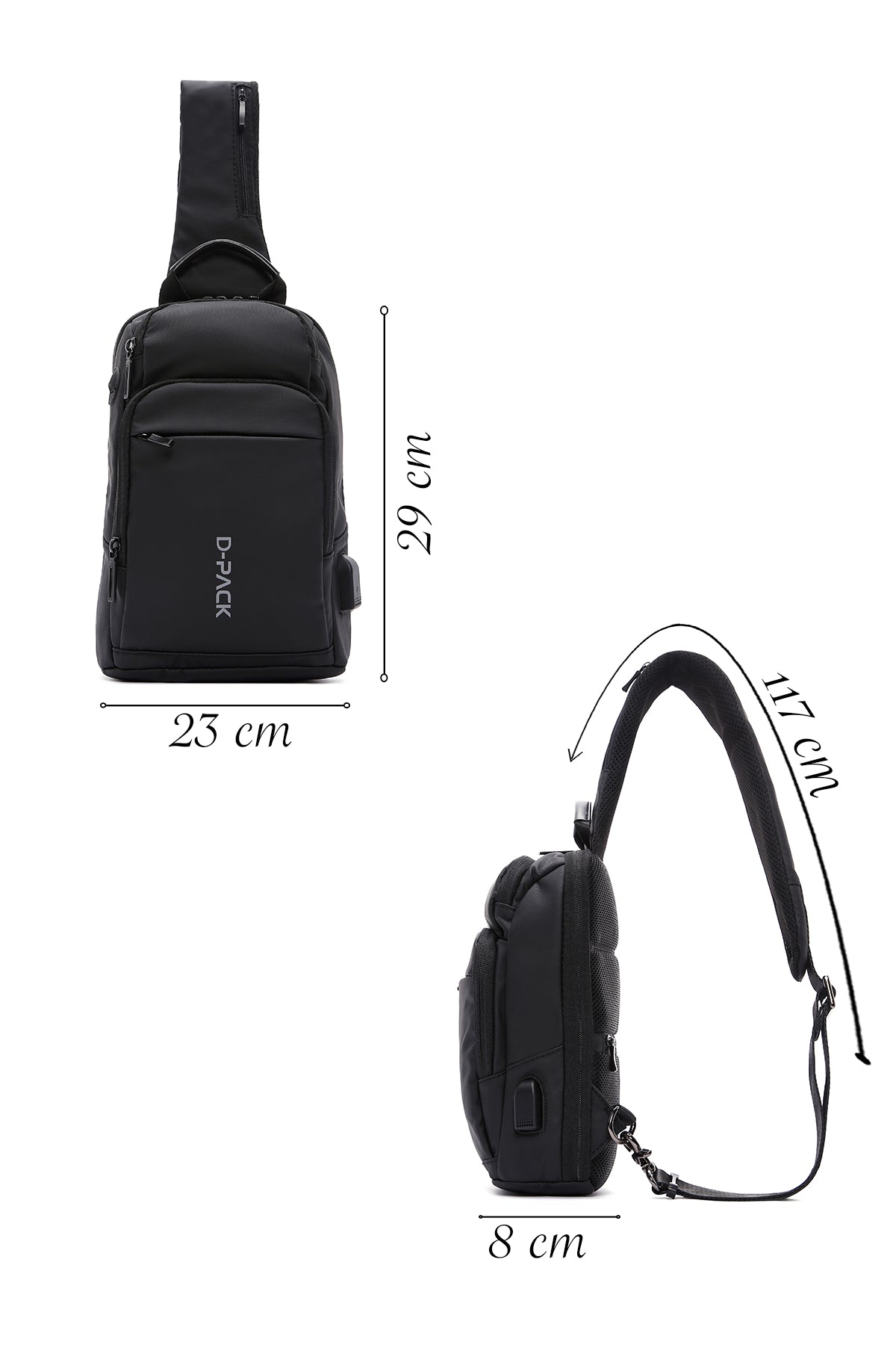 Derimod'un D-PACK Erkek Siyah Teknolojik Kumaş Çapraz Çantası, yaz aylarında şıklık ve kullanışlılığı bir arada sunan özel bir tasarıma sahiptir. Özellikle nefes alabilen yapısıyla içindeki eşyaların havalandırılmasını sağlayarak kullanıcıya ekstra konfor sunar. Hafif ve pratik yapısıyla günlük hayatta rahatlıkla kullanılabilir ve şehir hayatının hızına ayak uydururken, aynı zamanda ofis ortamında da şık bir görünüm sunar. Üstelik, çantanın USB özelliği sayesinde, hareket halindeyken bile mobil cihazlarınızı şarj edebilirsiniz. Ürünün ebatları 23x8x29 cm olup, askı uzunluğu 117 cm'dir.