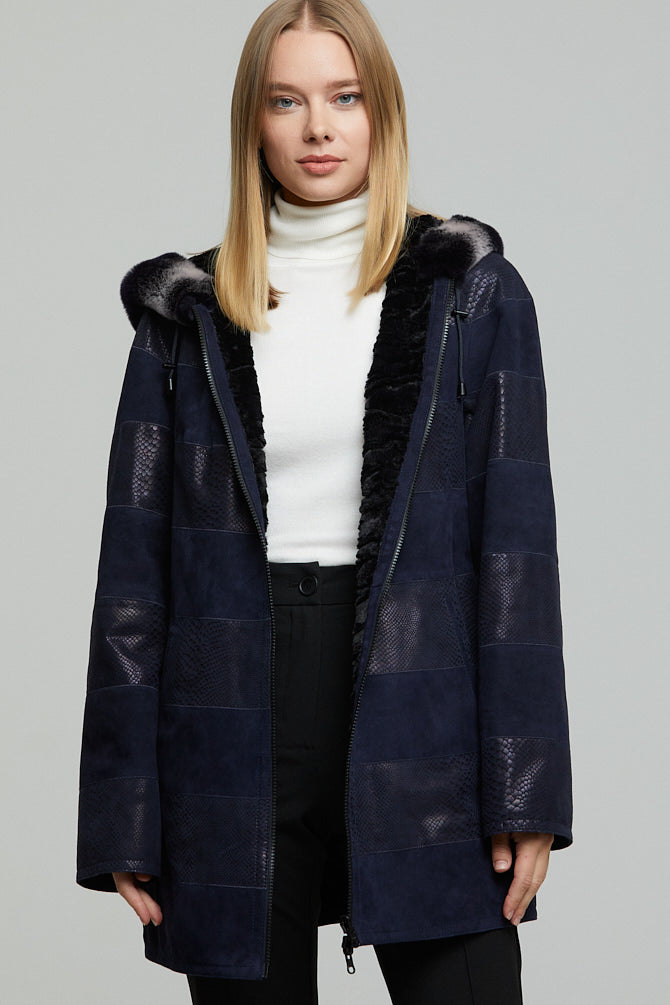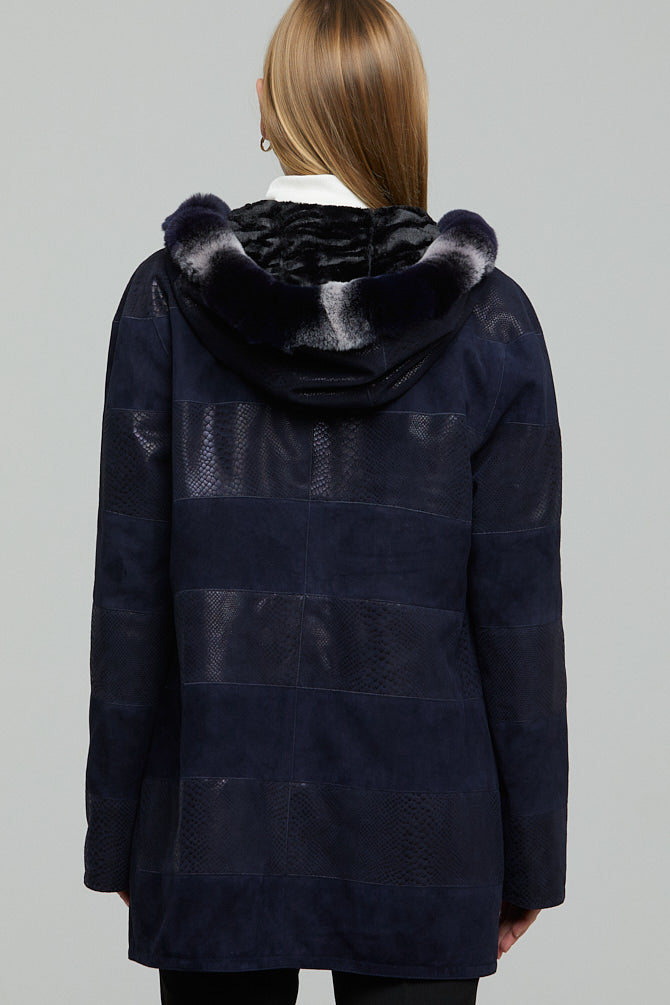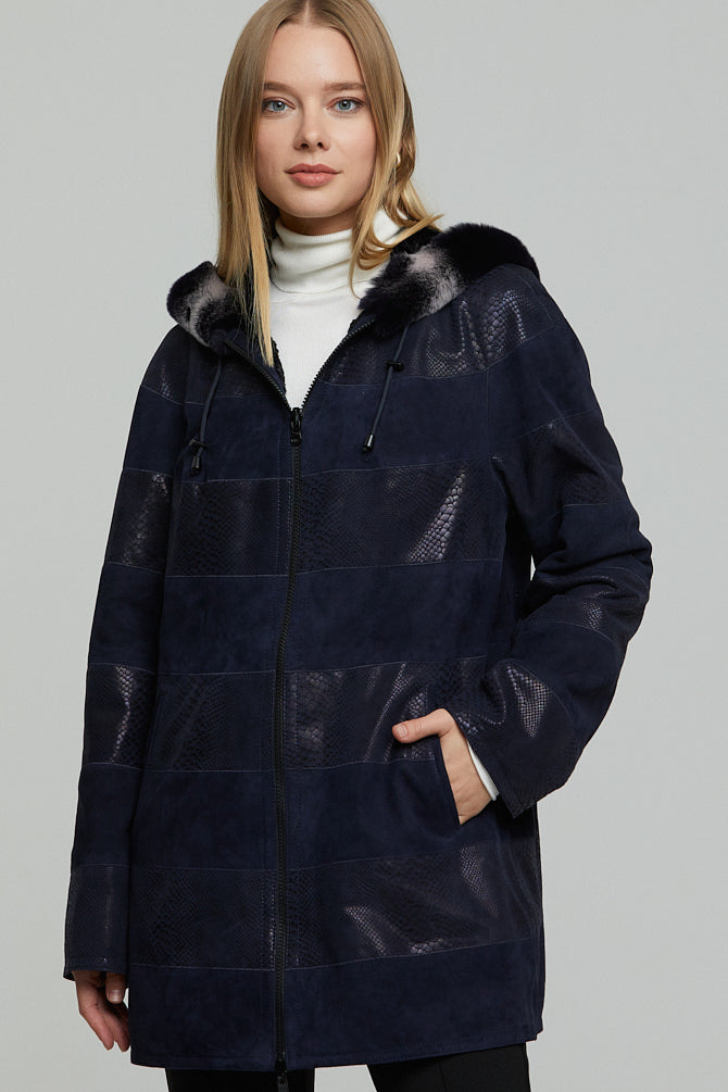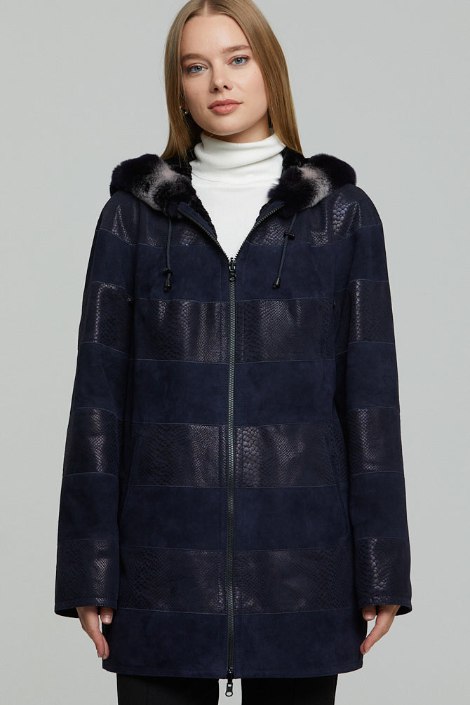 Dalia Kadın Lacivert Kapüşonlu Deri Kaban