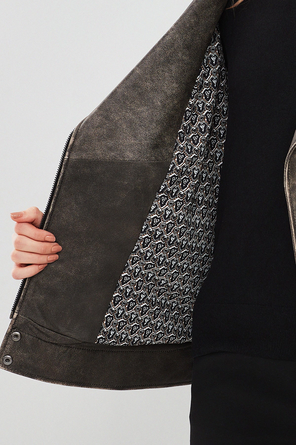 Derimod’un Zarif ve Şıklığı bir arada sunan Delano Kadın Gri Vintage Oversize Biker Deri Ceket ile tarzınızı konuşturun. Ürünün kodu: 23WGD5157G6 1Y