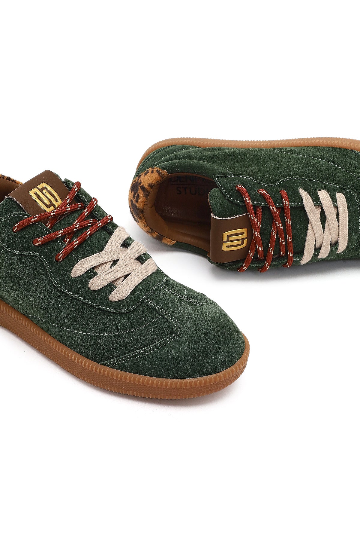 Enerjik yeşil tonu ve karakteristik sneaker formuyla dikkat çeken bu model, geçmişin sportif çizgilerini günümüzün konfor detaylarıyla bir araya getiriyor. Derimod Studio’nun çevre dostu yaklaşımıyla üretilen sneaker, renkli tarzı benimseyen kullanıcılar için ideal bir seçenek. 25AFD435310 45