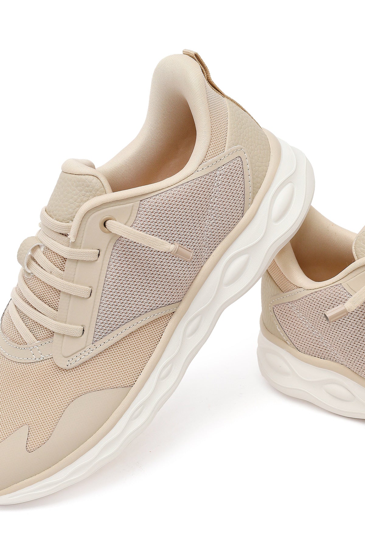 Derimod Zero Kadın Bej Bağcıklı Kalın Tabanlı Kumaş Sneaker