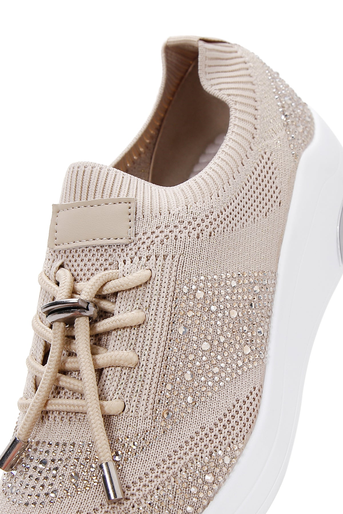 Derimod’un Zarifliği ve Şıklığı bir arada sunan Kadın Bej Bağcıklı Kalın Tabanlı Taşlı Spor Sneaker ile tarzınızı konuşturun. Ürünün kodu: 24SFD43126F N8