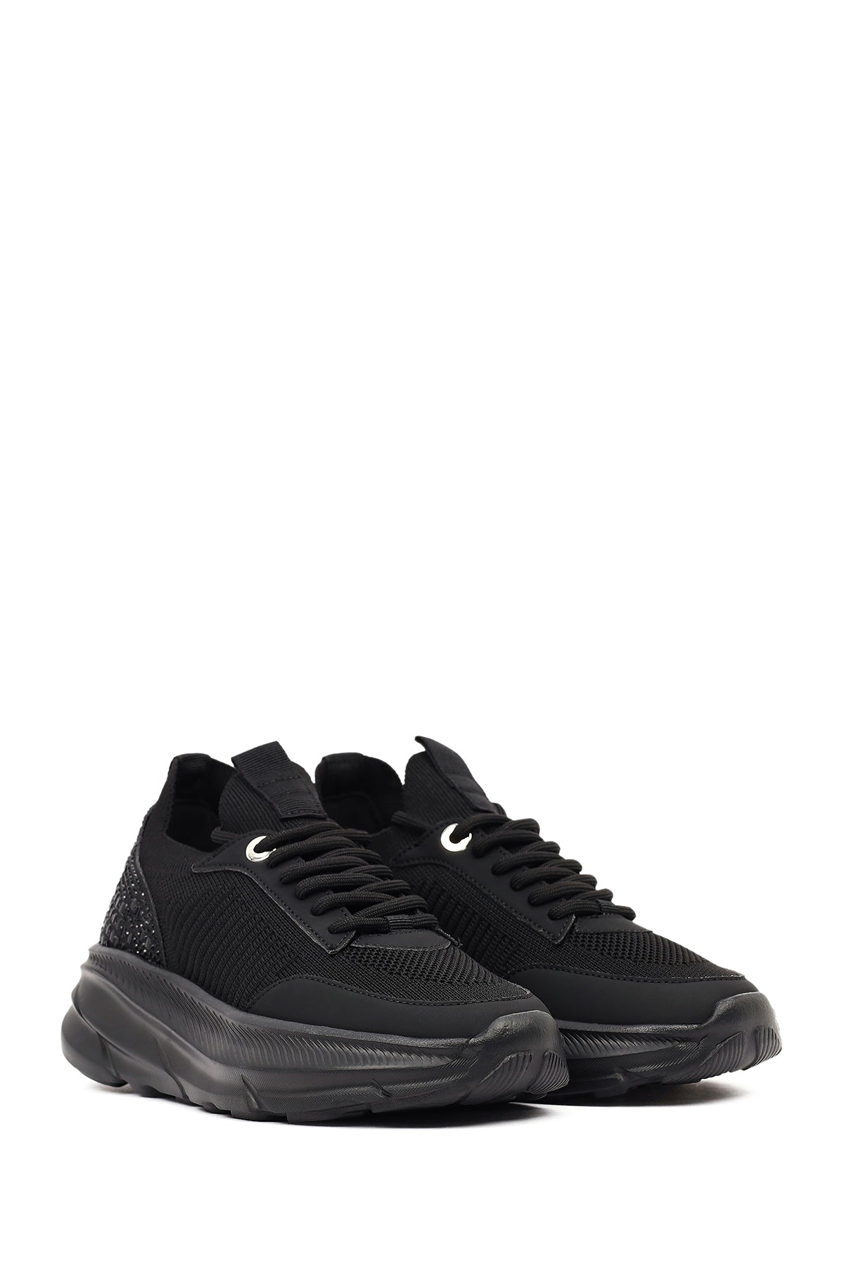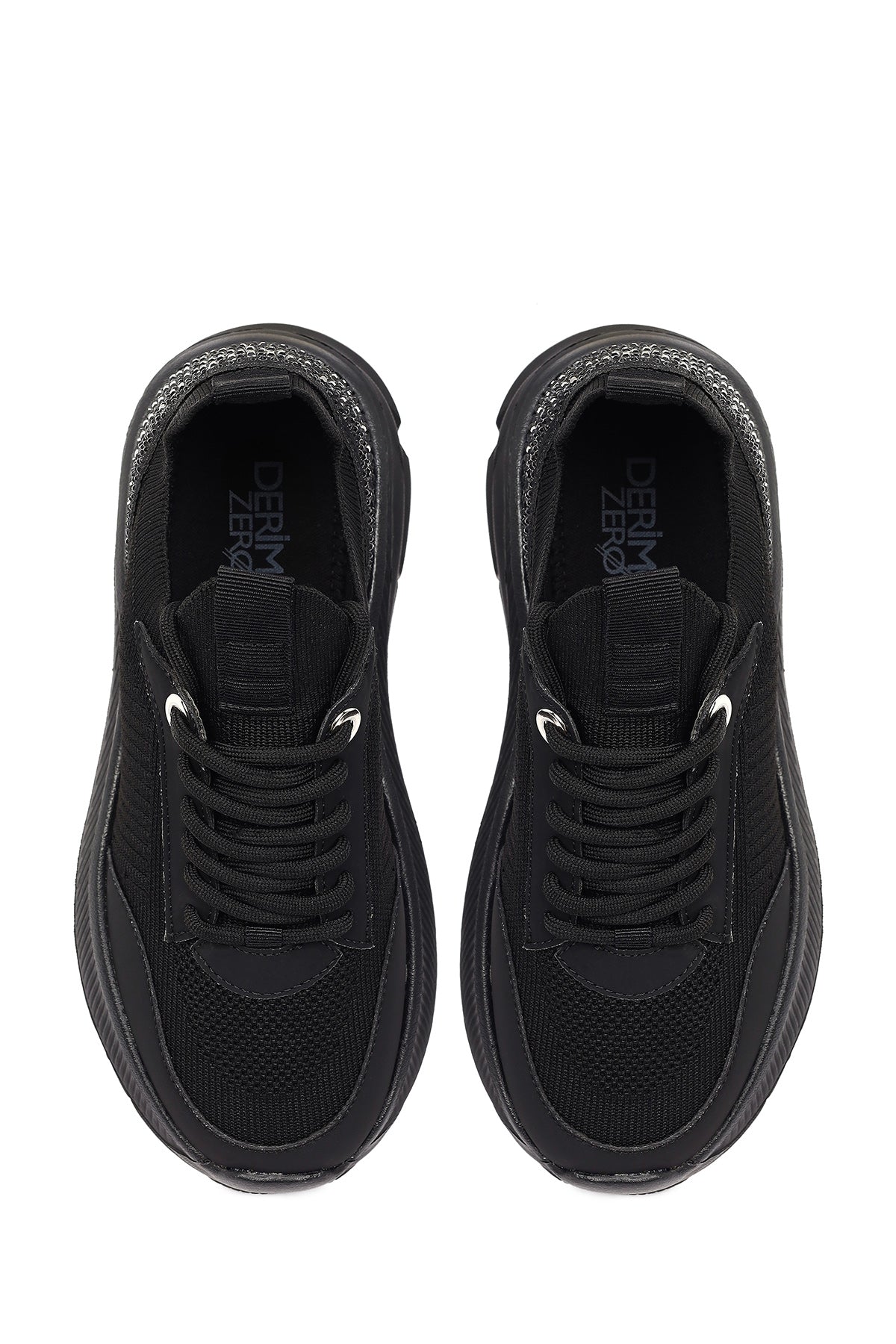 Derimod Zero Kadın Siyah Bağcıklı Kalın Tabanlı Kumaş Sneaker
