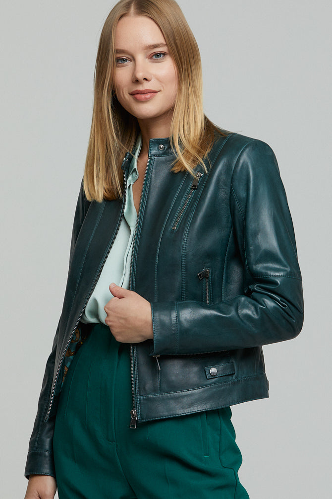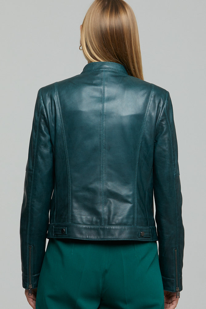 Ella Kadın Yeşil Streç-Fit Deri Ceket