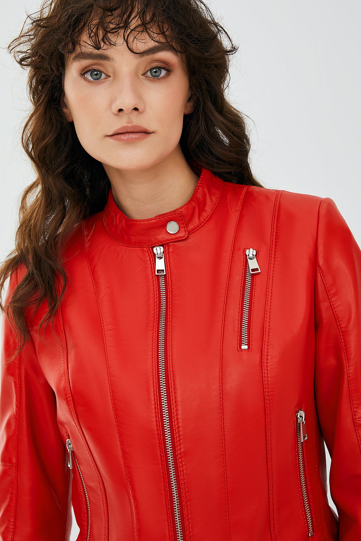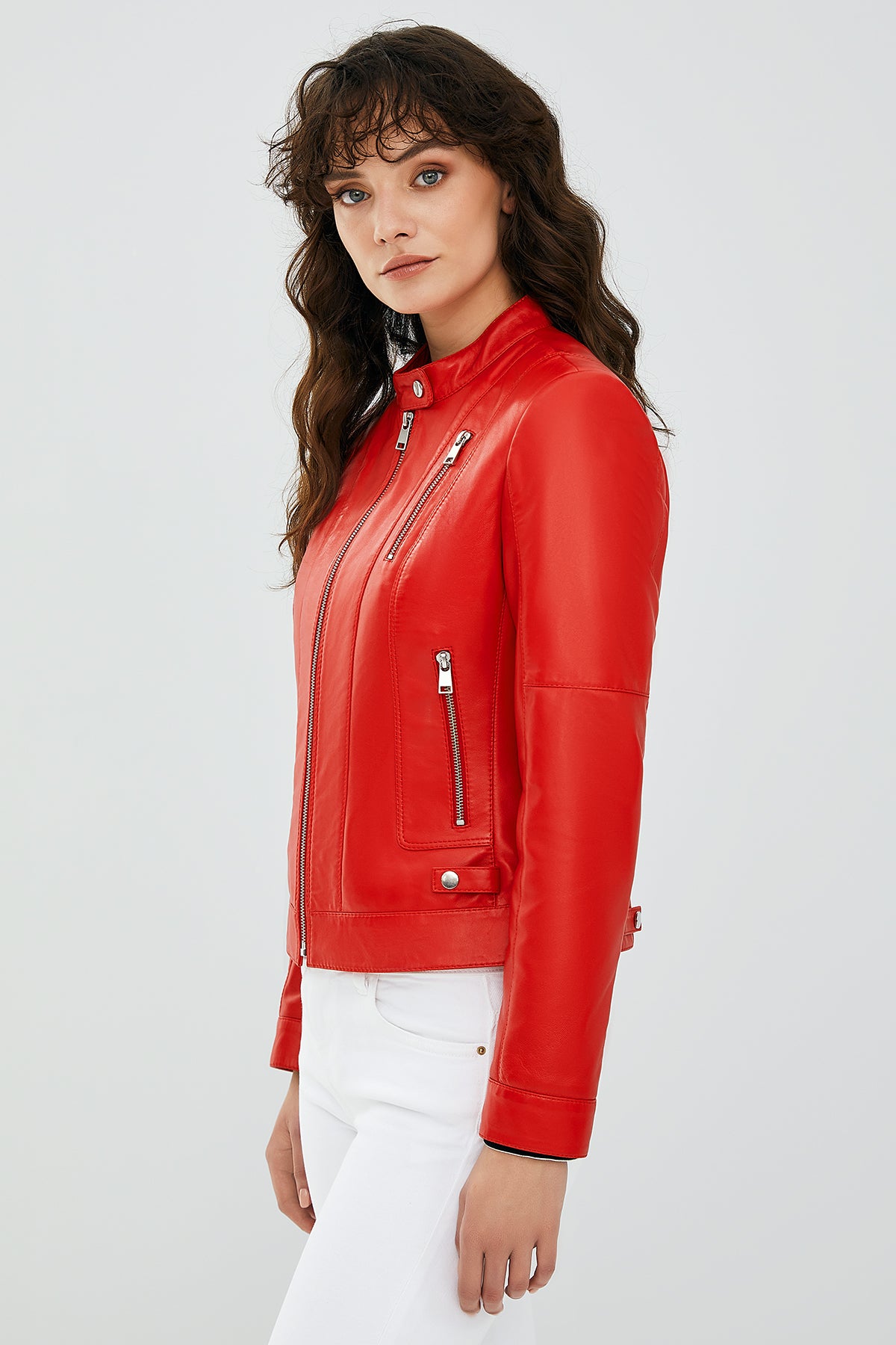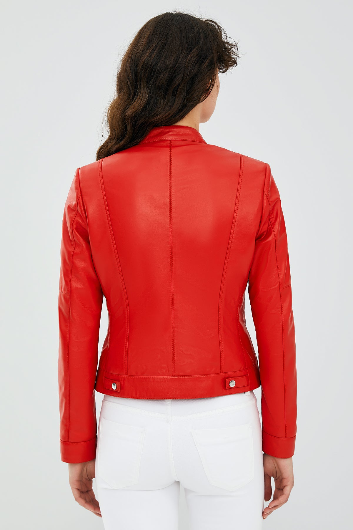 Ella Kırmızı Kadın Kısa Deri Ceket