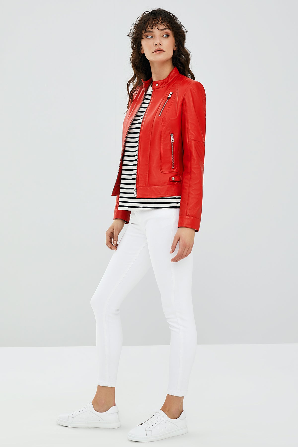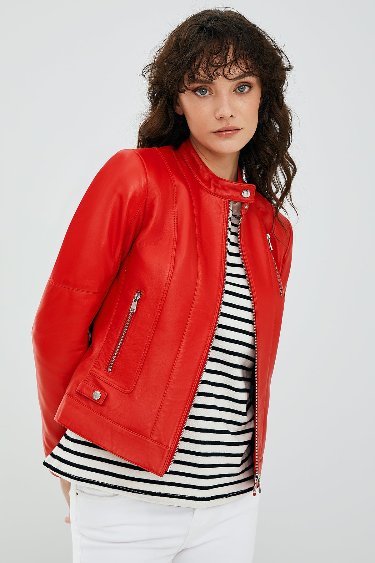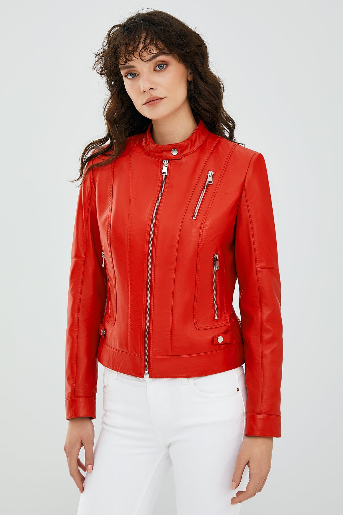 Ella Kırmızı Kadın Kısa Deri Ceket
