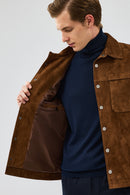 Enzo Erkek Kahverengi Süet Deri Mont, süet deri materyalinden üretilmiş şık ve rahat bir dış giyim parçasıdır. Düğmeli kapama sistemi ile klasik gömlek yakası, montun hem gündelik hem de resmi kullanıma uygun olmasını sağlar. Dış kısmında 4 cep ve iç kısmında 2 cep bulunur, böylece eşyalarınızı güvenle taşıyabilirsiniz. Regular kalıp ile rahat bir oturuş sağlar ve standart boyuyla çeşitli kıyafet kombinasyonlarına uyum sağlar. Yumuşak süet yüzeyi, montun hem estetik hem de konforlu olmasını sağlar. Ürünün kodu: 24SGE652410 BR