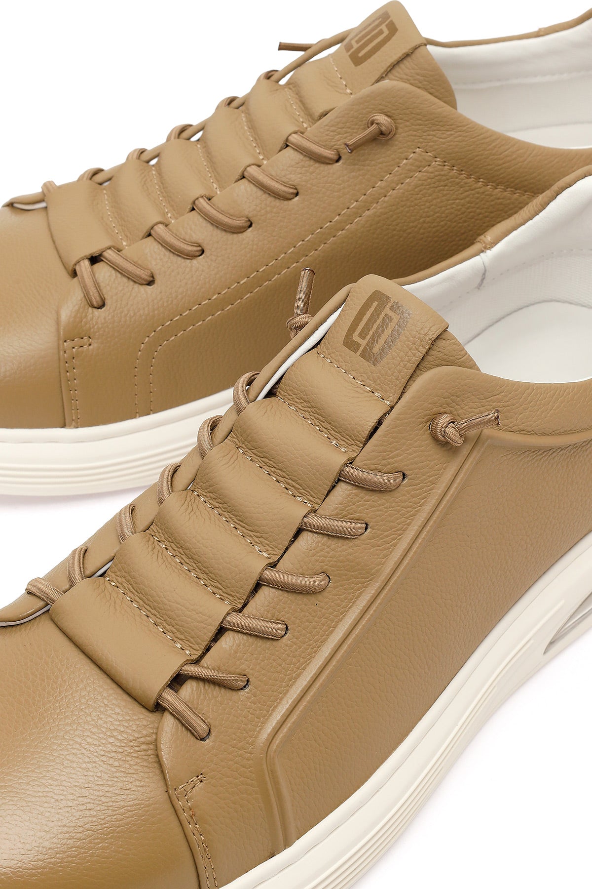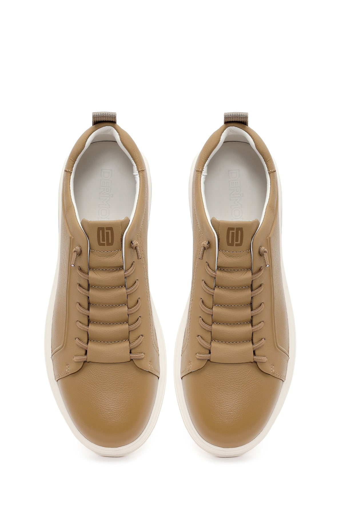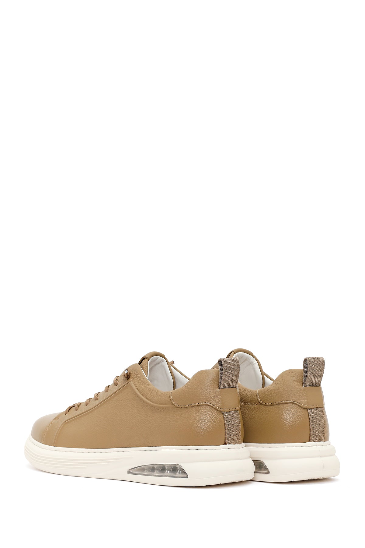 Erkek Bej Bağcıklı Deri Sneaker
