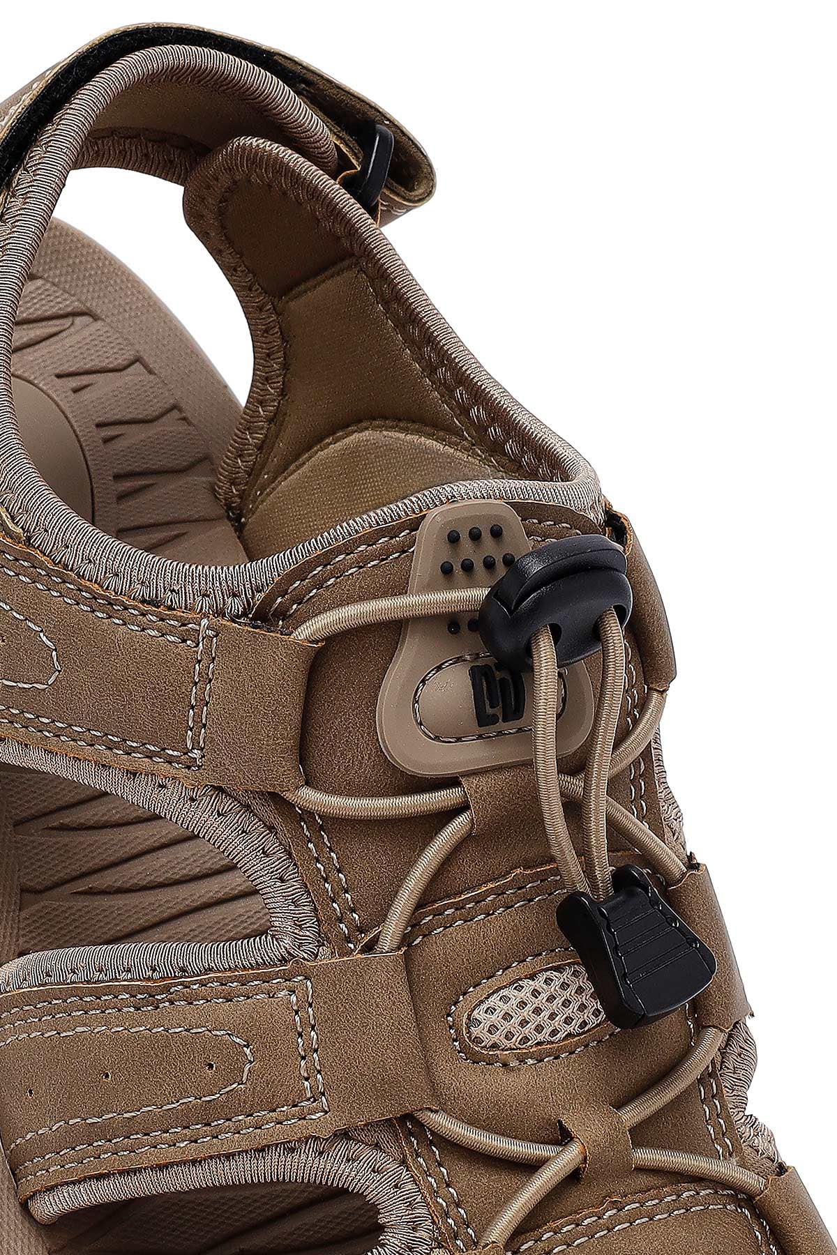 Erkek Bej Deri Sandalet