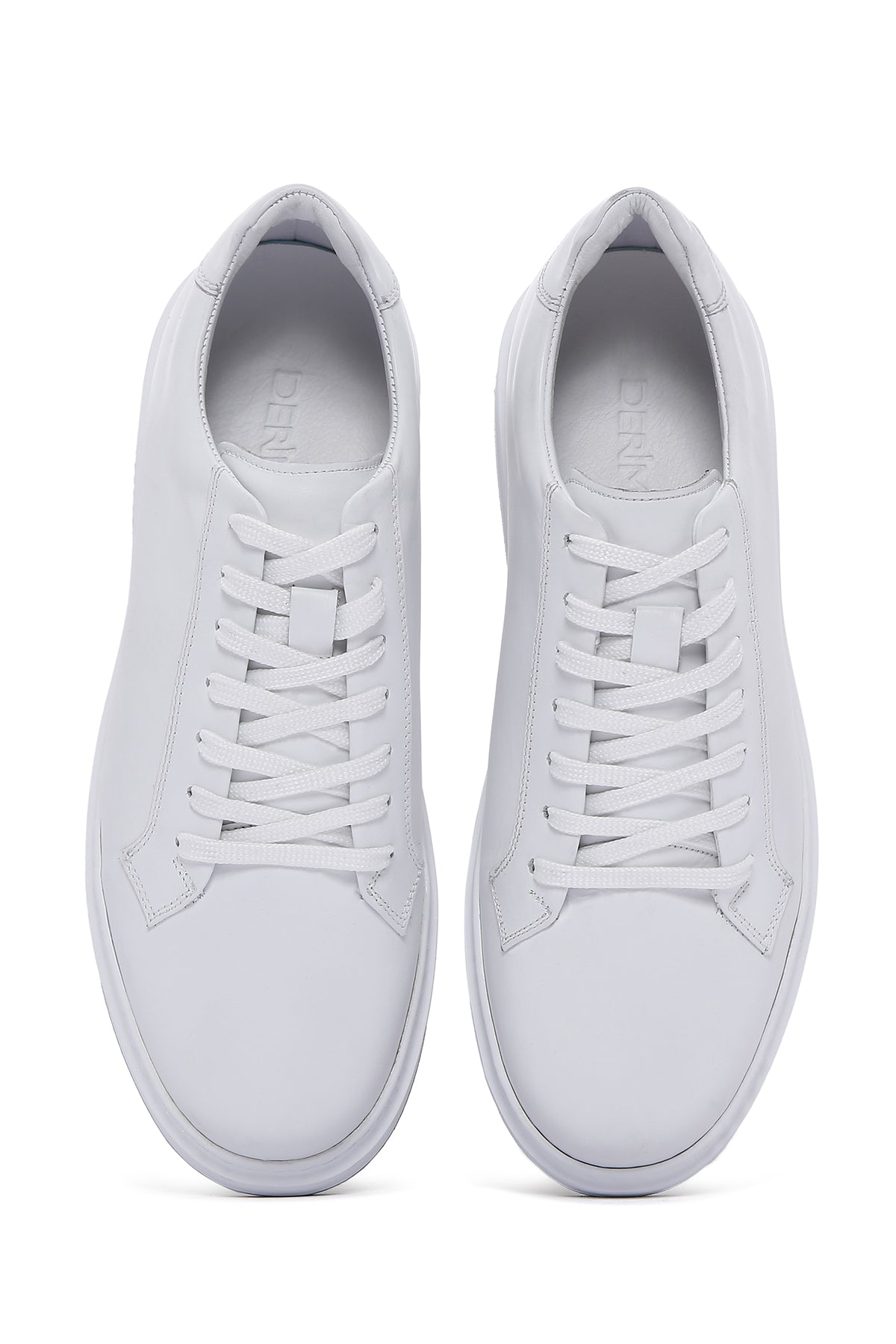 Erkek Beyaz Bağcıklı Deri Sneaker