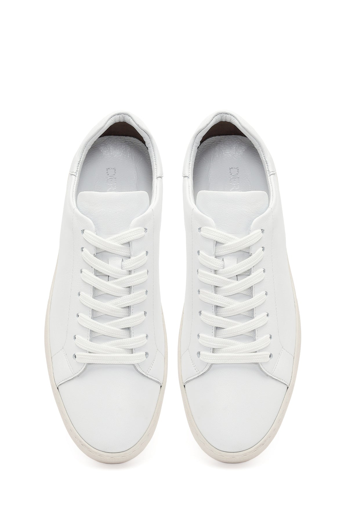 Erkek Beyaz Bağcıklı Deri Sneaker