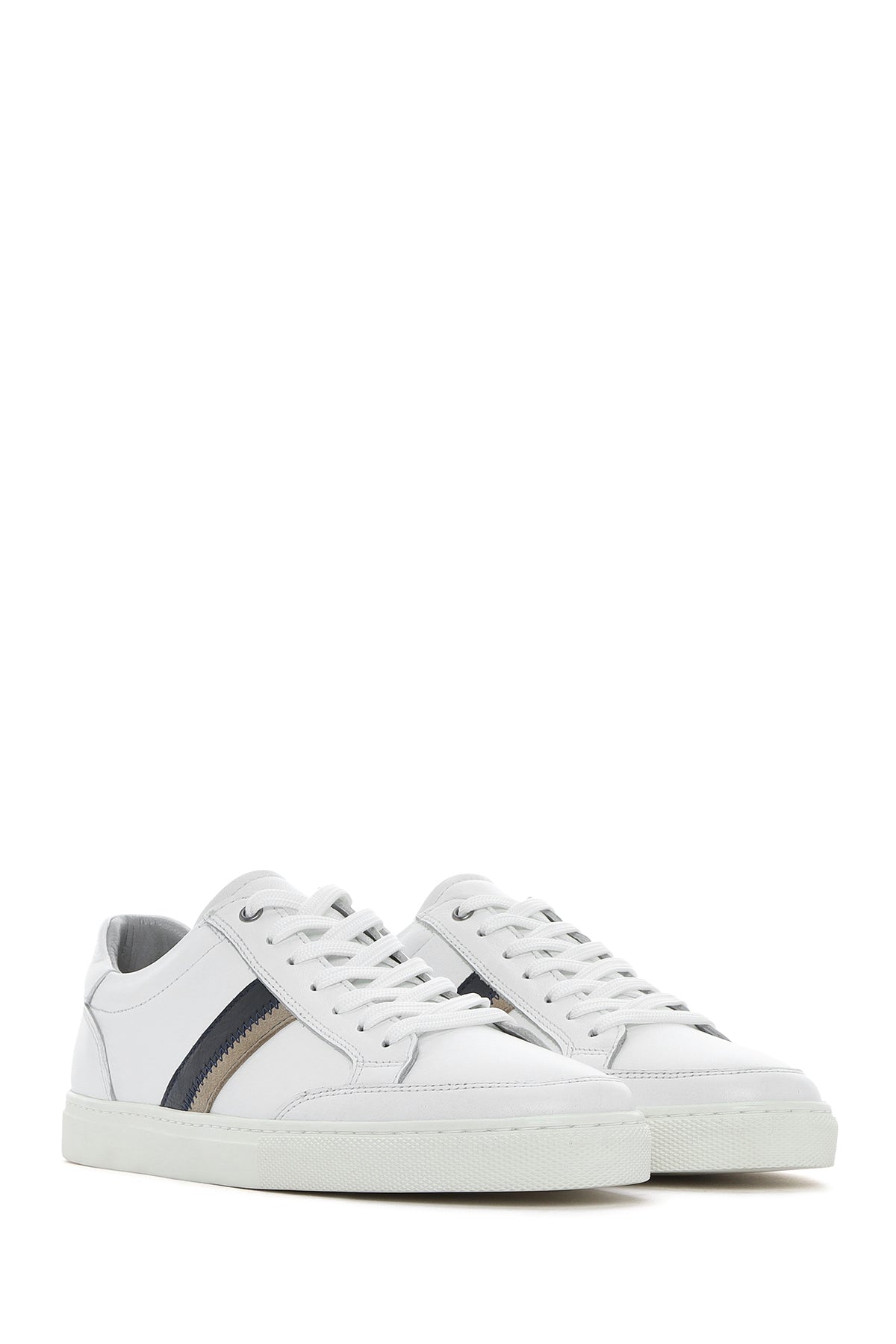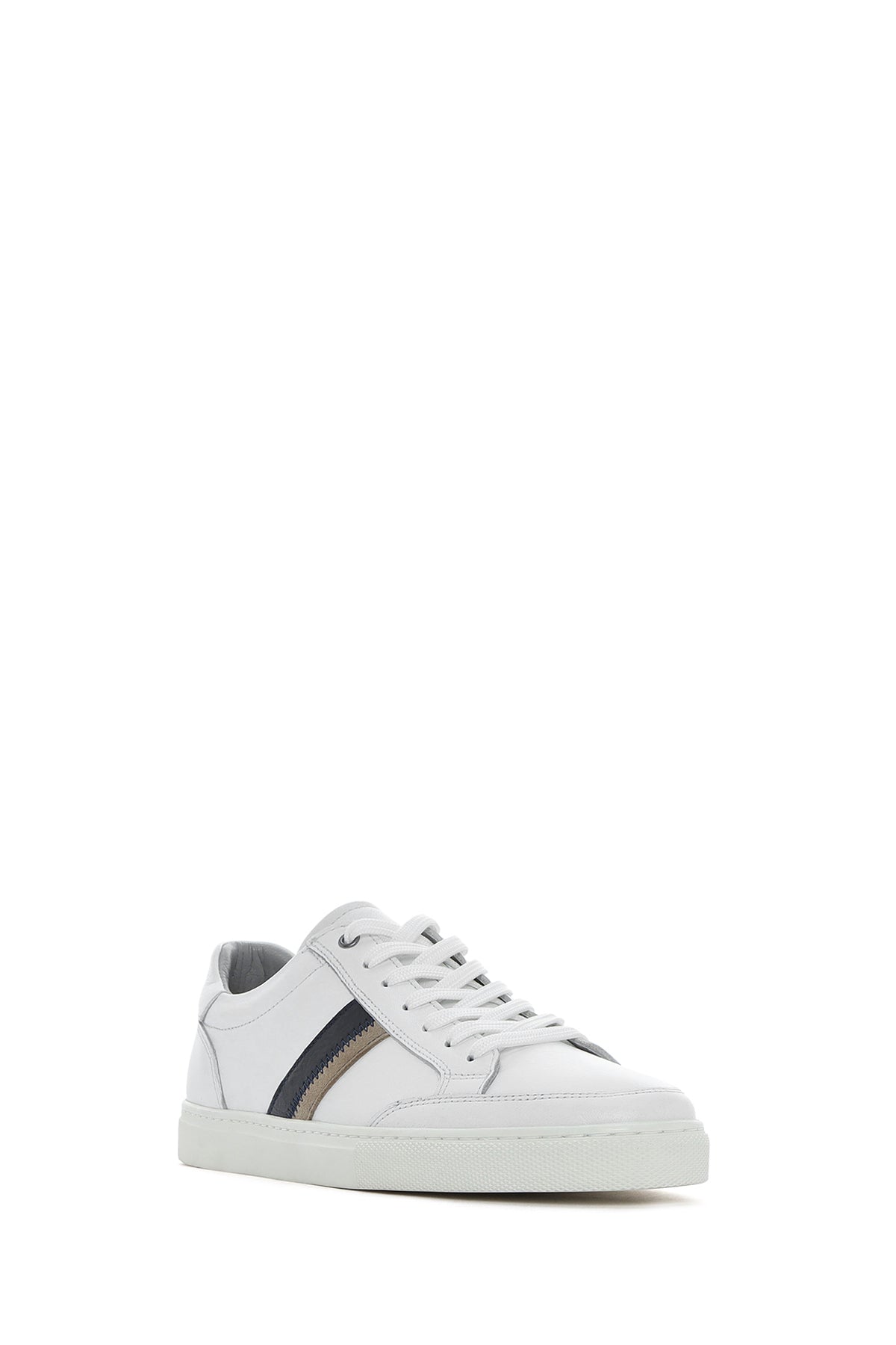 Erkek Beyaz Bağcıklı Deri Sneaker