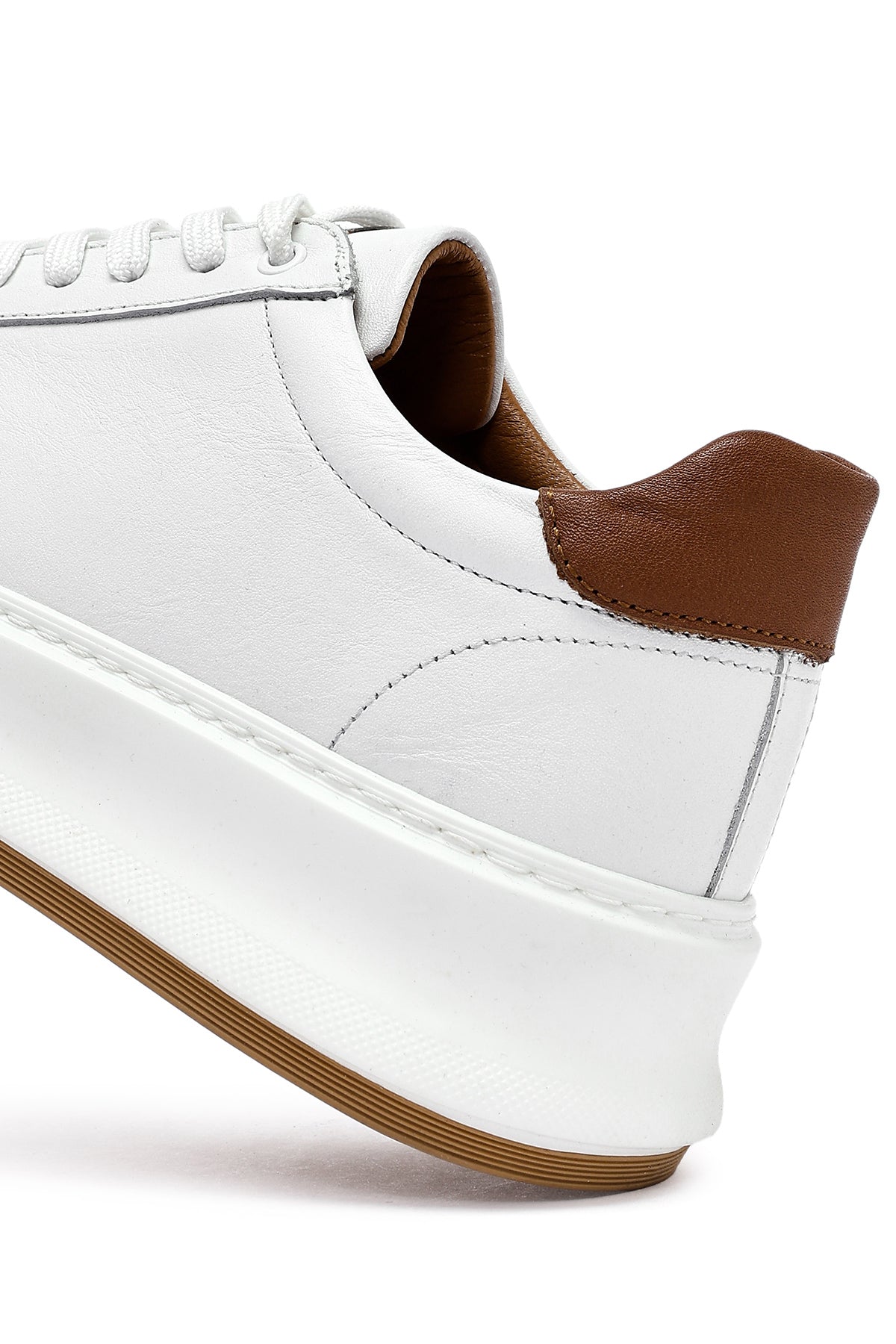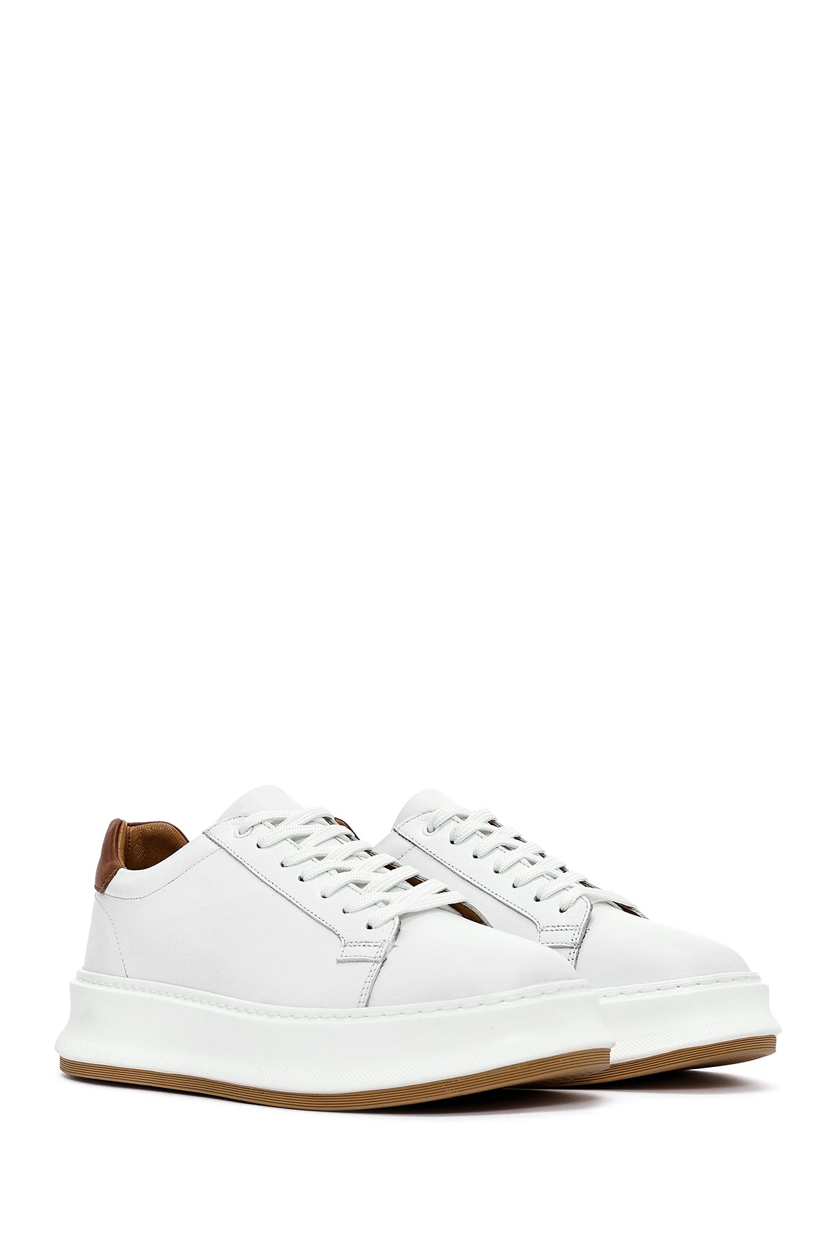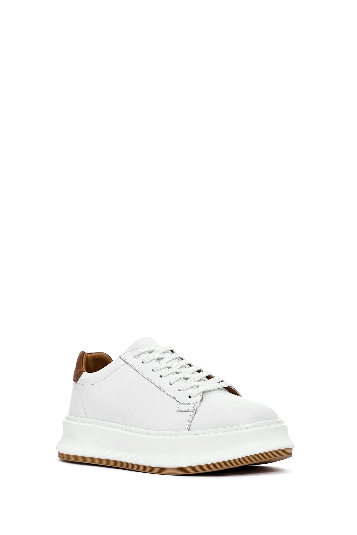 Erkek Beyaz Bağcıklı Kalın Tabanlı Deri Sneaker
