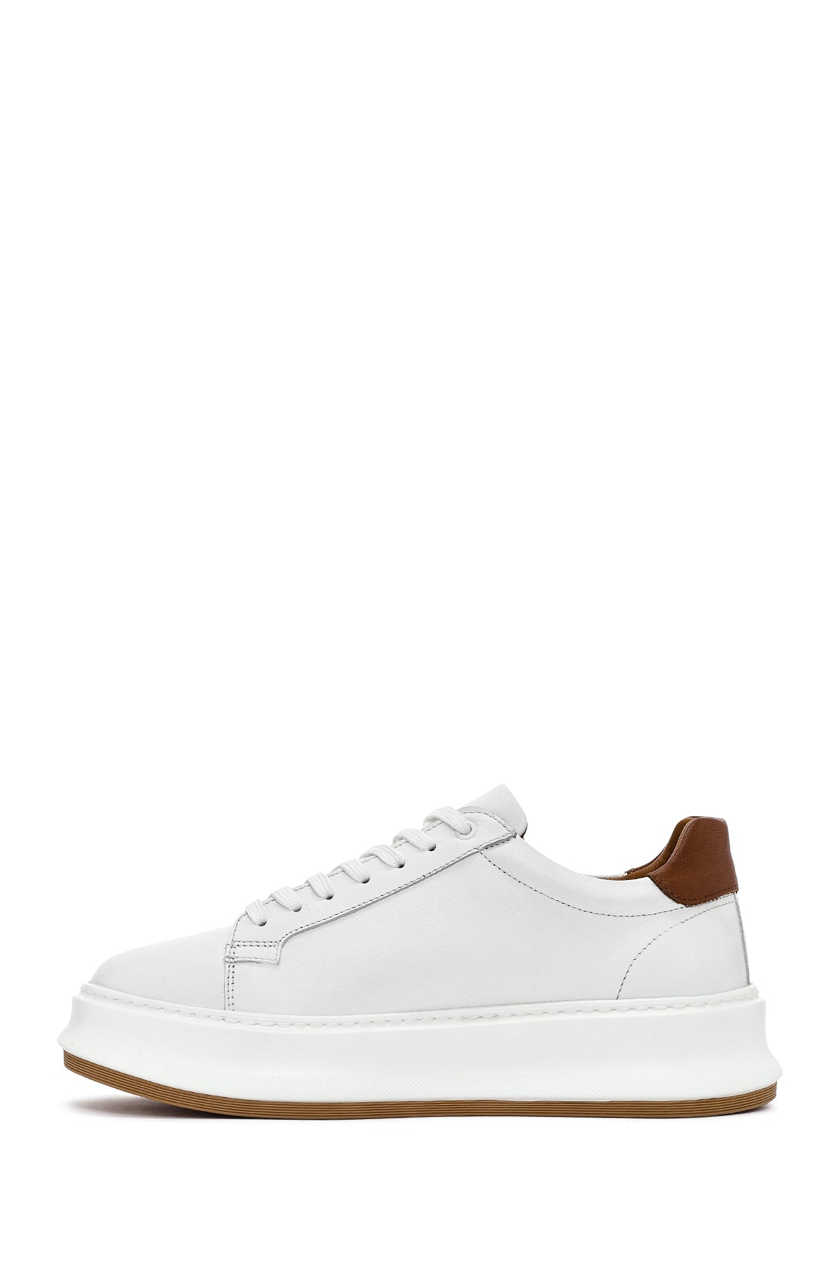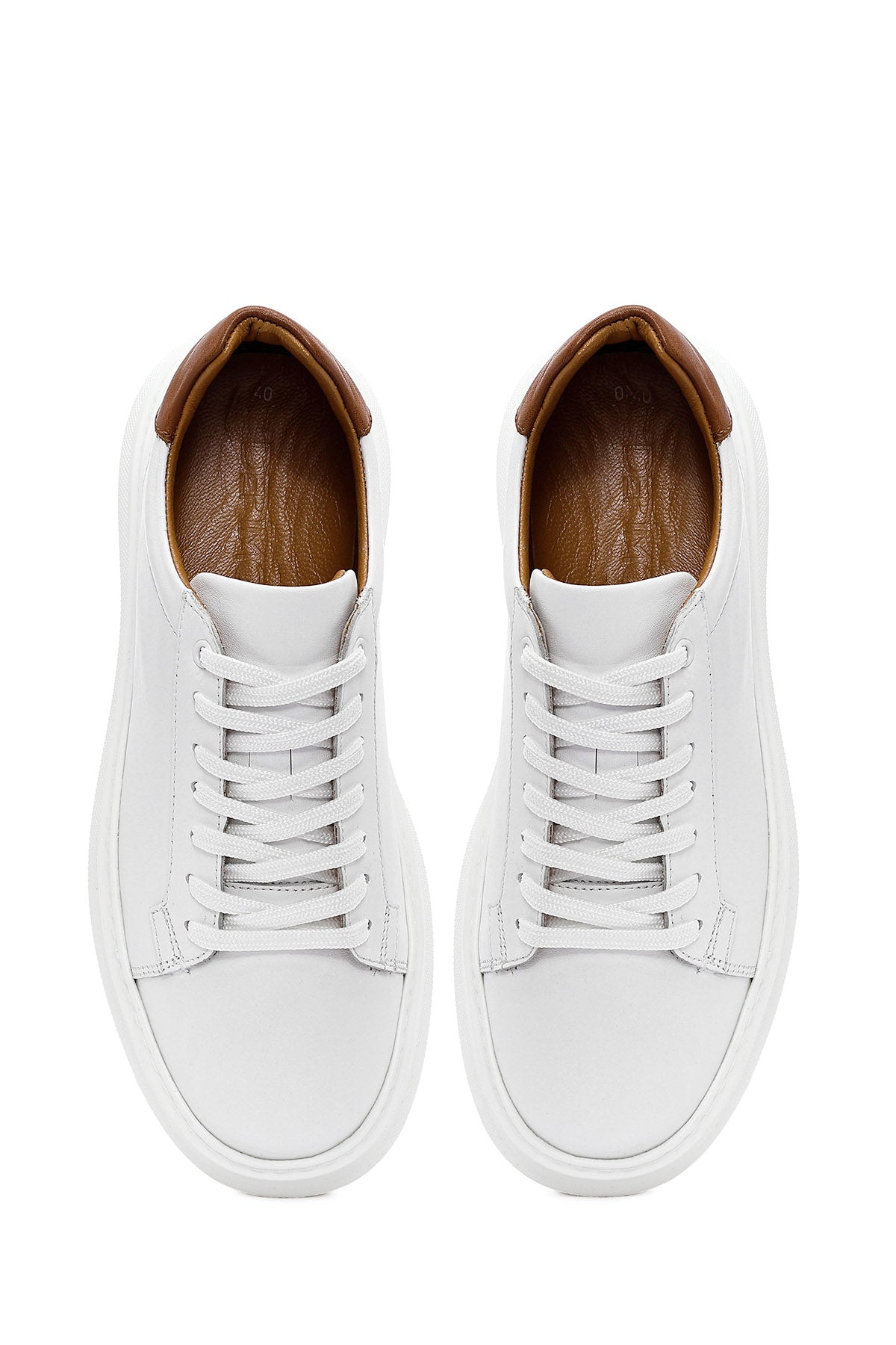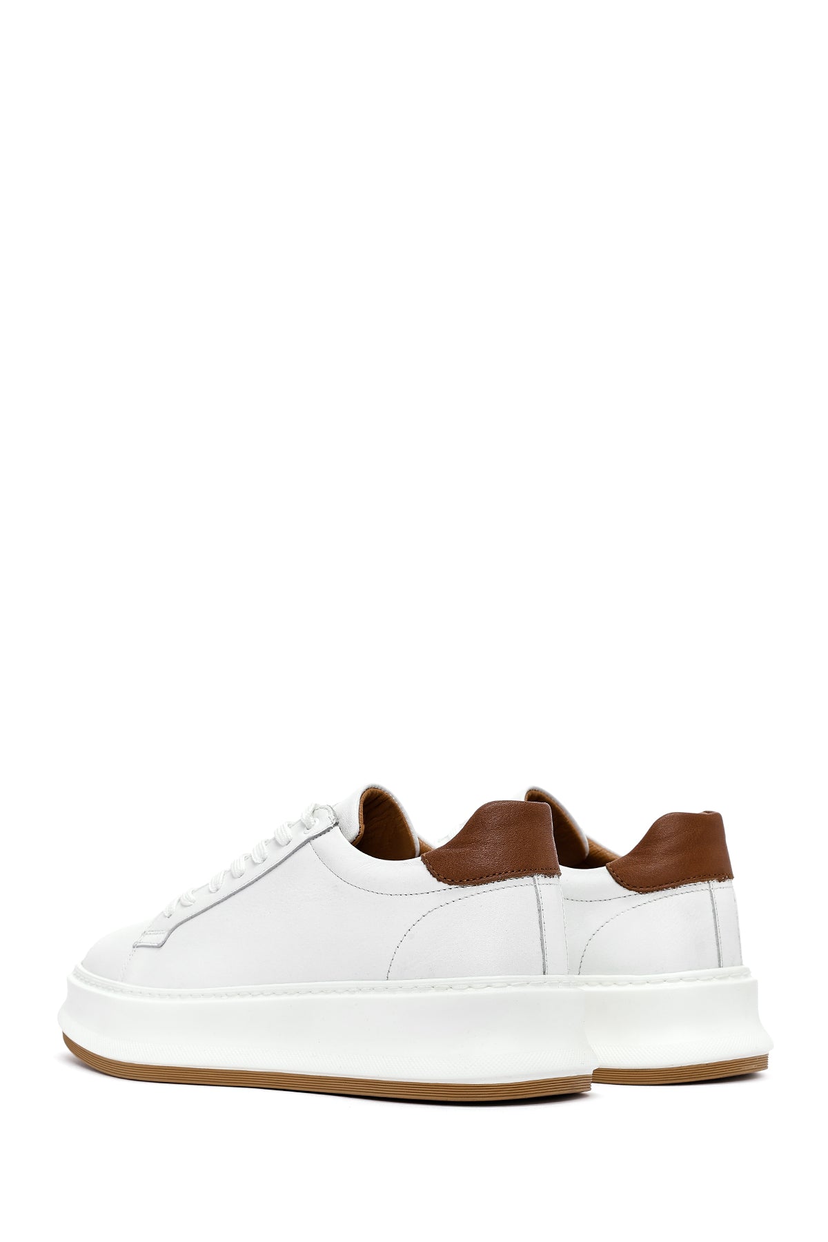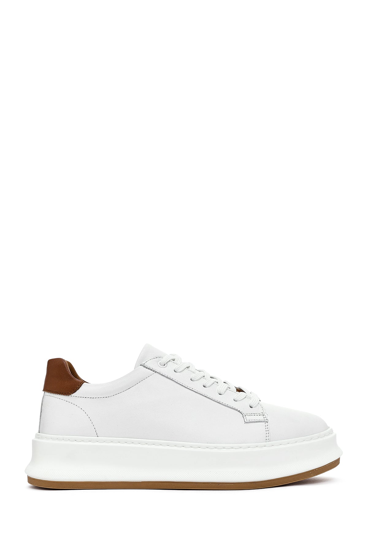 Erkek Beyaz Bağcıklı Kalın Tabanlı Deri Sneaker