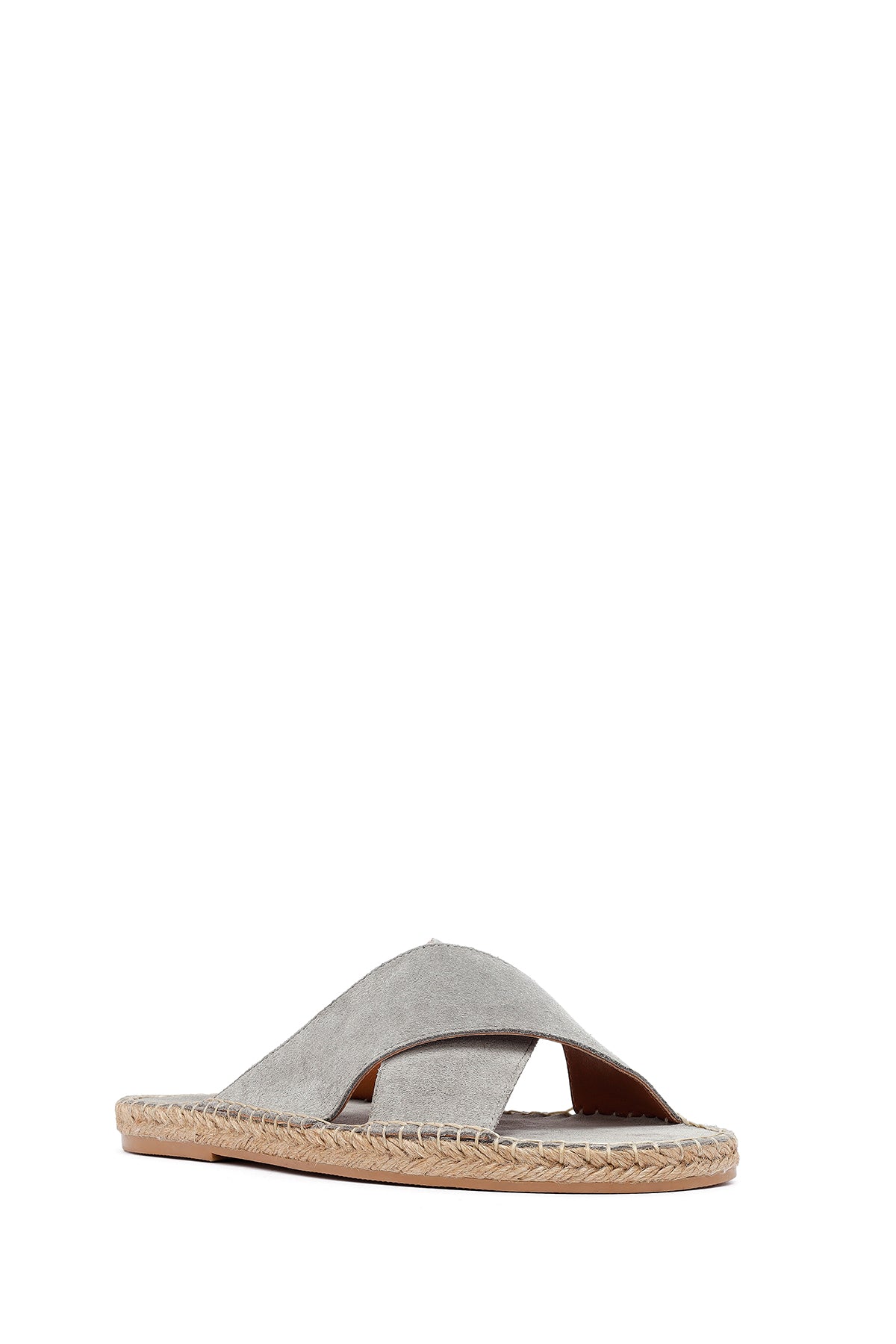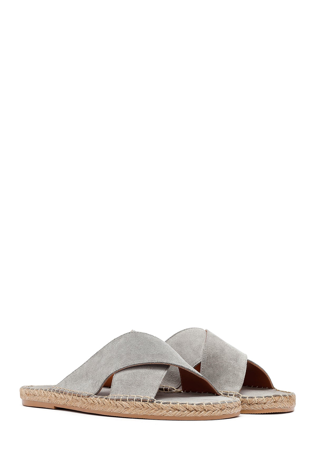 Derimod'un yaz koleksiyonunun öne çıkan parçalarından olan gri süet deri espadril terlik, sıcak günlerde ayaklara ferahlık sunan modern tasarımıyla dikkat çekiyor. Üst kısmında kullanılan kaliteli süet deri malzeme, dokunuşuyla yumuşaklığı hissettirirken, deri iç astar sayesinde ayak sağlığını destekleyerek uzun süreli kullanımda bile rahatlık sağlıyor. Çapraz bantlı tasarımı sayesinde ayağa mükemmel uyum gösteren model, geleneksel espadril dokumalarından ilham alınarak hazırlanmış jüt tabanıyla Akdeniz esintilerini yansıtıyor. 2 cm topuk yüksekliği ile günlük aktivitelerde ideal denge sunarken, gri rengi sayesinde farklı kıyafet kombinleriyle uyumlu bir görünüm elde etmenizi sağlıyor. Plaj tatillerinden şehir gezilerine, bahçe partilerinden arkadaş buluşmalarına kadar geniş kullanım alanına sahip olan espadril terlik, yaz aylarının vazgeçilmez parçası haline geliyor. Slip-on tasarımı sayesinde pratik giyim imkanı sunan model, ayağın doğal hareketine uyum sağlayarak günün her anında özgürlük hissi yaşatıyor. Ürün kodu: 25SFD616110