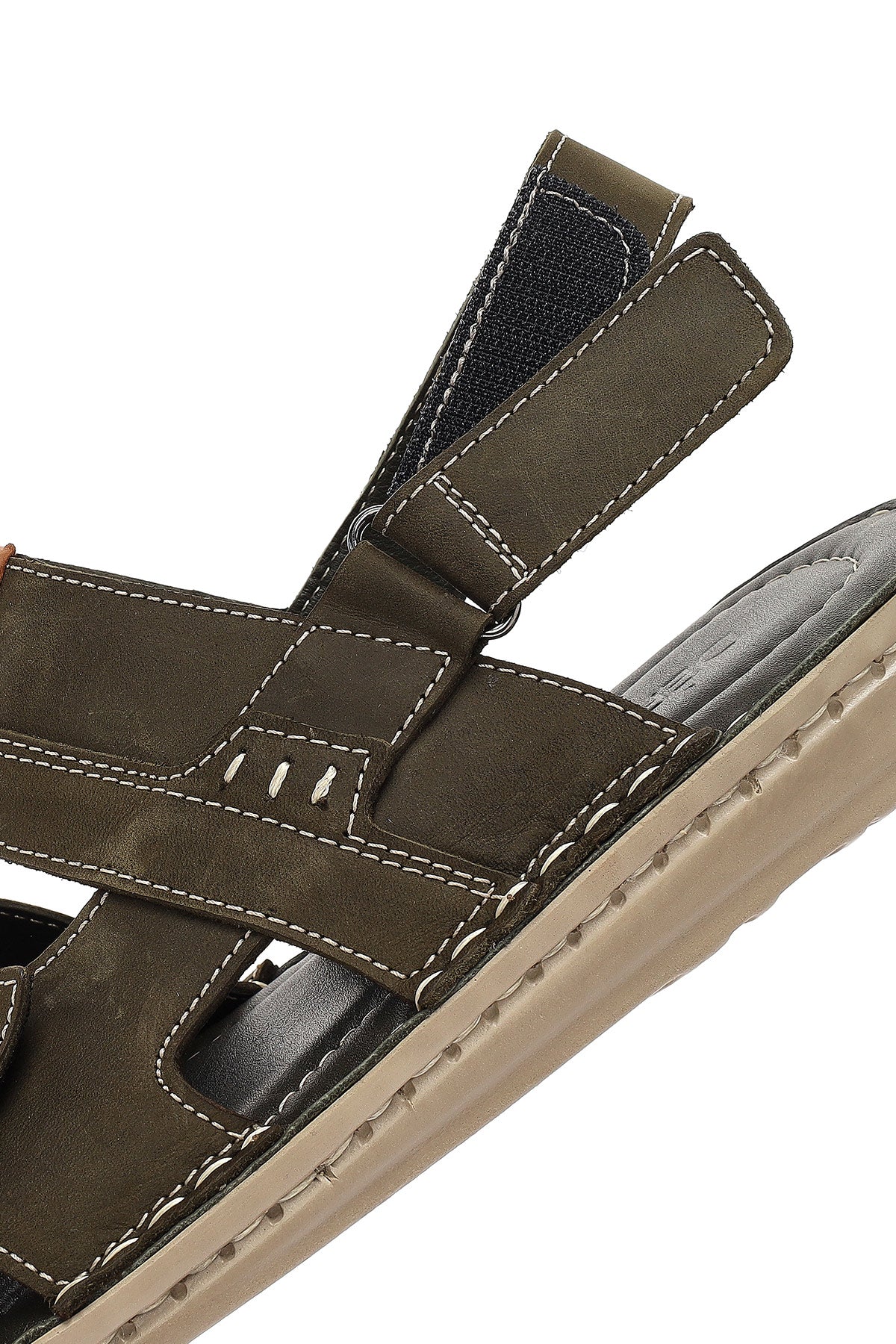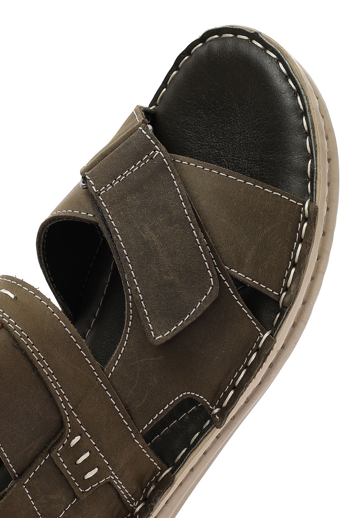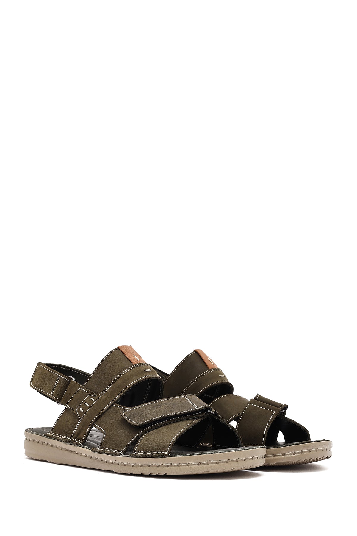 Erkek Haki Deri Sandalet