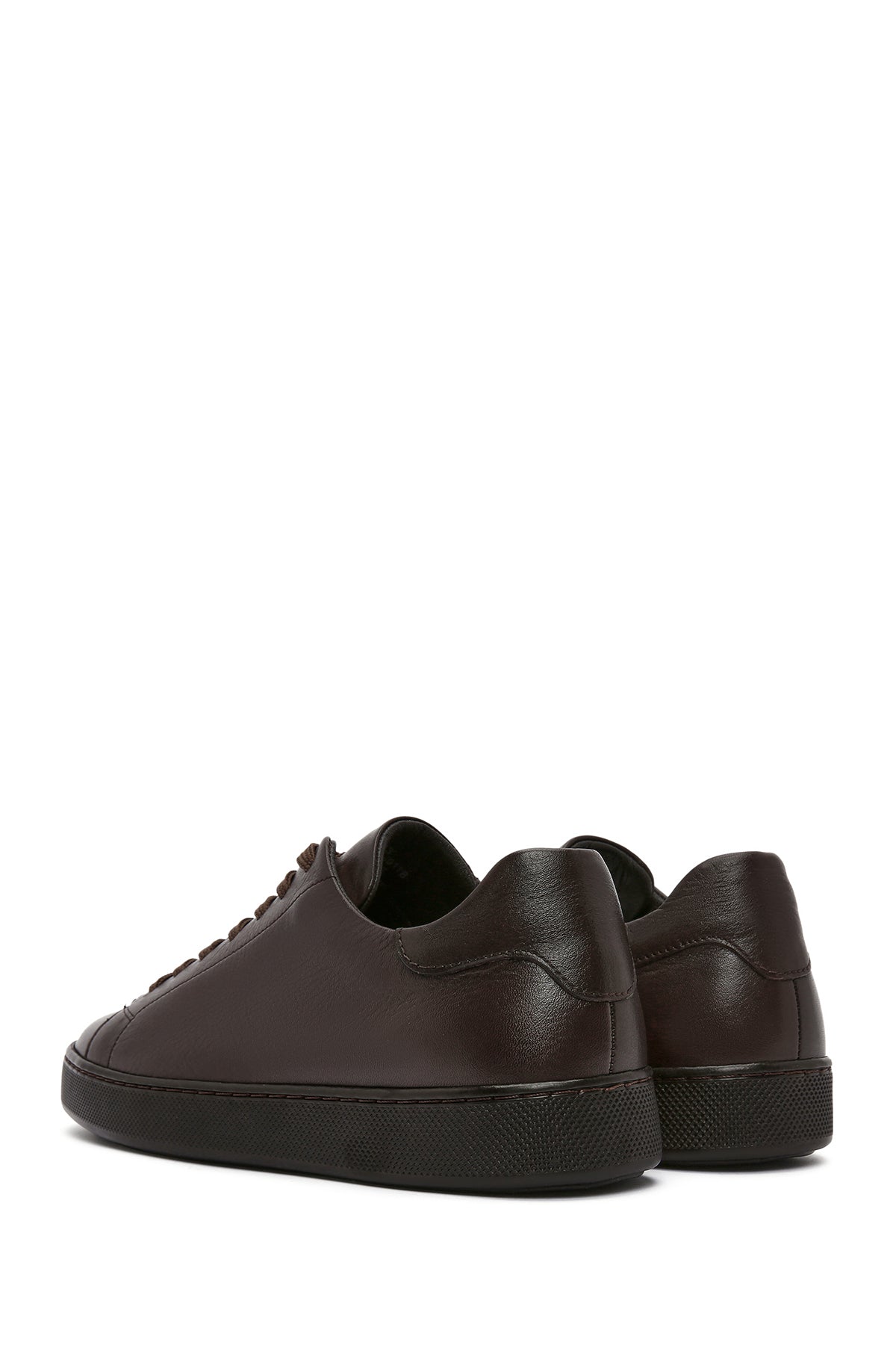 Erkek Kahverengi Bağcıklı Deri Sneaker
