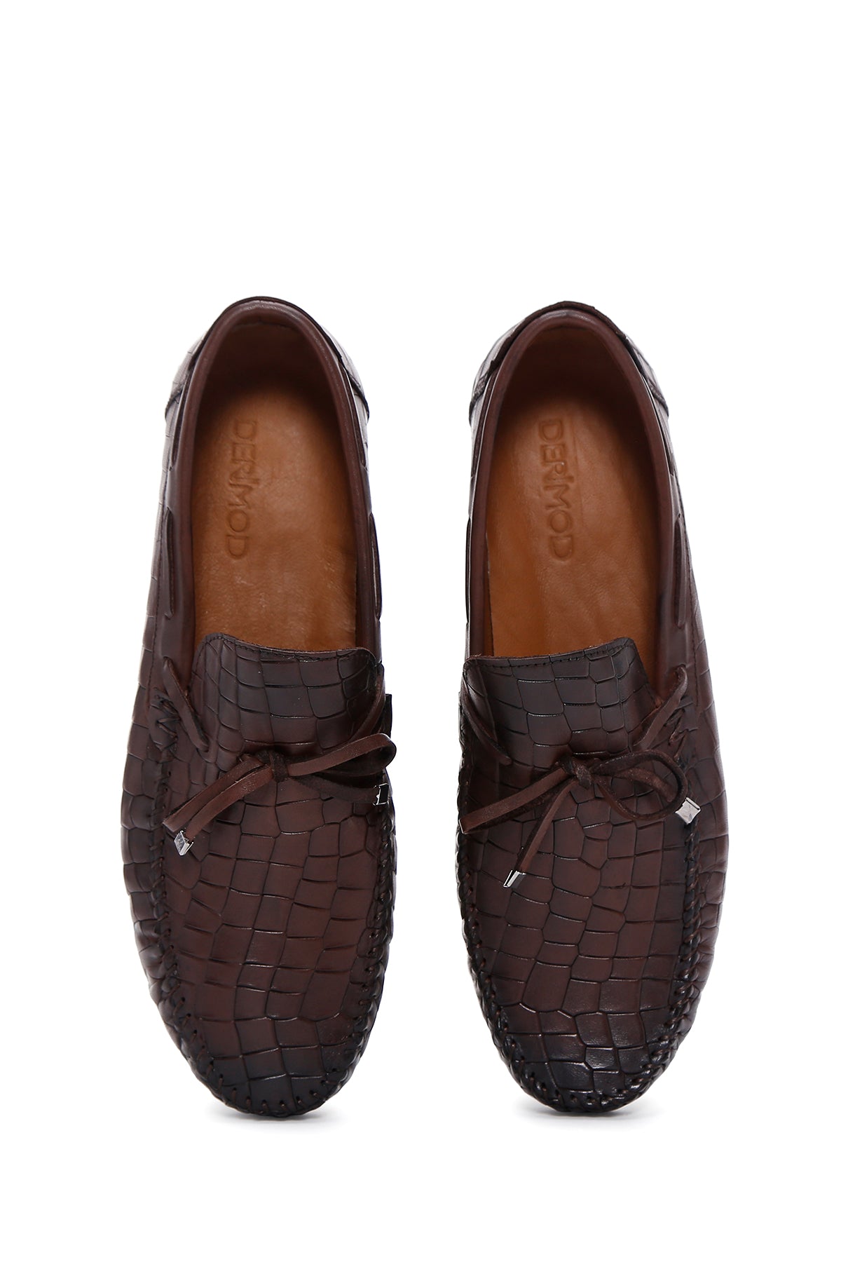 Erkek Kahverengi Kroko Desenli Deri Casual Loafer
