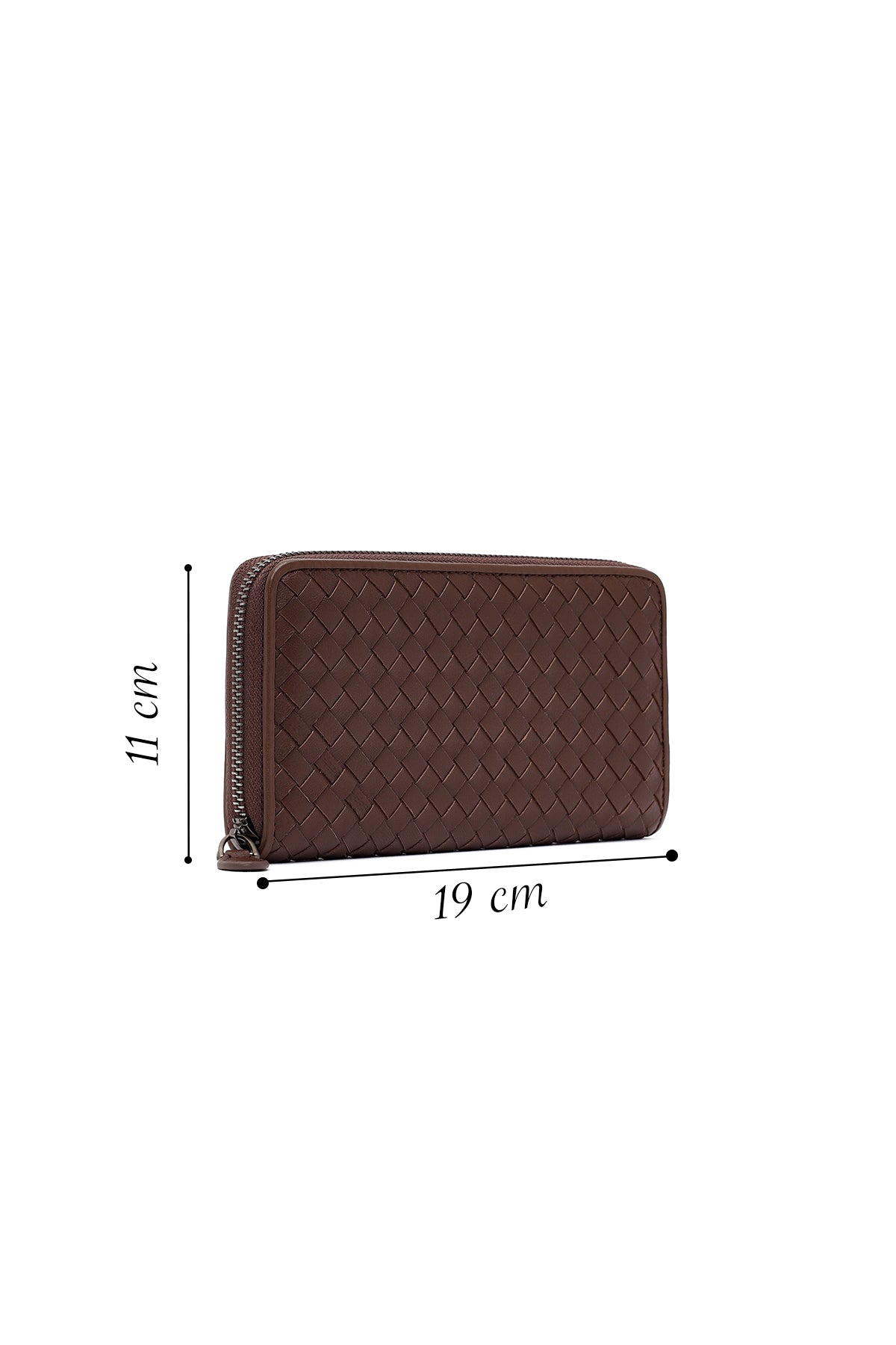 Erkek Kahverengi Örgülü Deri Cüzdan