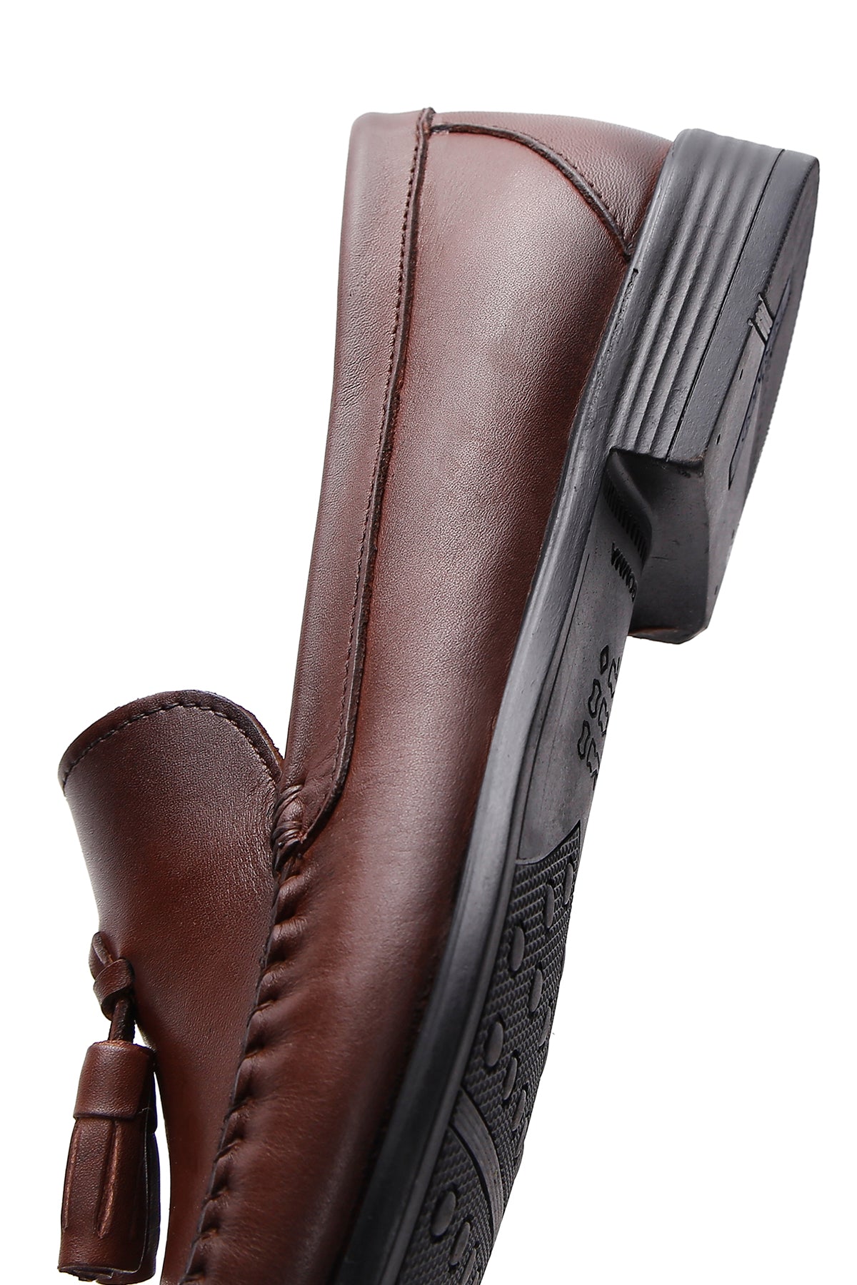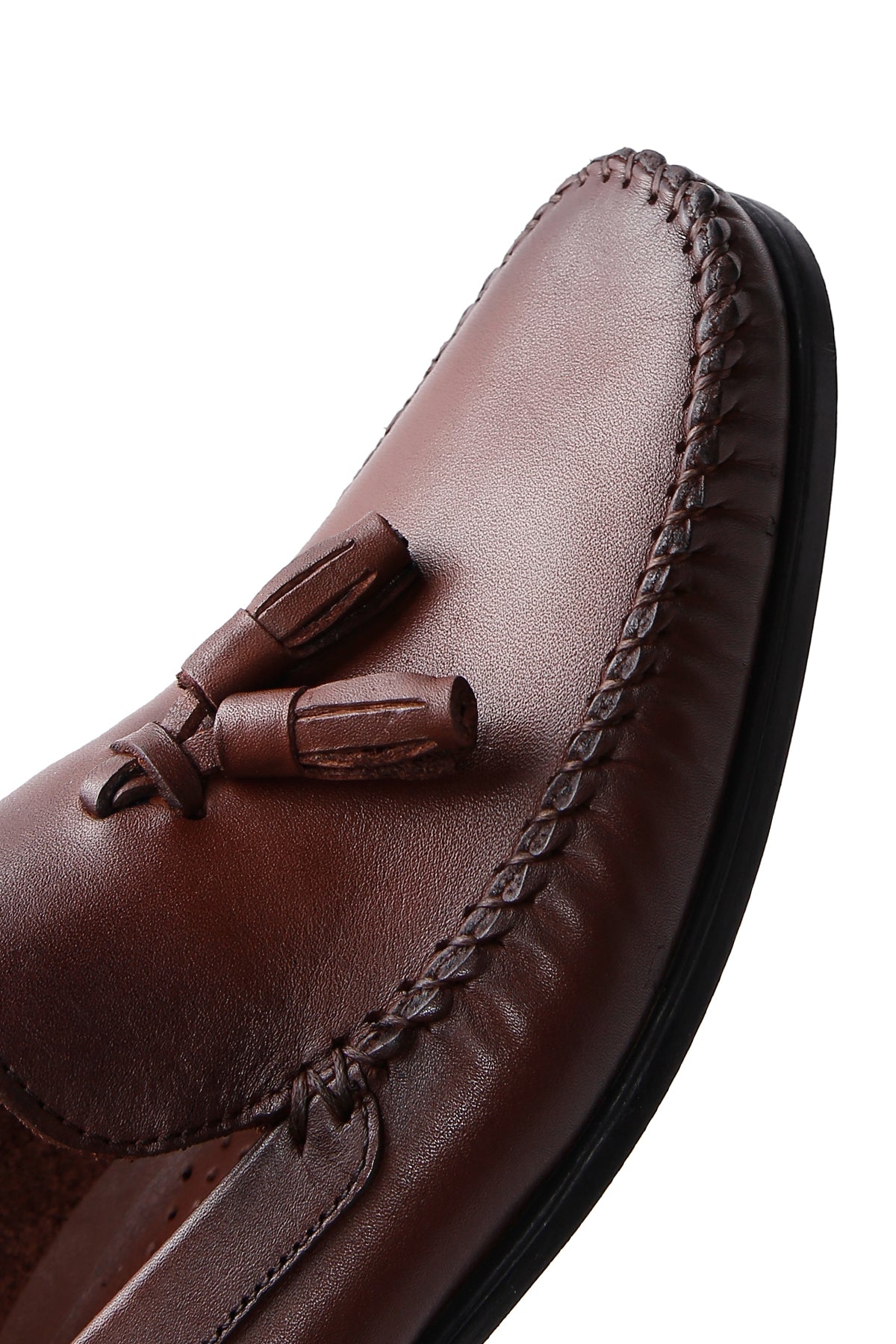 Erkek Kahverengi Püsküllü Deri Casual Loafer