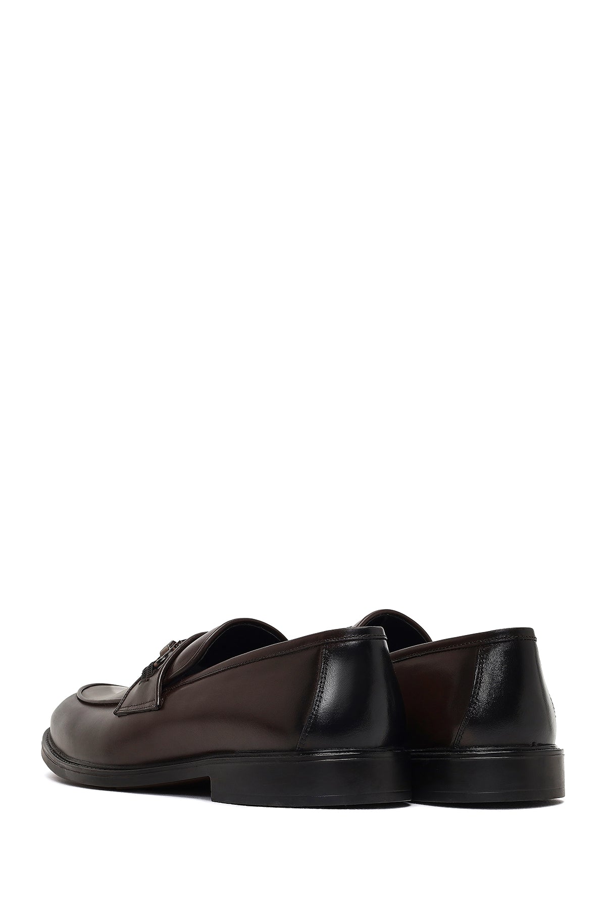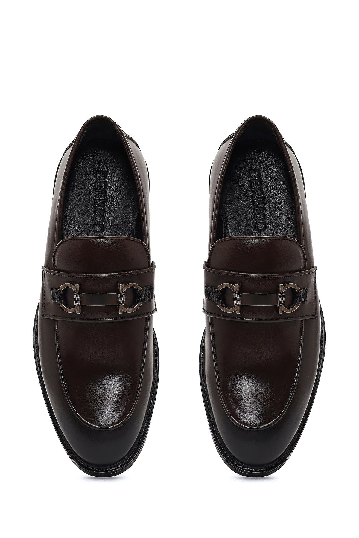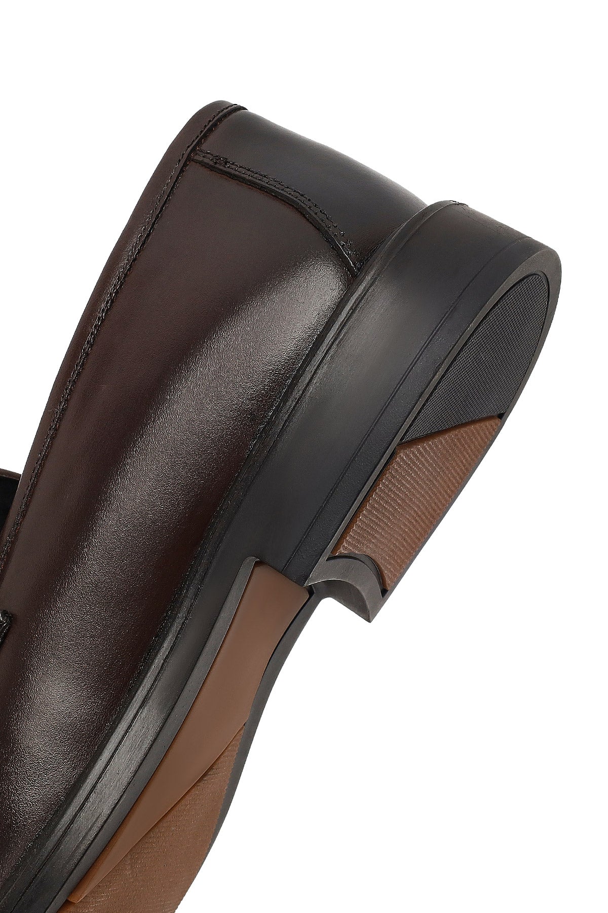 Kahverengi vidala deri yüzeyi parlak dokusuyla klasik şıklık sunarken, vamp bölgesindeki altın tonlu metal toka detayı ayakkabıya maskülen karakter kazandırmaktadır. 2,5 cm yüksekliğindeki düşük topuk yapısı günlük kullanımda dengeli duruş sağlarken, slip-on tasarımı kolay giyim imkanı sunmaktadır. Deri iç astar nefes alabilir yapı oluştururken ayak sağlığını destekler ve uzun süreli kullanımda konfor sağlar. Oval burun formu ayağa doğal görünüm kazandırırken, geniş ayak yapısına uyum göstermektedir. Yan panel dikişleri sağlam yapıyı desteklerken, topuk arkası yüksek destek sunarak ayak stabilitesini artırmaktadır. Taban yapısı düz profil oluştururken kaymaz özellik gösterir ve zemin tutuşunu güçlendirir. Ağız çevresi düz kesim ile tasarlanmış olup ayağa kolay girişi mümkün kılmaktadır. Mevsim geçişlerine uygun yapısıyla farklı hava koşullarında kullanılabilir özellik taşımaktadır. Ofis ortamından günlük aktivitelere, sosyal etkinliklerden iş toplantılarına kadar geniş kullanım alanına sahiptir. Klasik loafer siluetini modern detaylarla harmanlayan tasarım anlayışı, zamansız şıklığı günümüz trendleriyle buluşturmaktadır. Ürün kodu: 25WFD664018