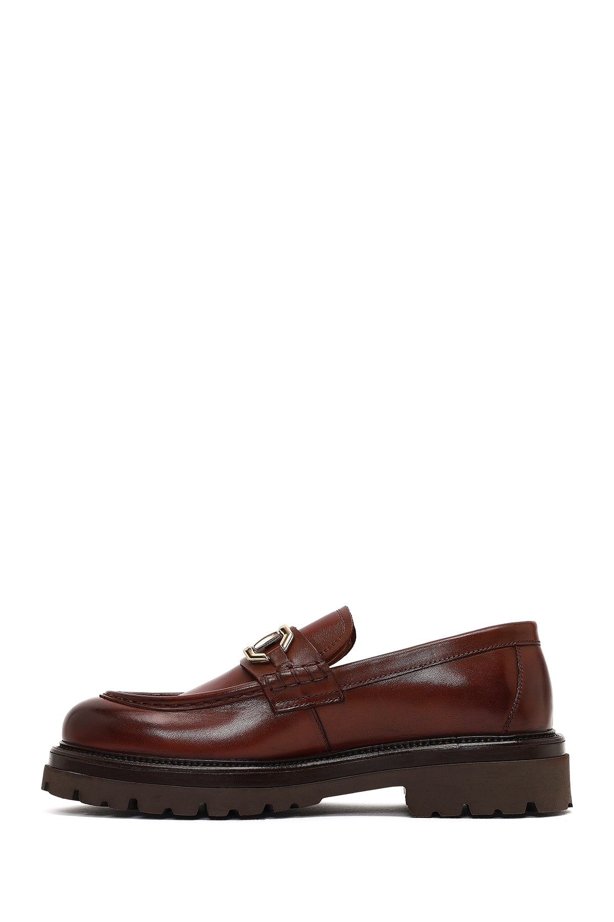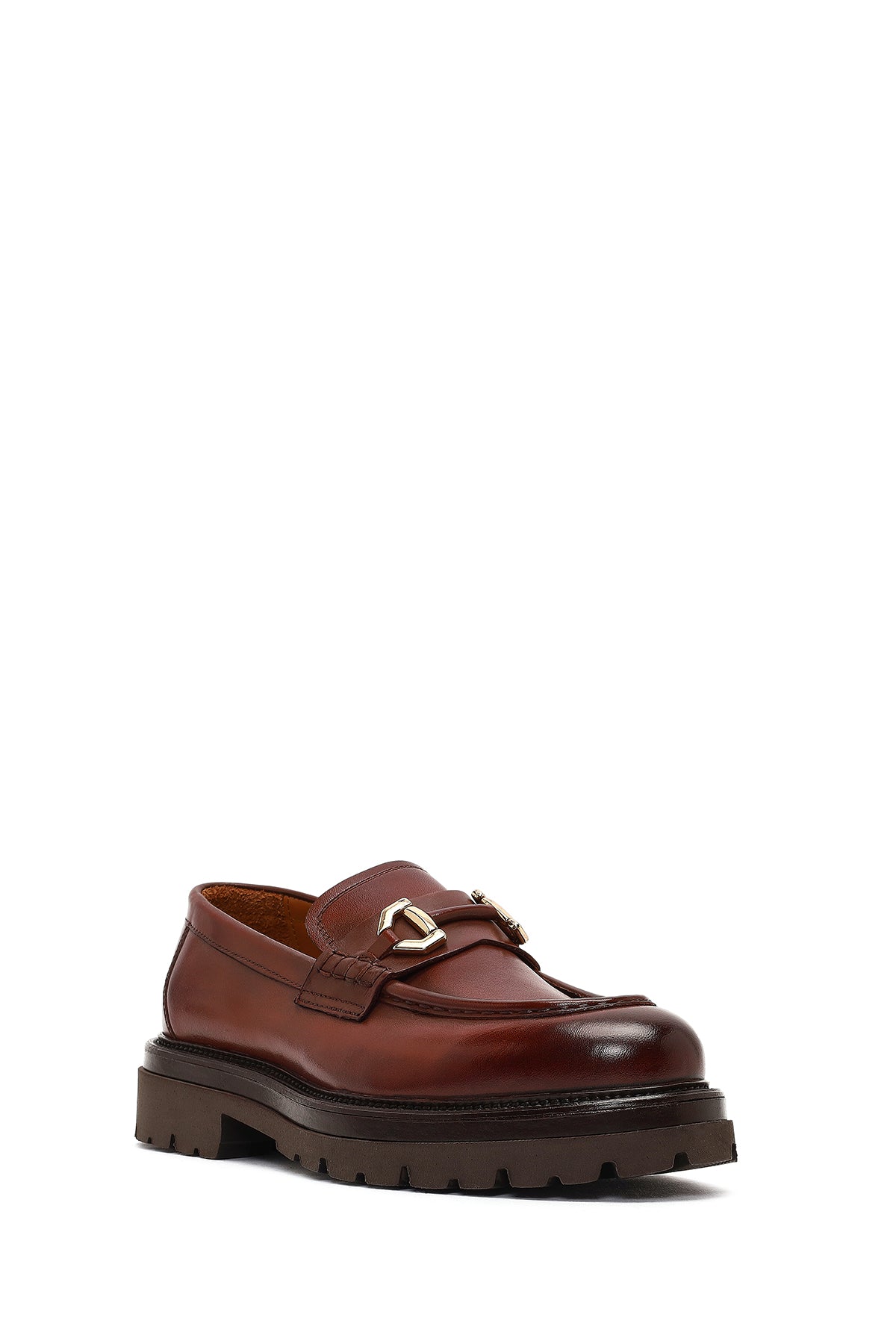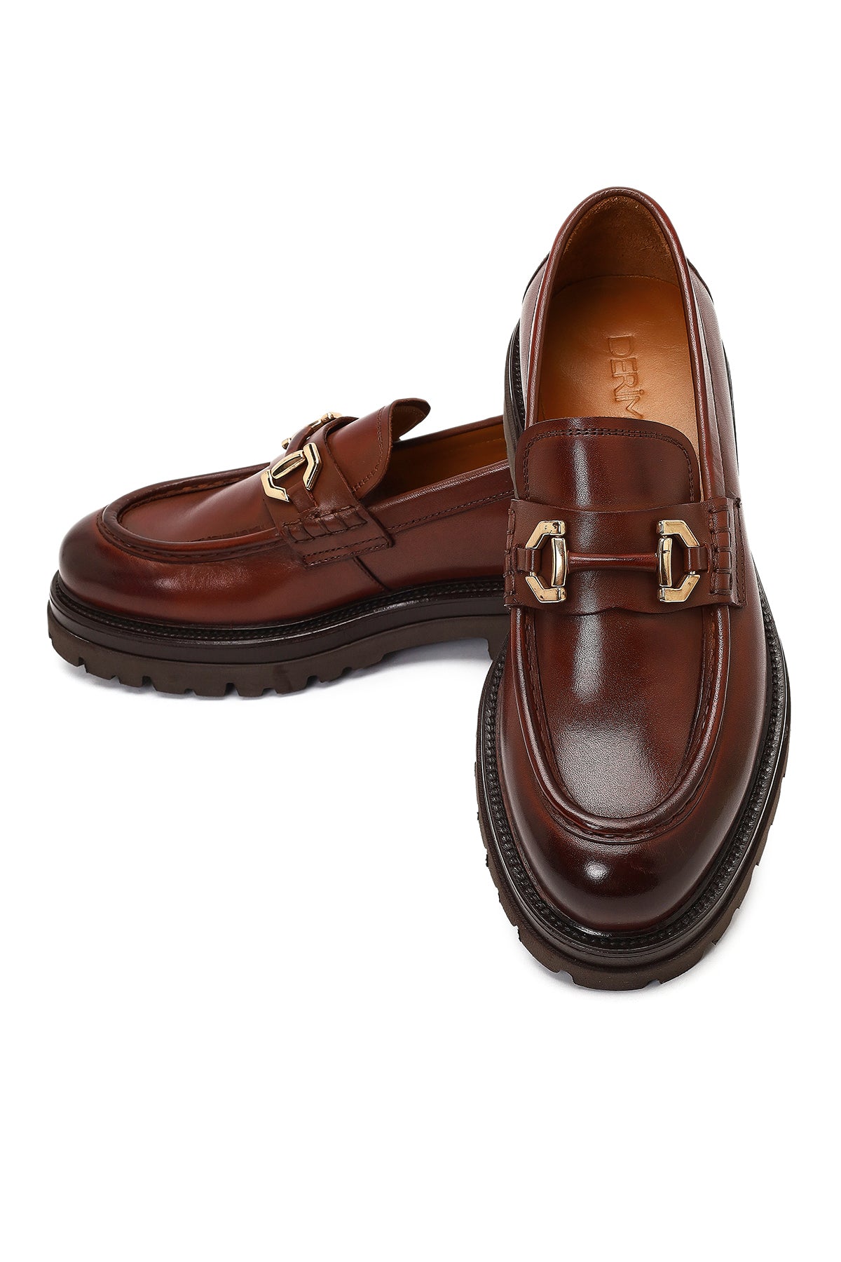 Kalın tabanlı yapısı ve metal toka detayıyla dikkat çeken erkek loafer modeli, vidala deri malzemeden üretilmiştir. Parlak kahverengi deri yüzeyi pürüzsüz dokusuyla şık görünüm sunarken, vamp bölgesindeki altın tonlu metal toka ayakkabıya maskülen karakter katmaktadır. 2 cm yüksekliğindeki kalın kauçuk taban, oluklu desen yapısıyla kayma önleyici özellik gösterirken platform etkisi yaratmaktadır. Deri iç astar nefes alabilir yapı sağlarken, ayak tabanına yumuşak temas hissi vermektedir. Klasik loafer siluetini modern kalın taban trendi ile birleştiren tasarım, günlük kullanımda konfor ve stil dengesini kurmaktadır. Oval burun formu ayağa doğal görünüm kazandırırken, ağız çevresindeki düz kesim kolay giyim imkanı sunmaktadır. Mevsim geçişlerine uygun yapısıyla farklı hava koşullarında kullanılabilir özellik taşımaktadır. Ofis ortamından günlük aktivitelere kadar geniş kullanım alanına sahip olan model, casual şıklığı modern detaylarla harmanlayan tasarım anlayışını yansıtmaktadır. Ürün kodu: 25WFD740018