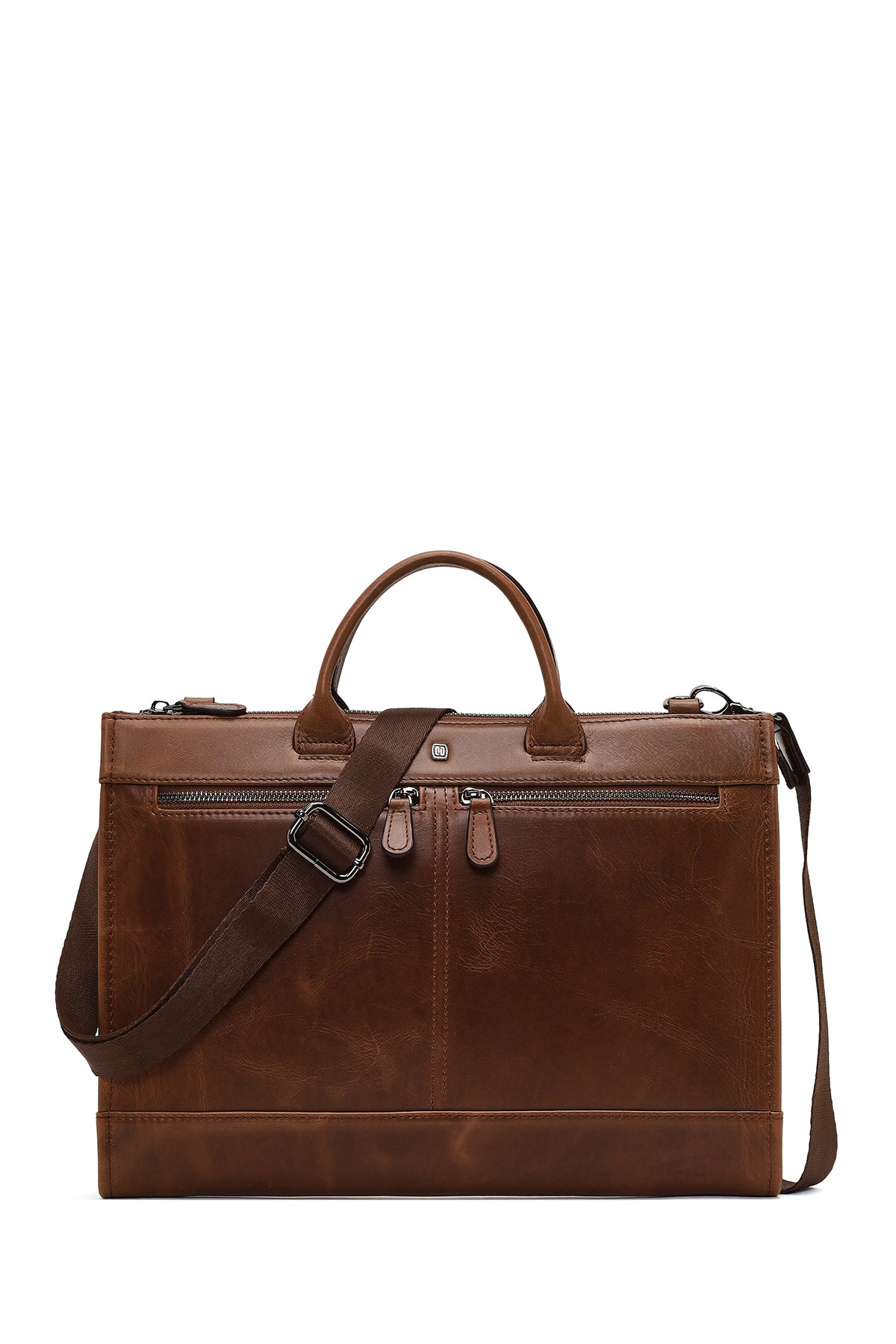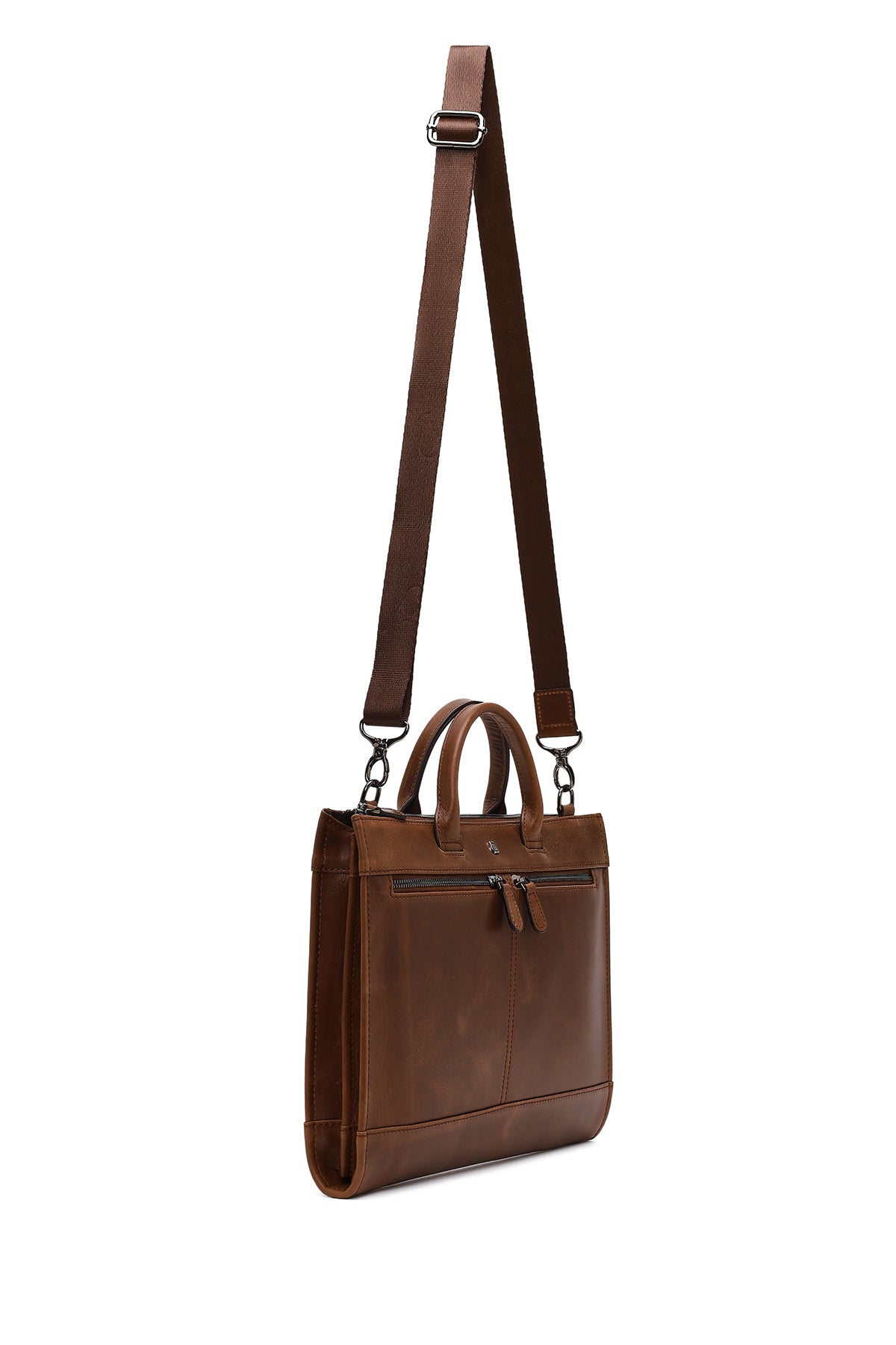 Erkek Kahverengi Uzun Askılı Deri Evrak Çantası