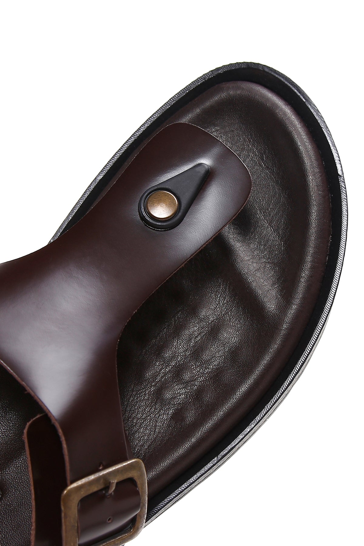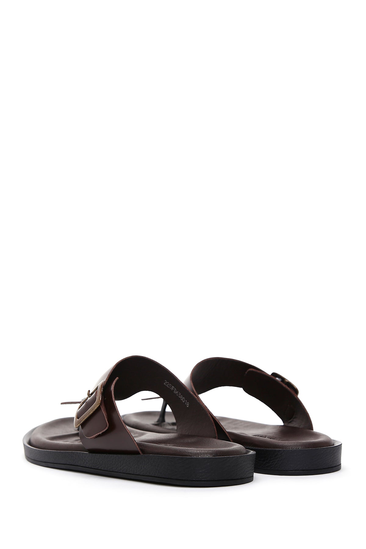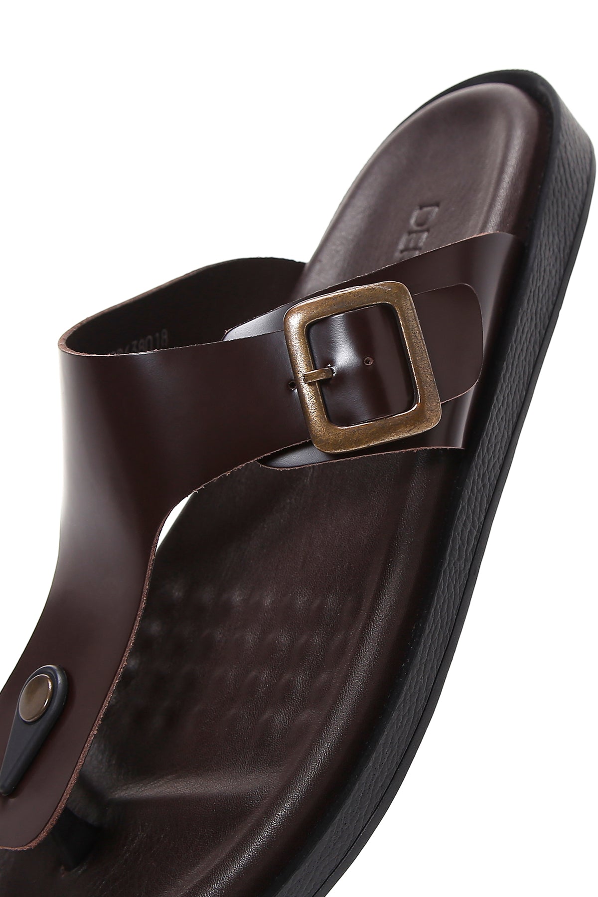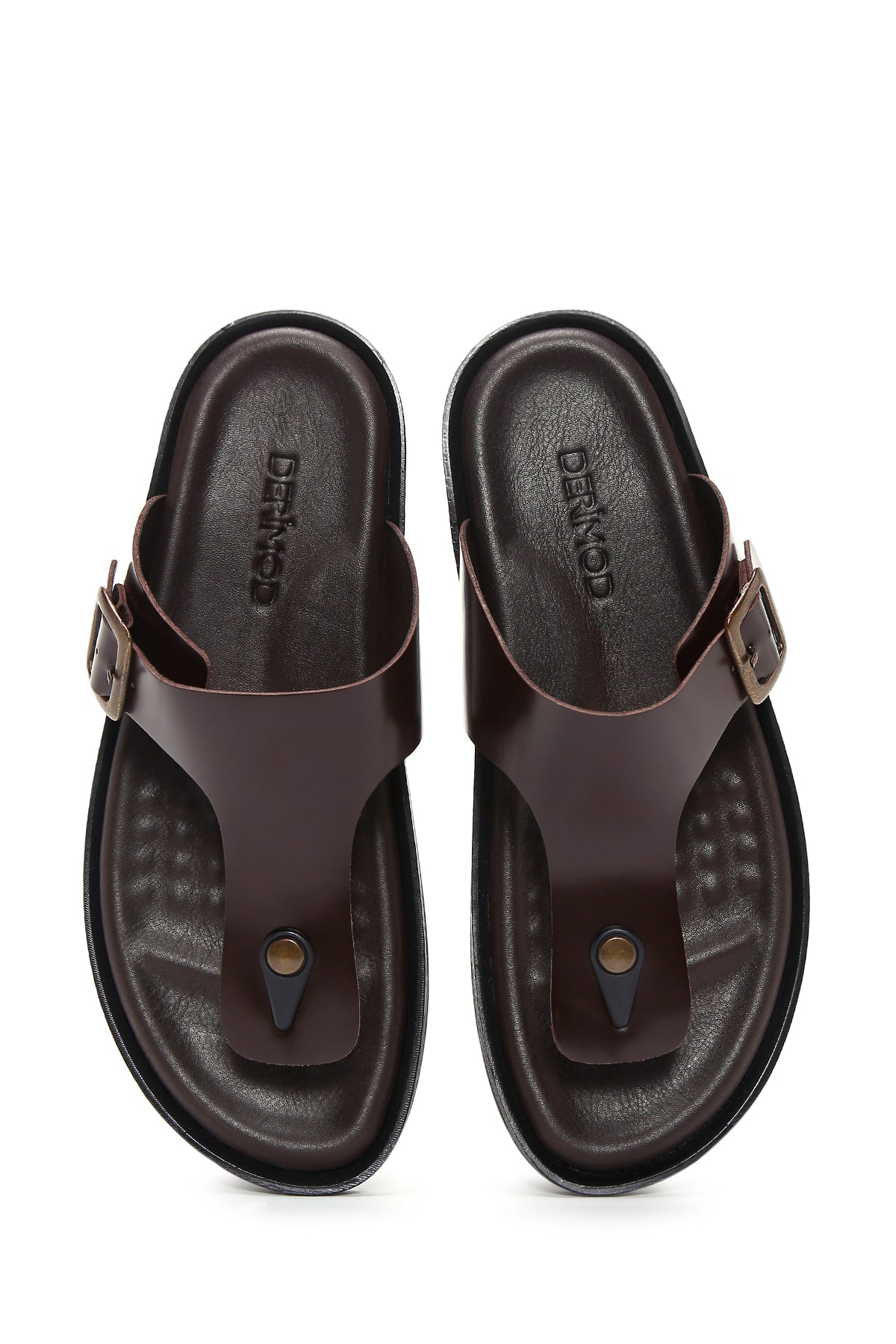 Derimod’un Zarif ve Şıklığı bir arada sunan Erkek Kahvrengi Deri Parmak Arası Tokalı Düz Terlik ile tarzınızı konuşturun. Ürünün kodu: 23SFD625718 25