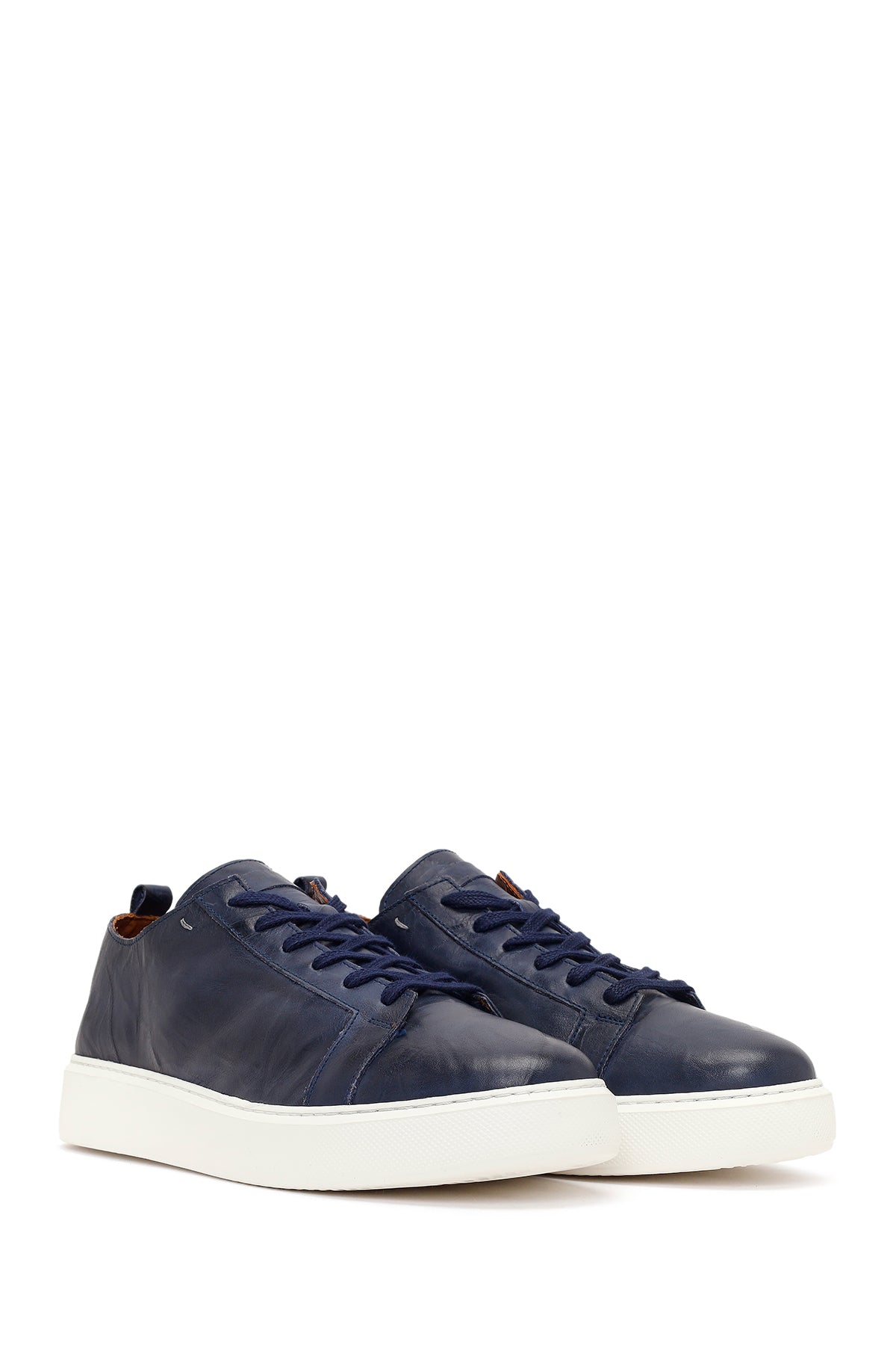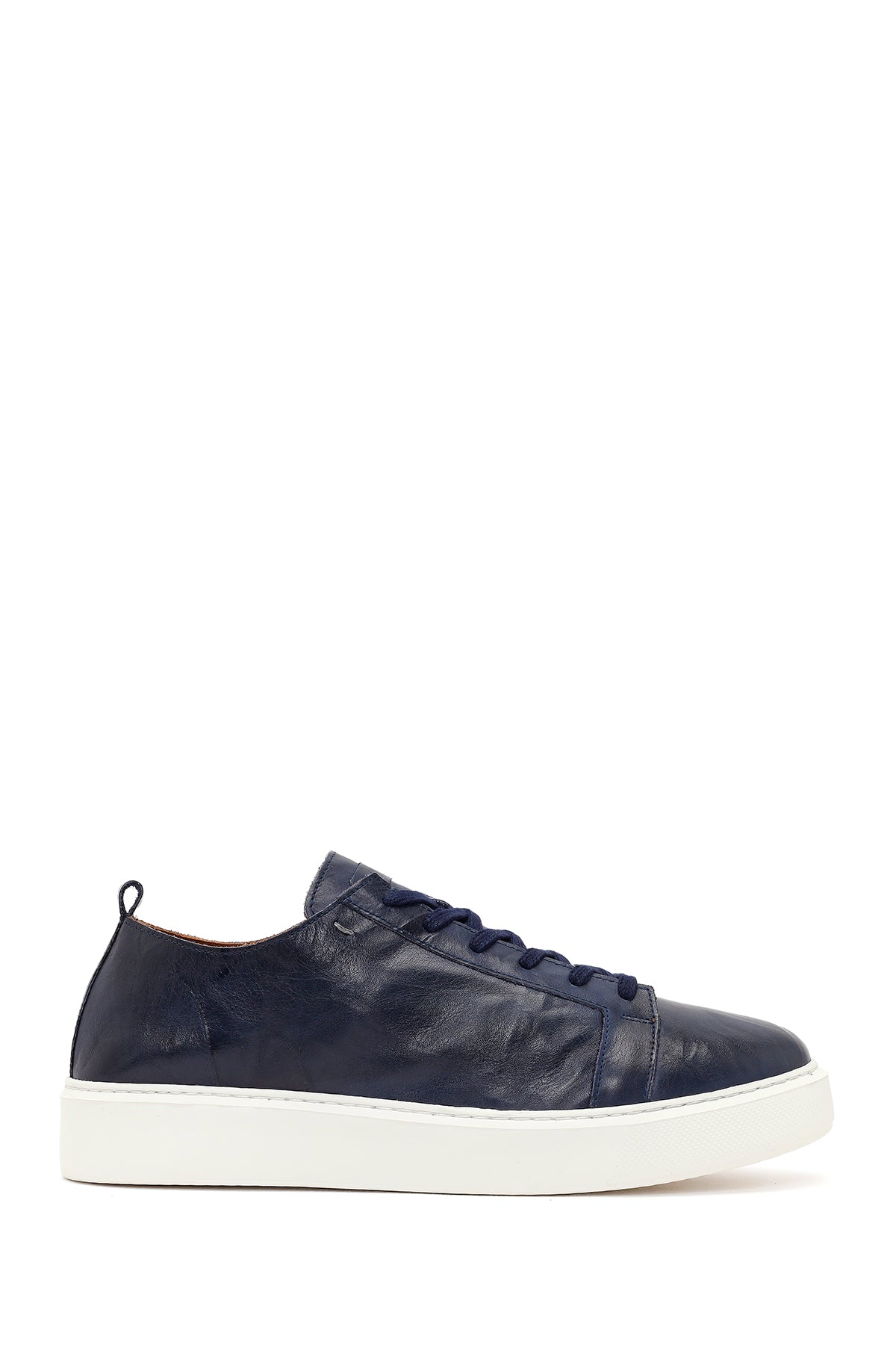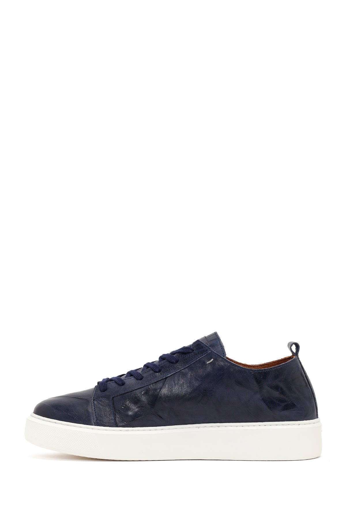Erkek Lacivert Bağcıklı Kalın Tabanlı Baskılı Deri Sneaker