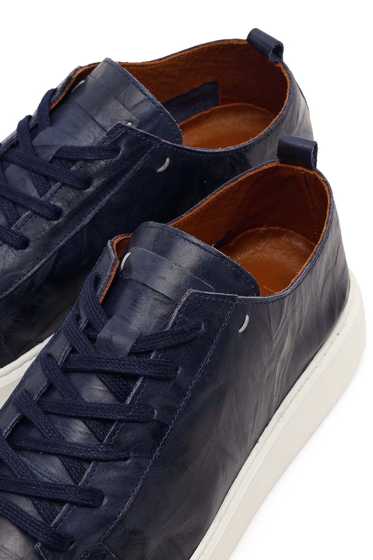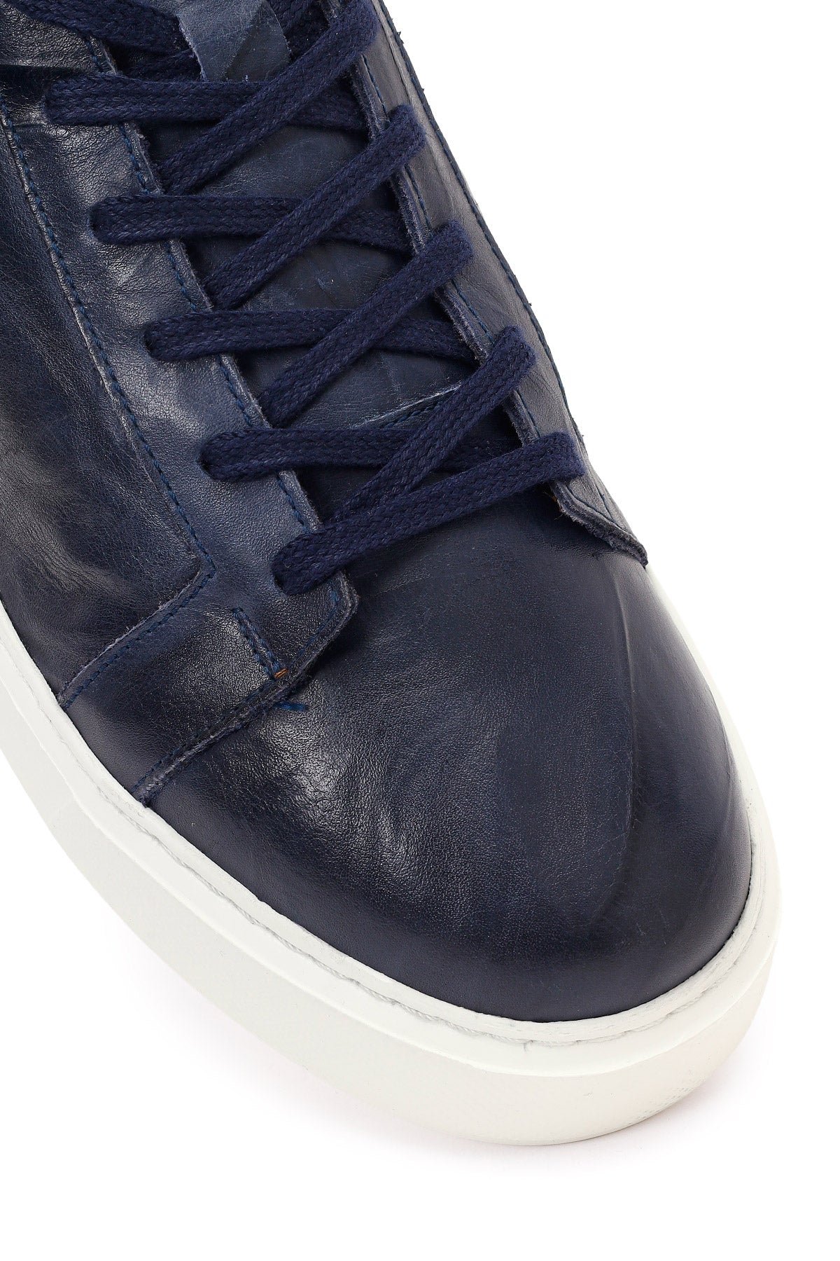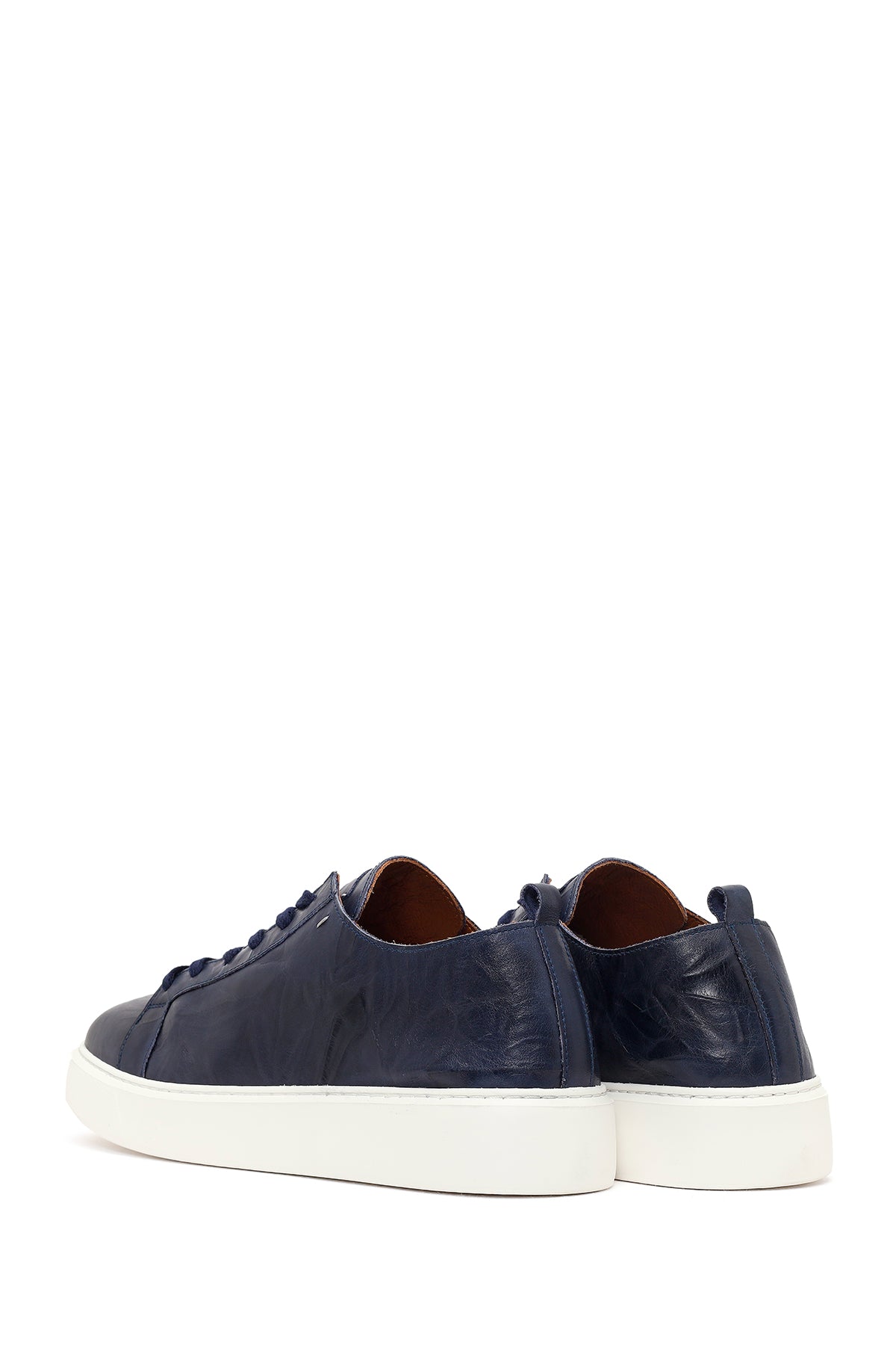 Erkek Lacivert Bağcıklı Kalın Tabanlı Baskılı Deri Sneaker