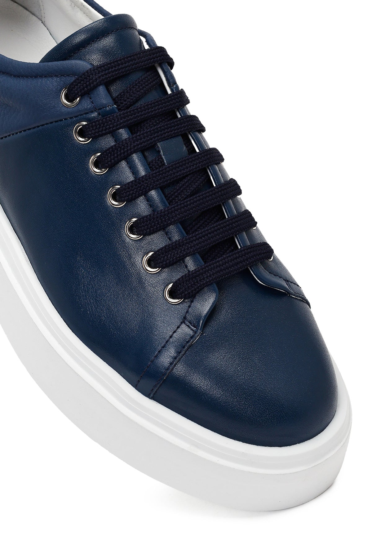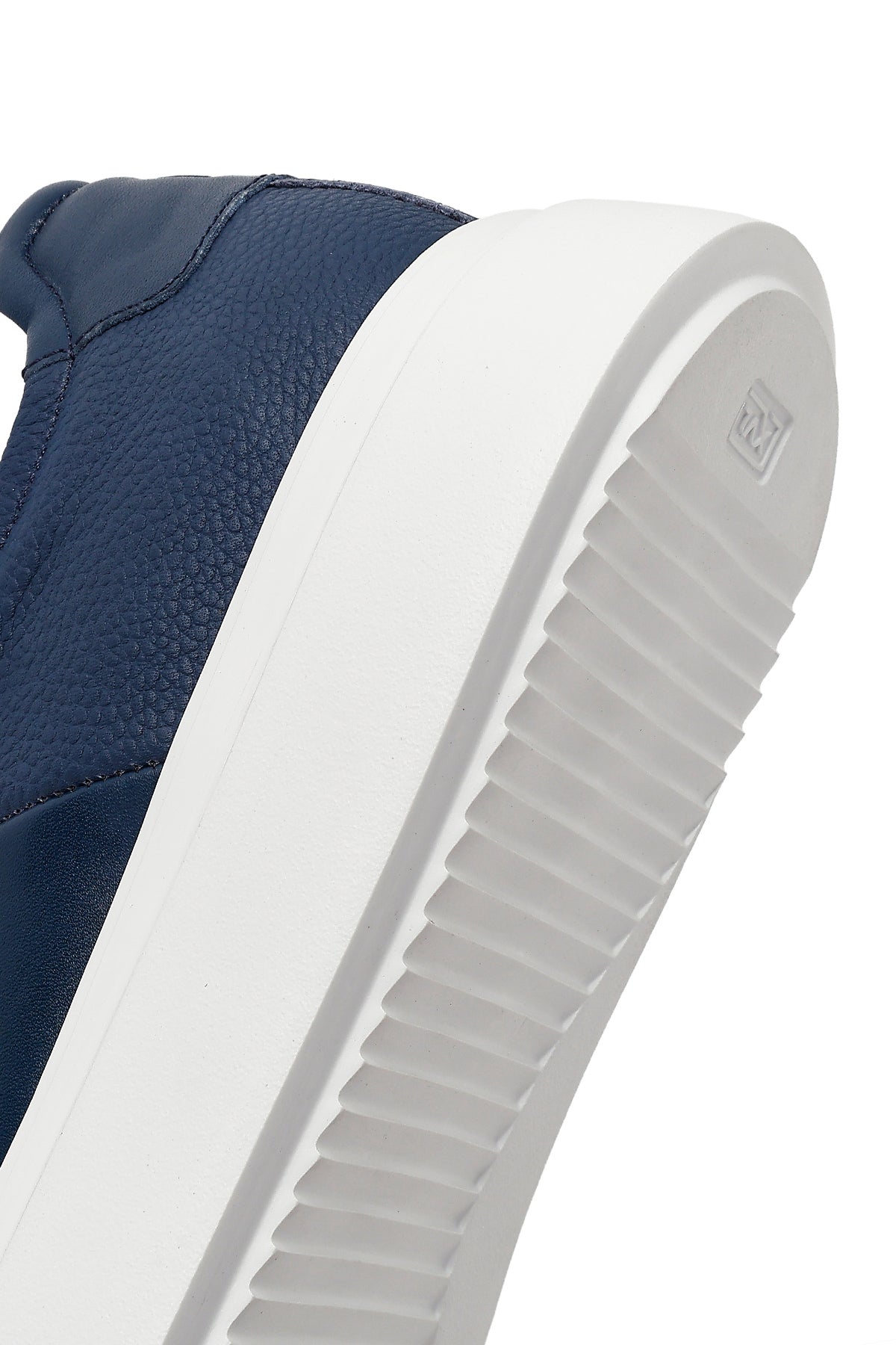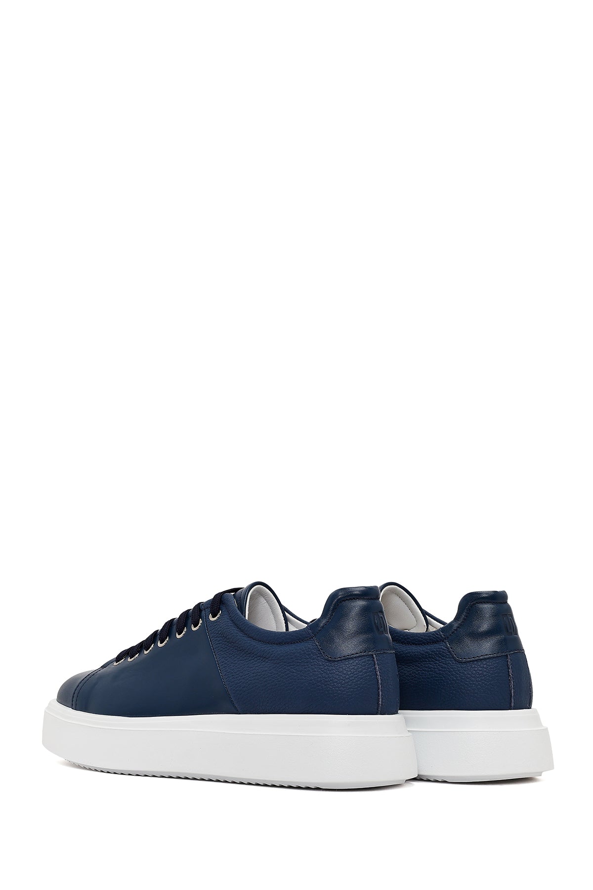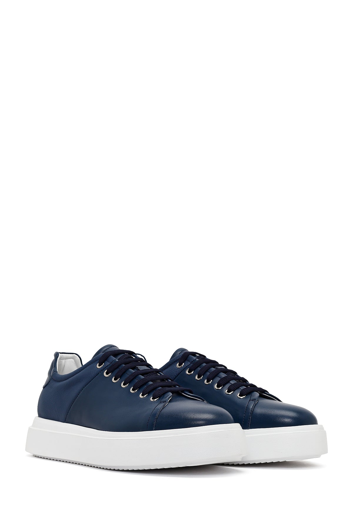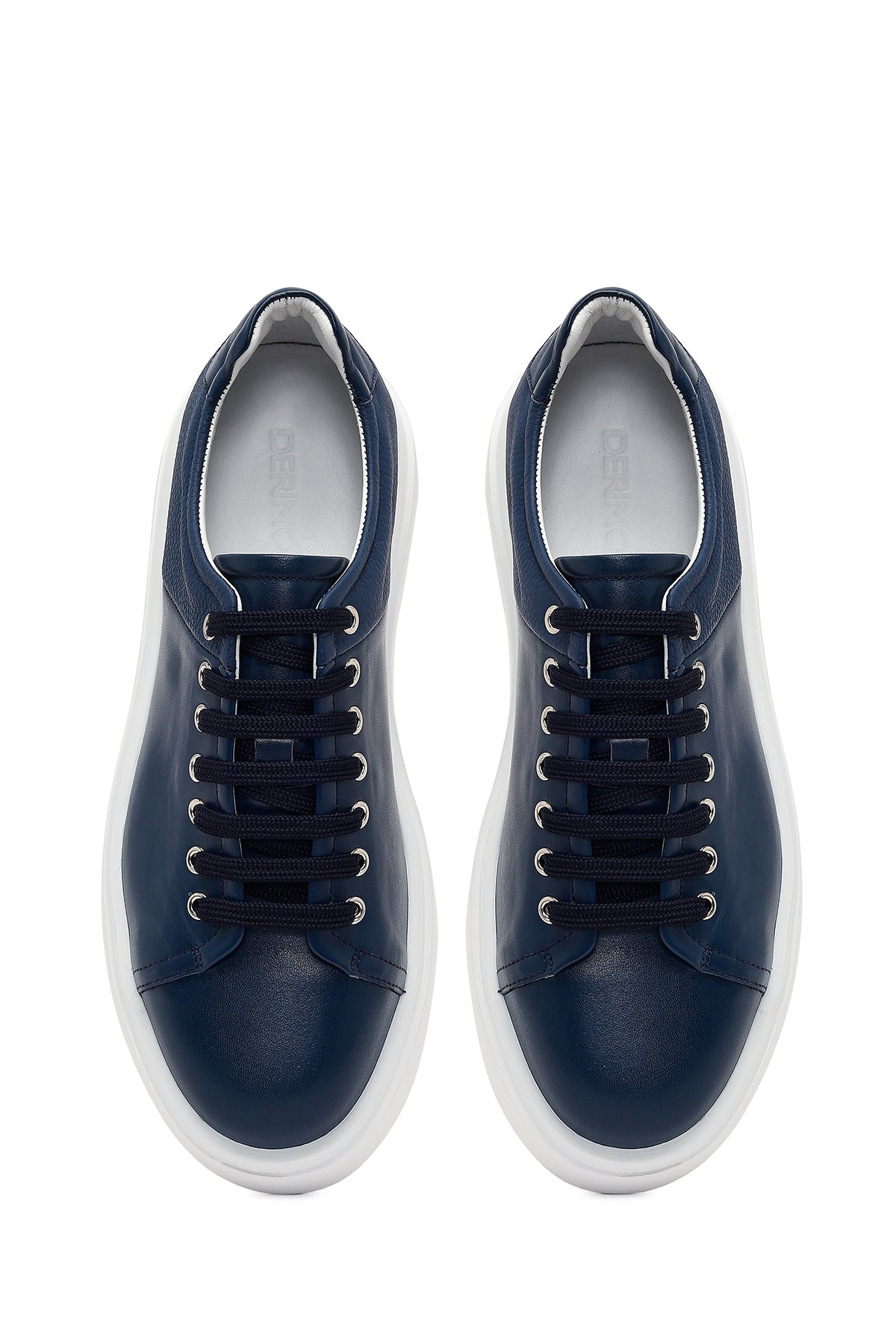 Erkek Lacivert Bağcıklı Kalın Tabanlı Deri Sneaker