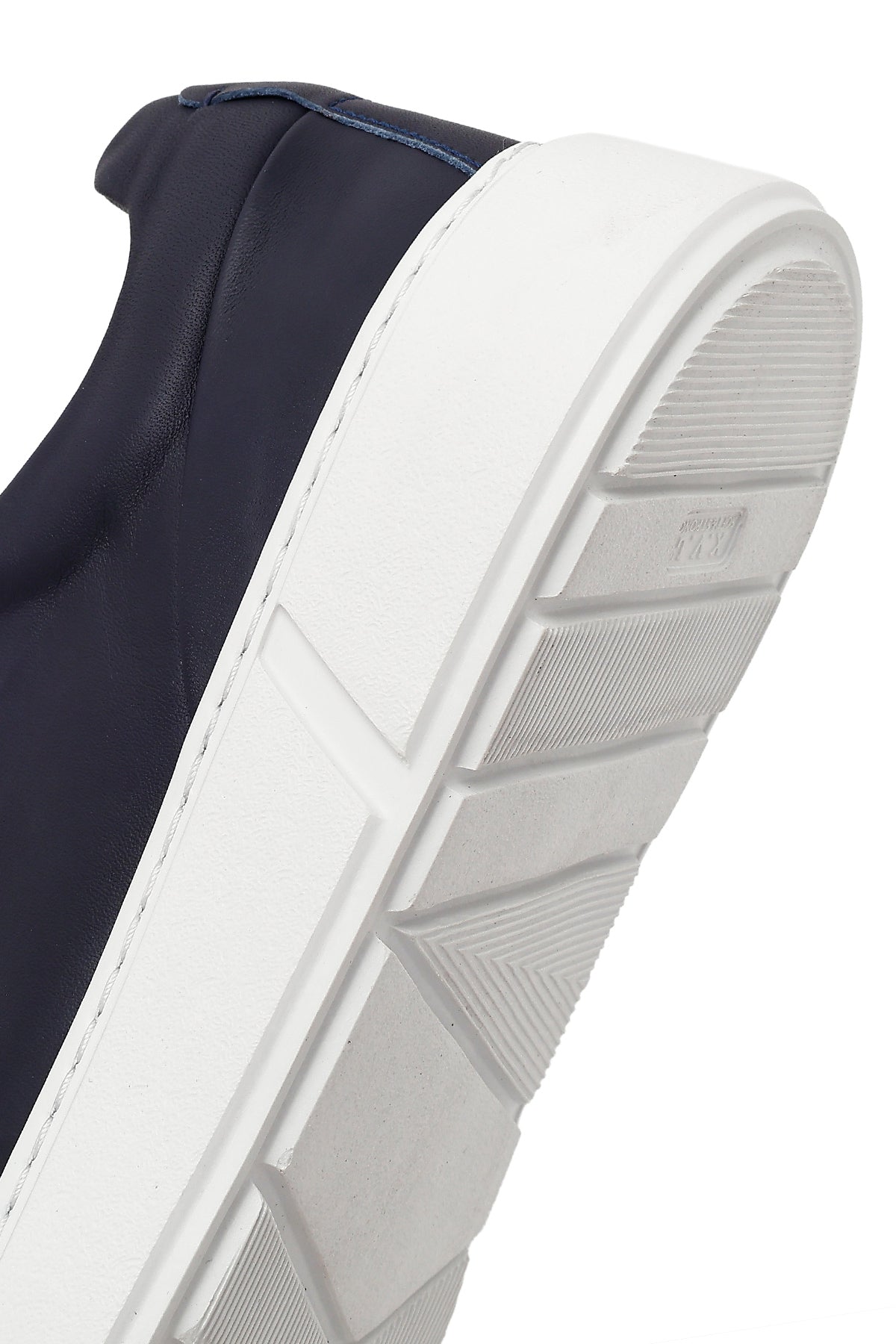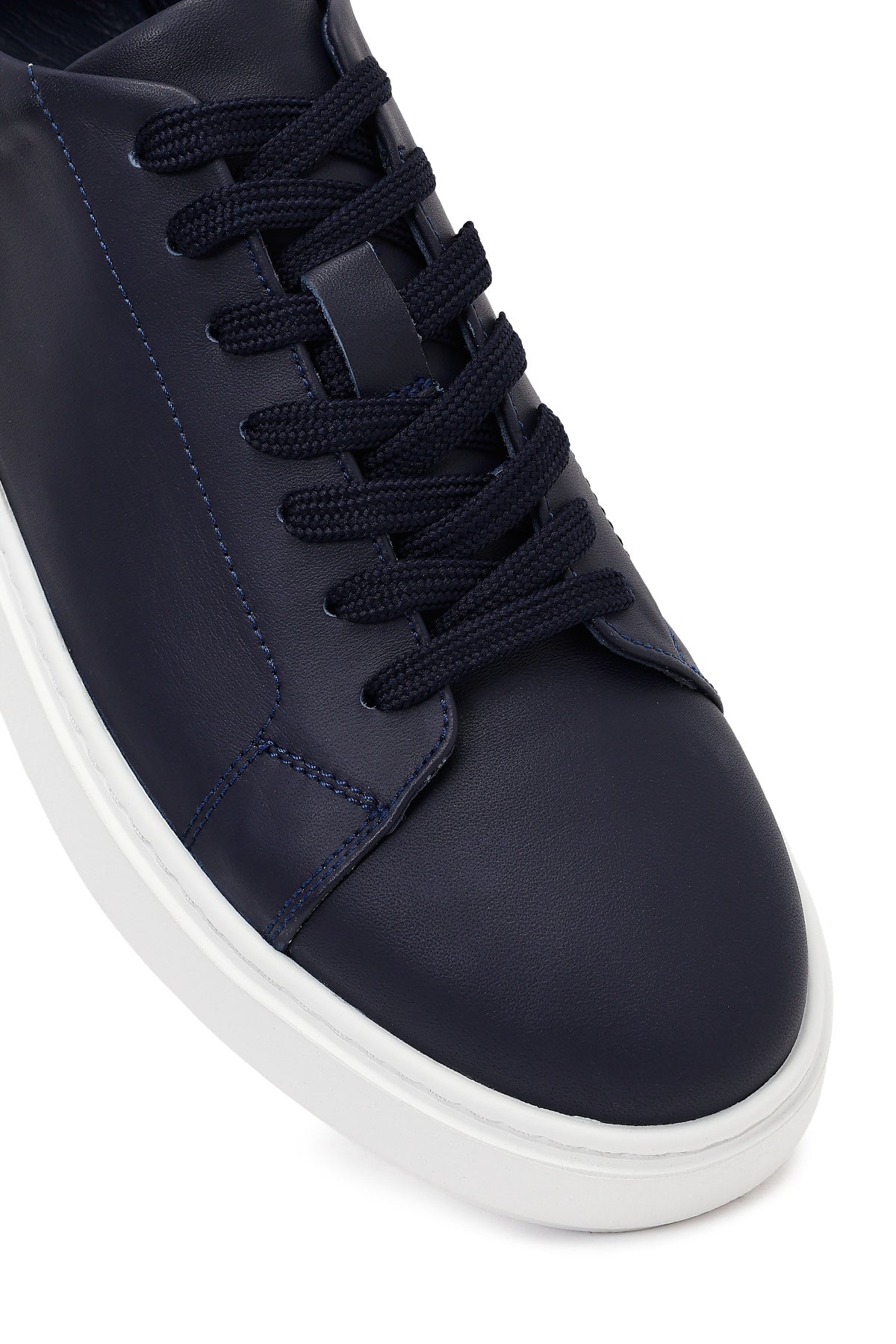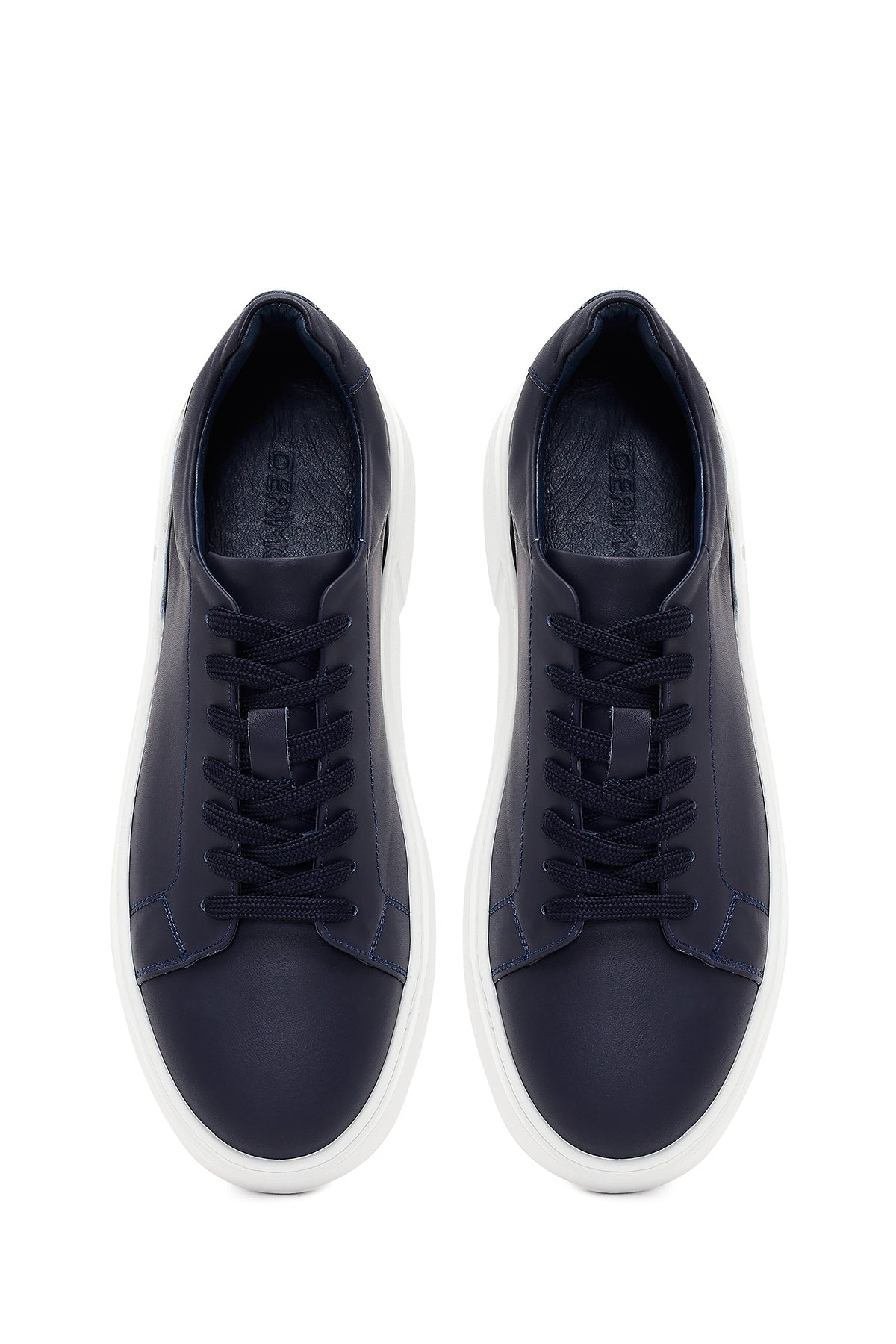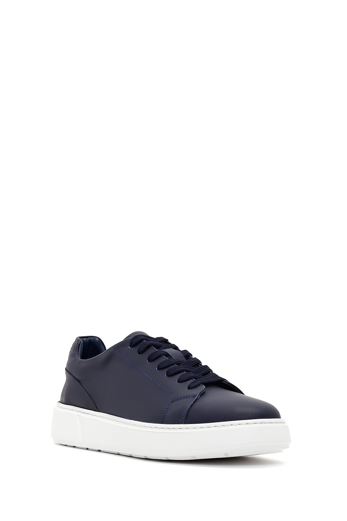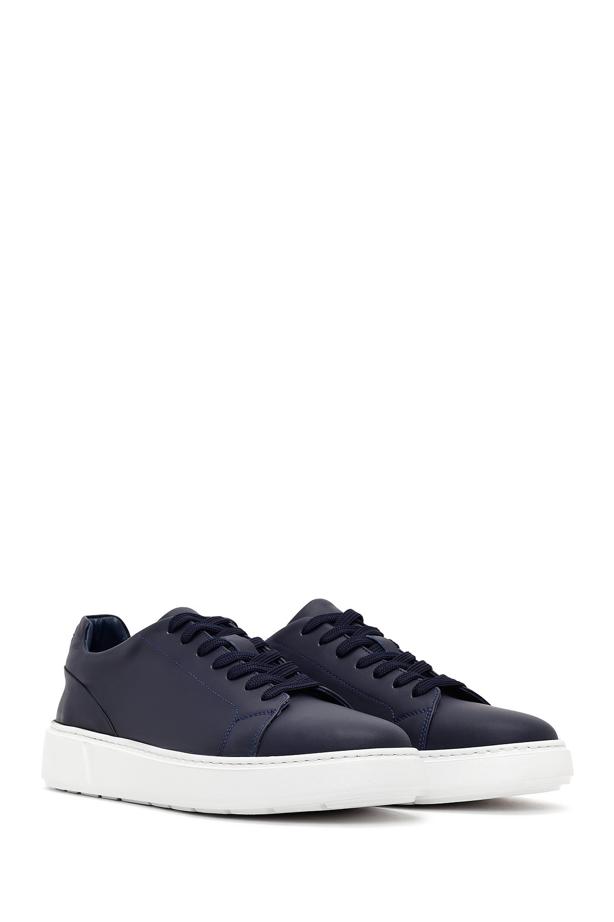 Erkek Lacivert Bağcıklı Kalın Tabanlı Deri Sneaker