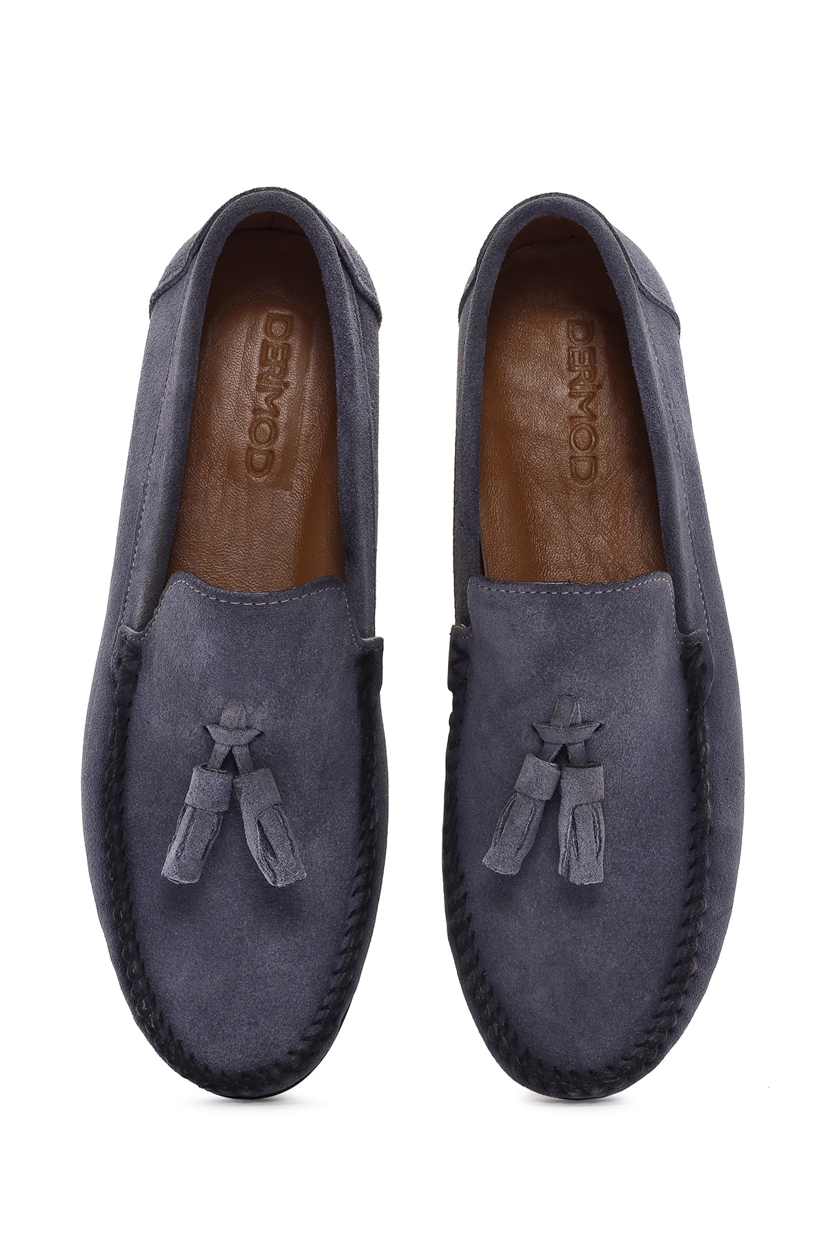 Erkek Mavi Püsküllü Süet Deri Loafer