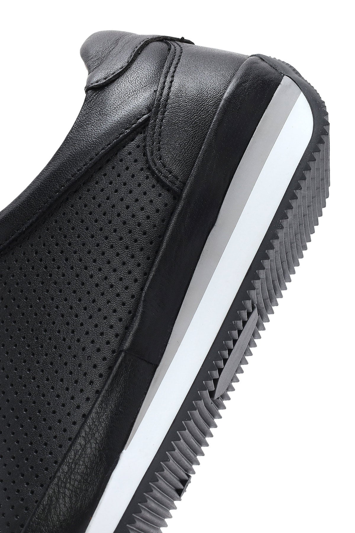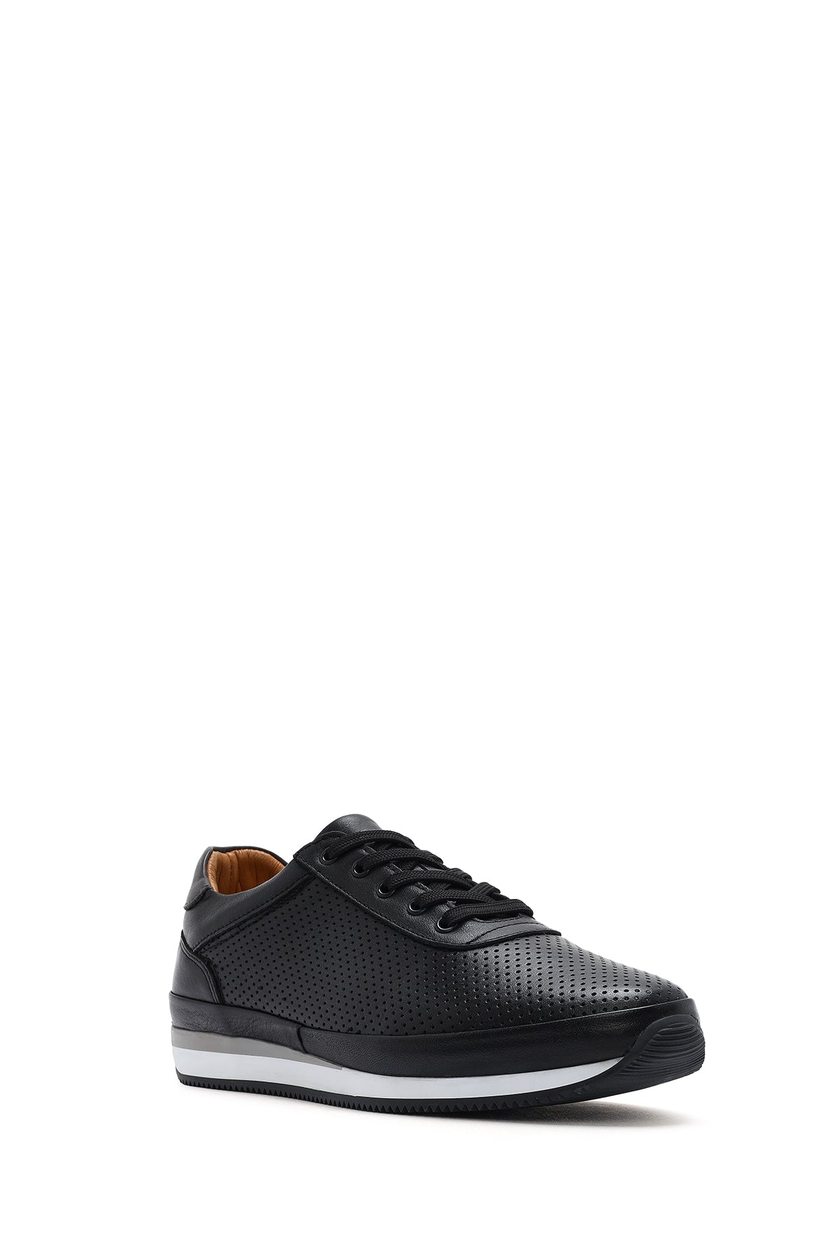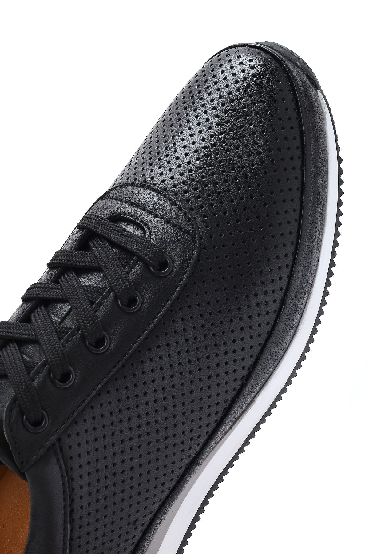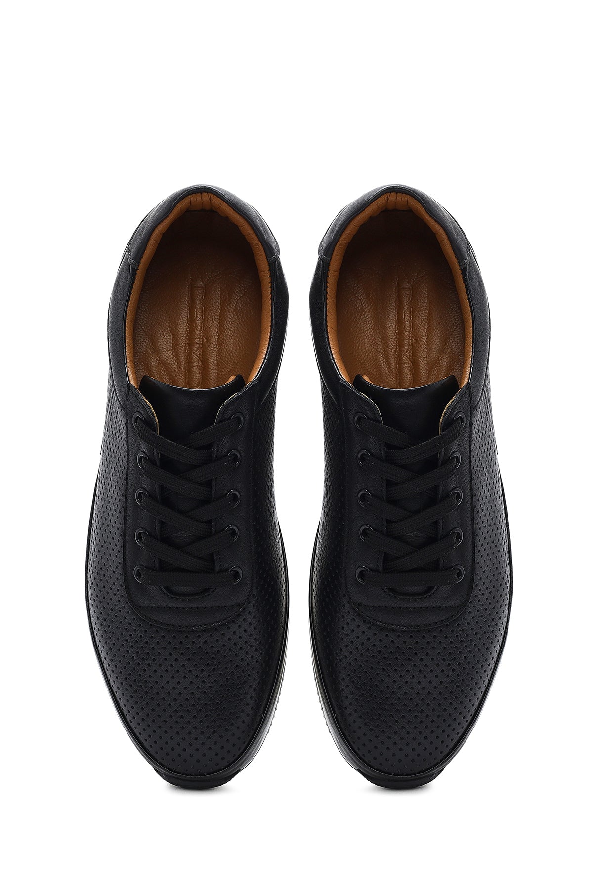 Erkek Siyah Bağcıklı Deri Casual Sneaker