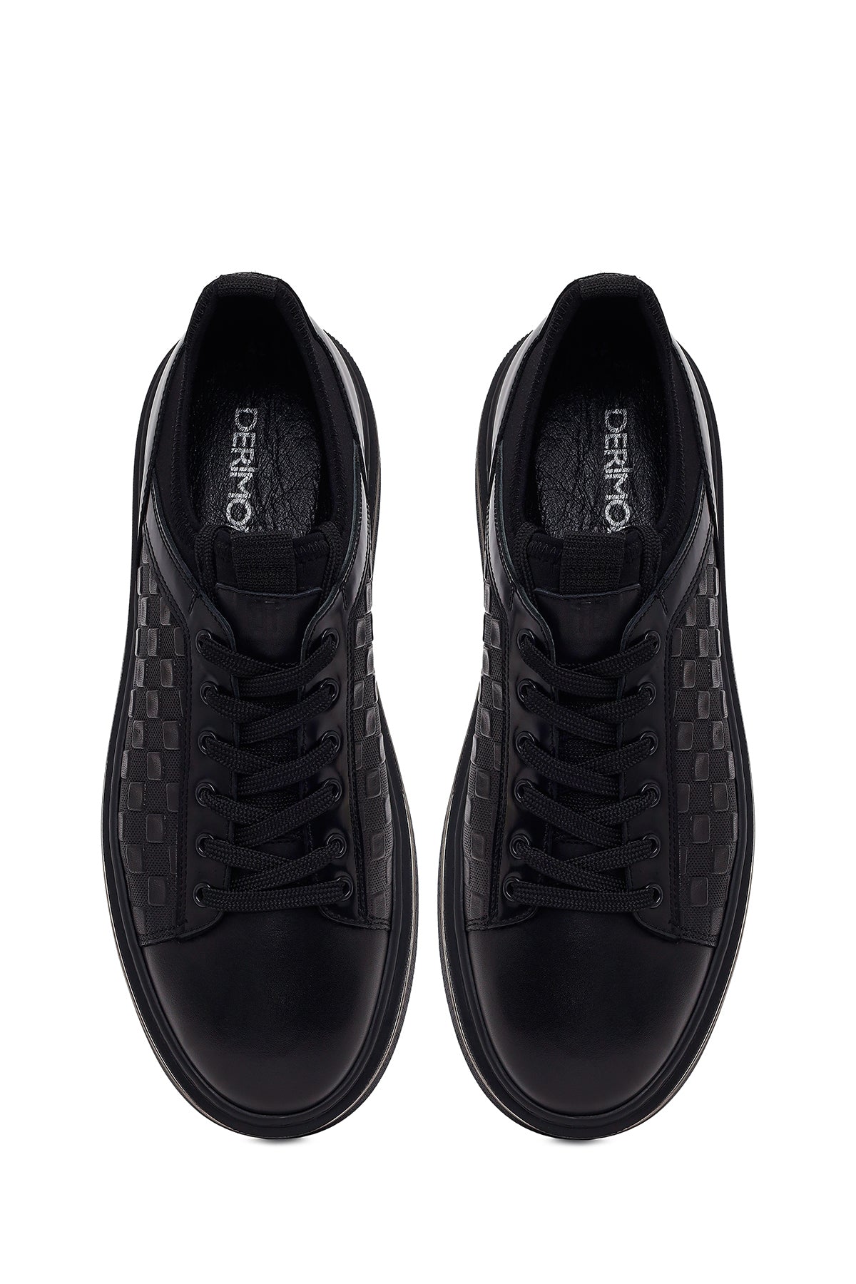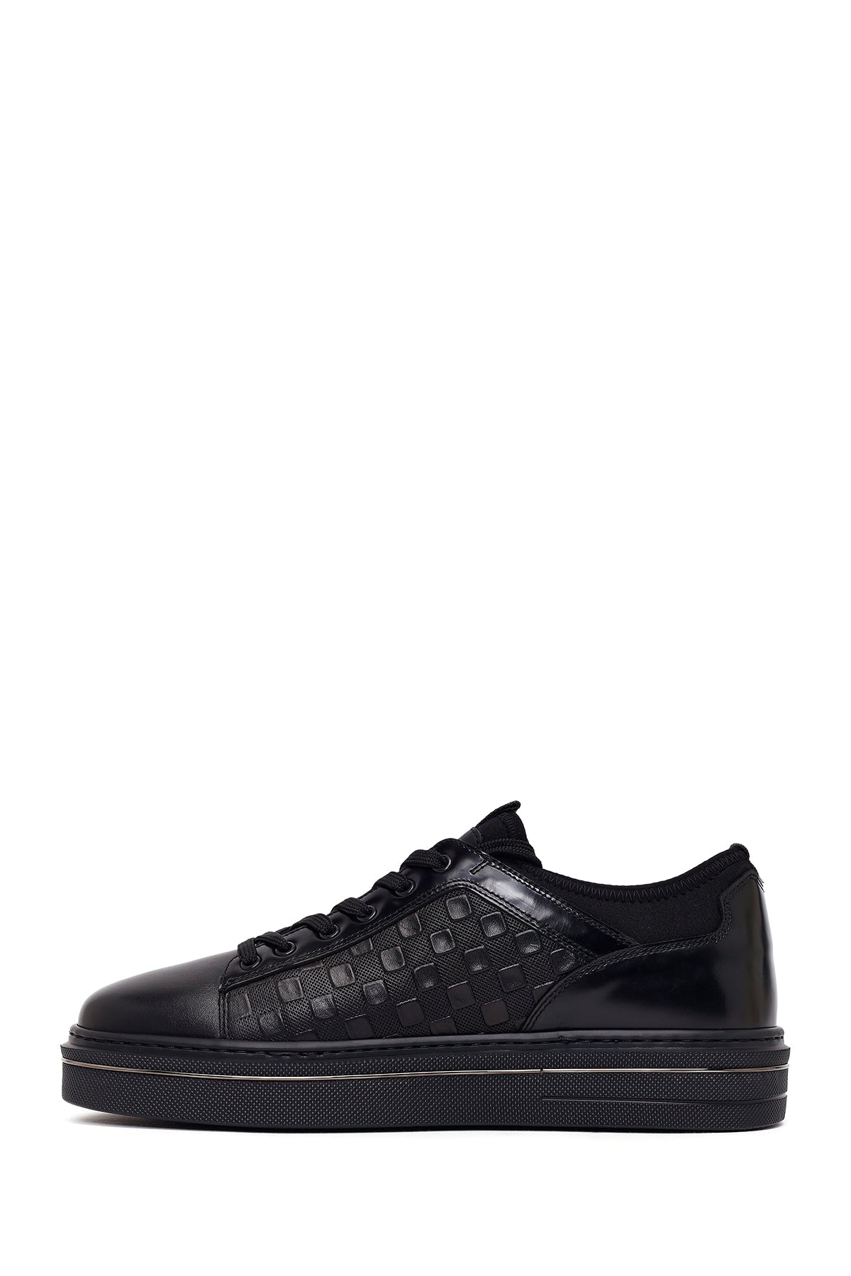 Erkek Siyah Bağcıklı Deri Sneaker