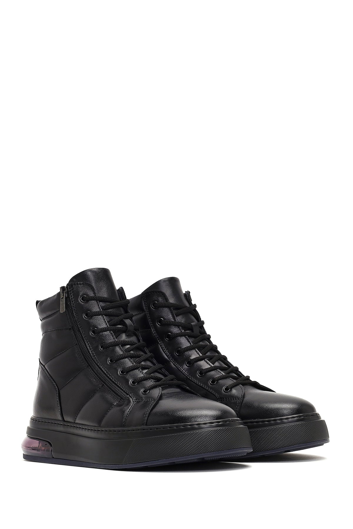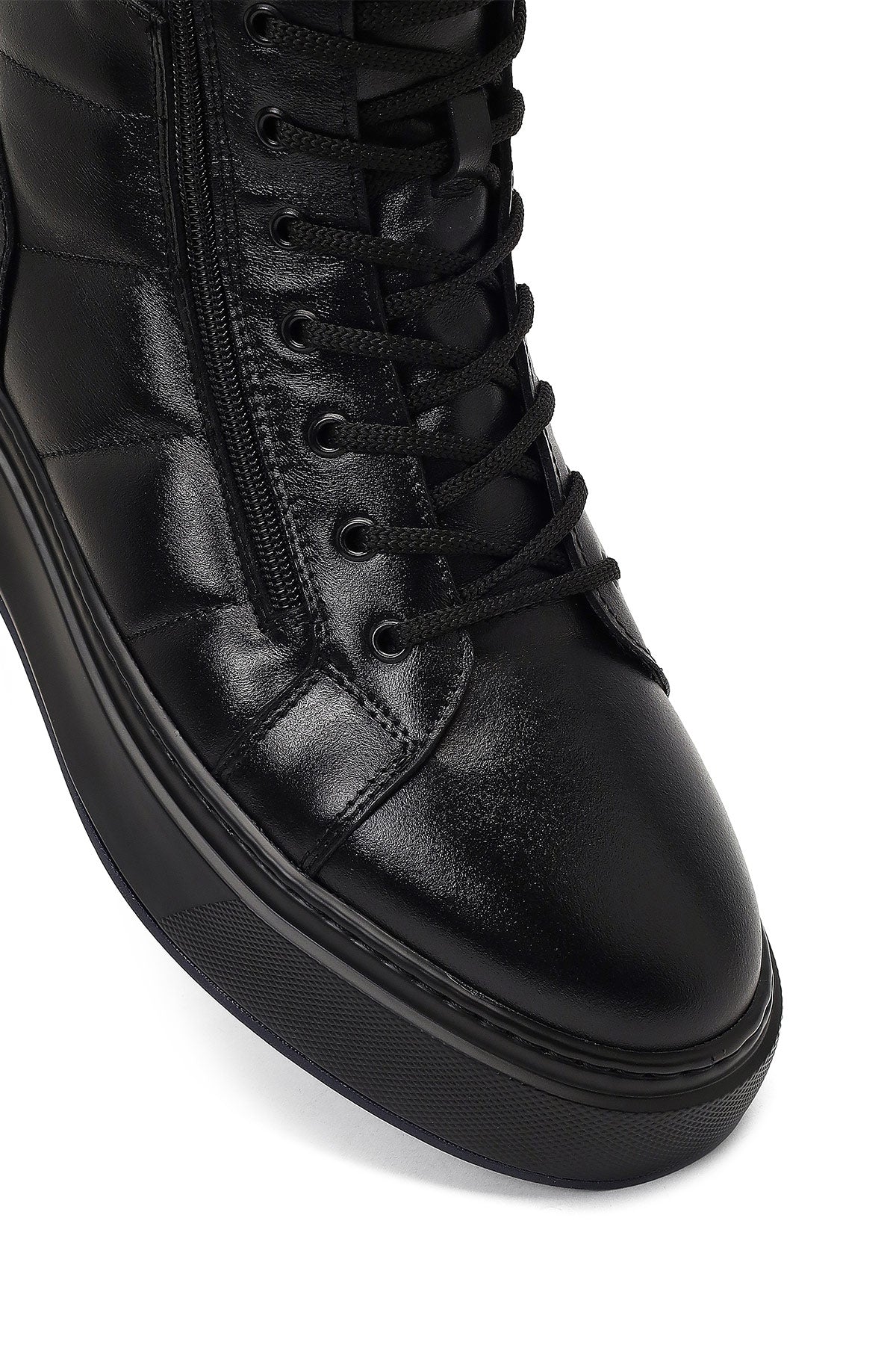 Erkek siyah bağcıklı fermuarlı kalın tabanlı deri spor bot, çağdaş erkek ayakkabıcılığının işlevsellik ve estetiği birleştiren öne çıkan tasarımlarından biridir. Vidala deri malzemeden üretilen bot, pürüzsüz mat yüzey dokusu ile dayanıklılık özelliğini ön plana çıkarırken zamansız bir görünüm sunar. Siyah rengin evrensel çekiciliği, farklı yaş gruplarından erkeklerin gardırobunda kolayca yer bulabilen çok yönlü bir estetik yaratır. Bağcıklı tasarımı ayağı dengeli şekilde sararken, yan fermuar detayı kolay giyim çıkarım imkanı sağlar ve pratik kullanım sunar. İki santimetre topuk yüksekliği hafif bir yükselti kazandırırken, kalın taban yapısı sayesinde yürüyüş sırasında üstün destek ve denge sağlar. Deri iç astar malzemesi ayak sağlığını koruyucu özellik gösterirken, nefes alabilir yapısı uzun süreli kullanımlarda ferahlık hissi yaratır. Bilek yüksekliğindeki tasarım ayak bileği çevresinde destekleyici koruma sunarken, soğuk hava koşullarına karşı etkili koruma oluşturur. Yan panel dikişleri ürünün yapısal dayanıklılığını artırırken, form verici çizgileri ile modern estetik yaratır. Burun formu yuvarlak hatlarla tasarlanmış olup, ayak parmaklarına geniş hareket alanı tanır. Kalın profilli taban yapısı güncel spor bot trendlerine uygun tasarım sergilerken, zemin temasında üstün destek sağlar. Siyah dış taban dokulu yapısı ile zemin tutuşunu güçlendirirken, farklı yüzey koşullarında güvenli adımlar atılmasını destekler. Ağız çevresi yumuşak dolgu malzemesi ile desteklenerek bot giyim çıkarım sürecinde kolaylık sağlar. Topuk arkası güçlendirilmiş yapısı ile ayak bileği desteği sunarken, günlük aktiviteler sırasında denge korunmasına yardımcı olur. Erkek deri spor bot kategorisinde öne çıkan model, şehir içi kullanımda hem günlük hem aktif yaşam tarzına uygun çok amaçlı bir yapı sunar. Renk paleti siyah tonu ile farklı giyim kombinasyonlarına kolayca uyum gösterirken, özellikle koyu renk kıyafetlerle mükemmel uyum yaratır. Ürün kodu: 25WFD633318