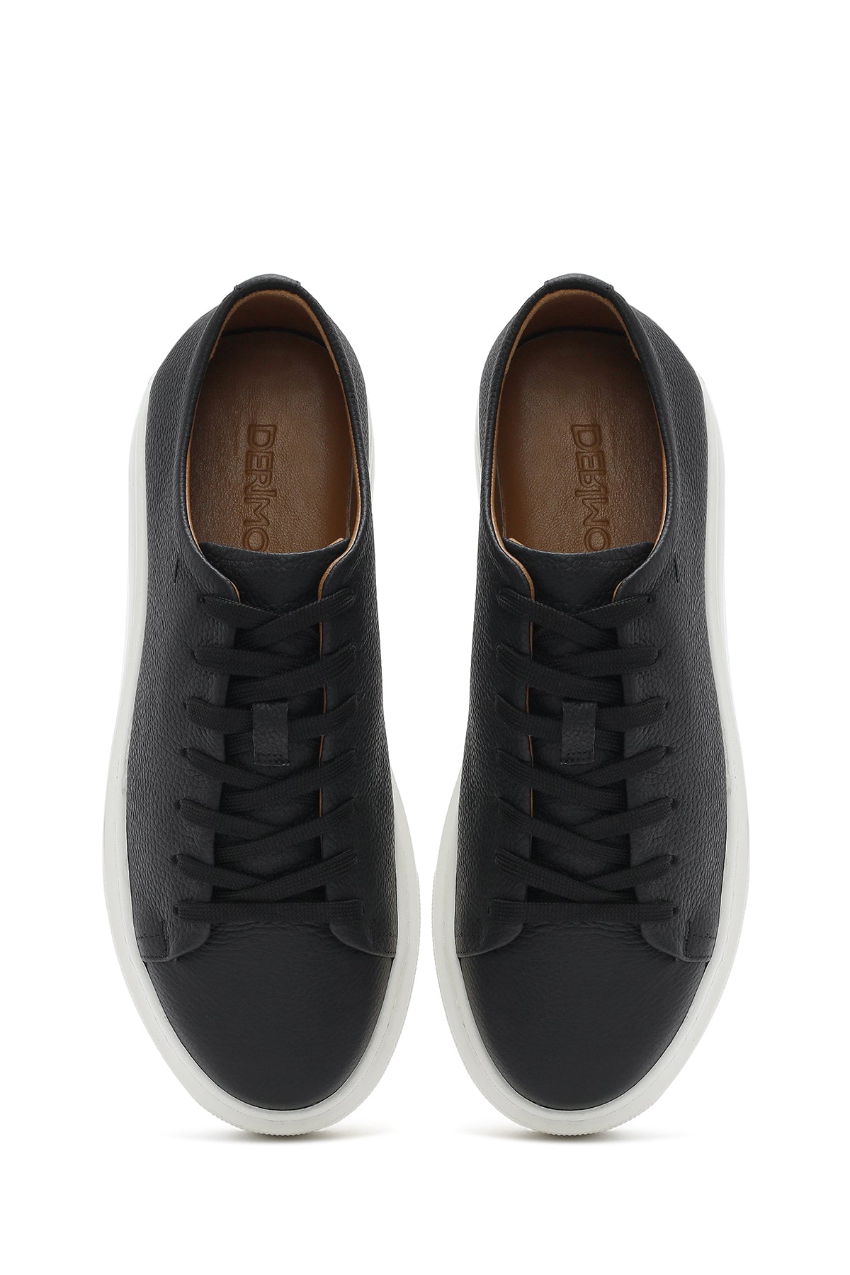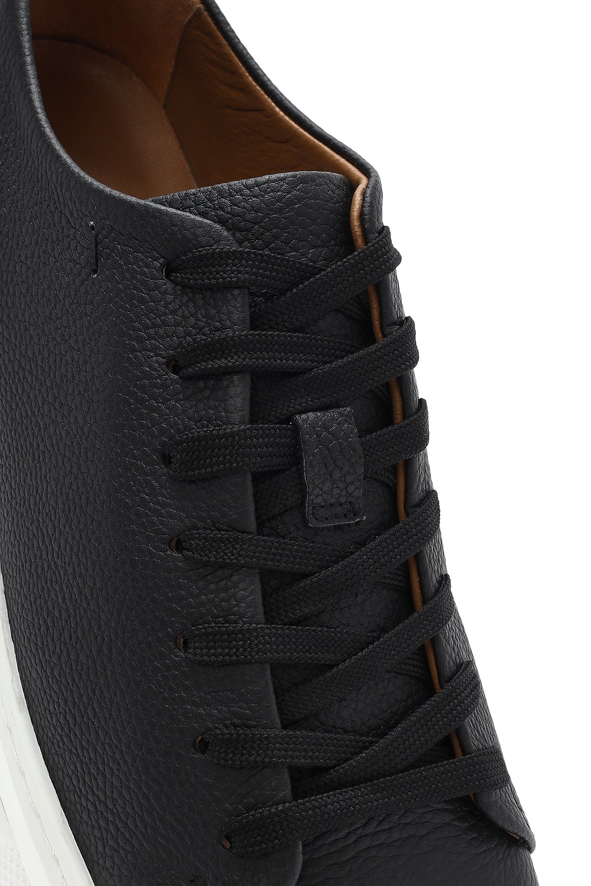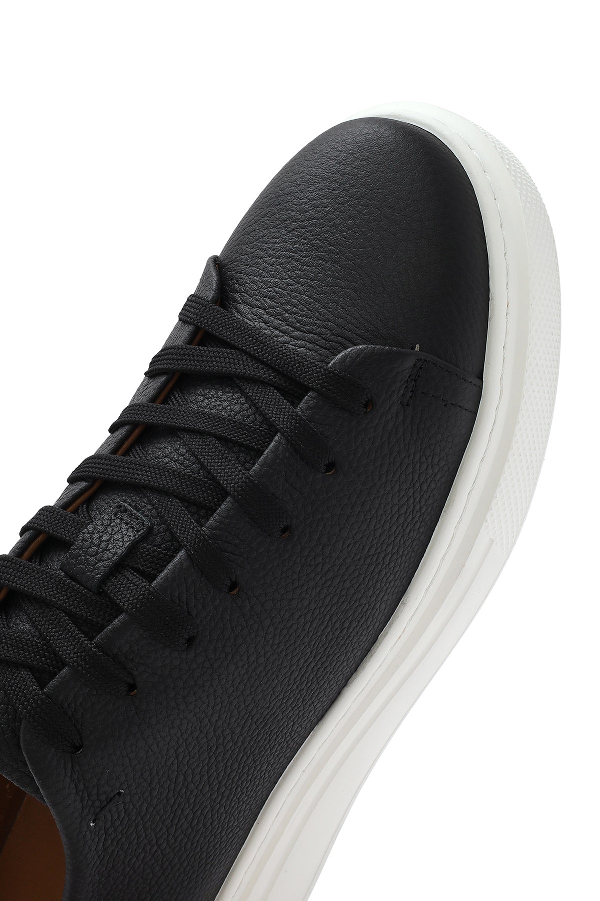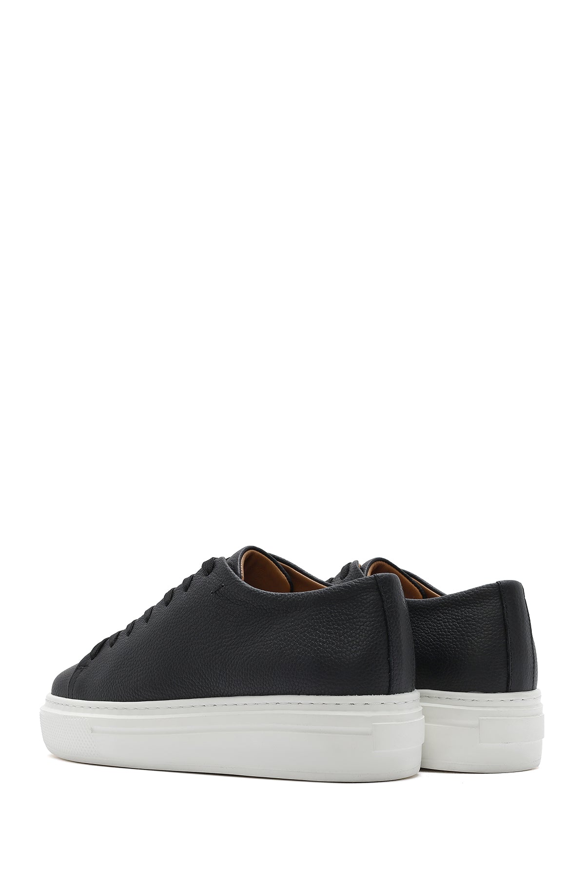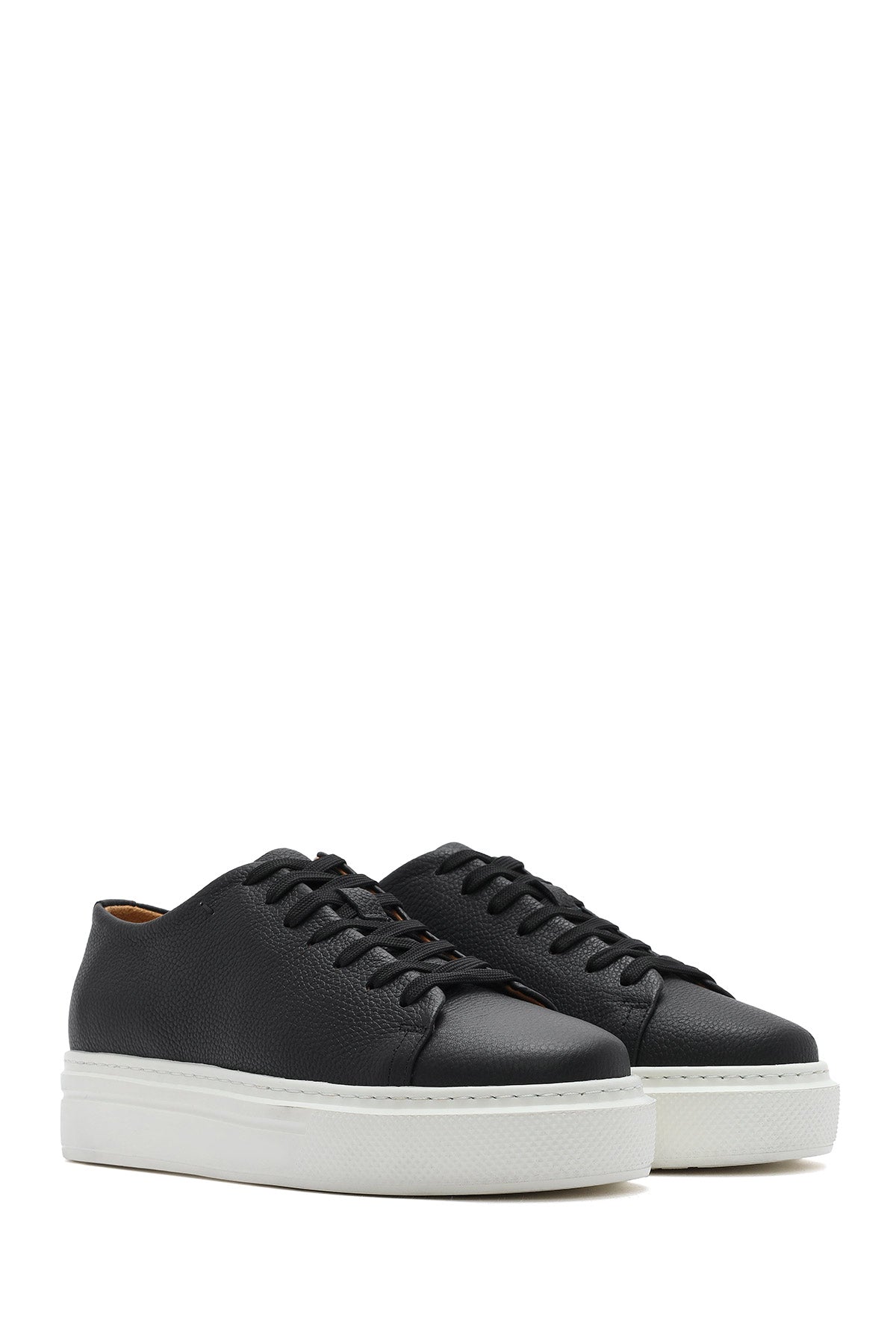 Erkek Siyah Bağcıklı Kalın Tabanlı Deri Sneaker