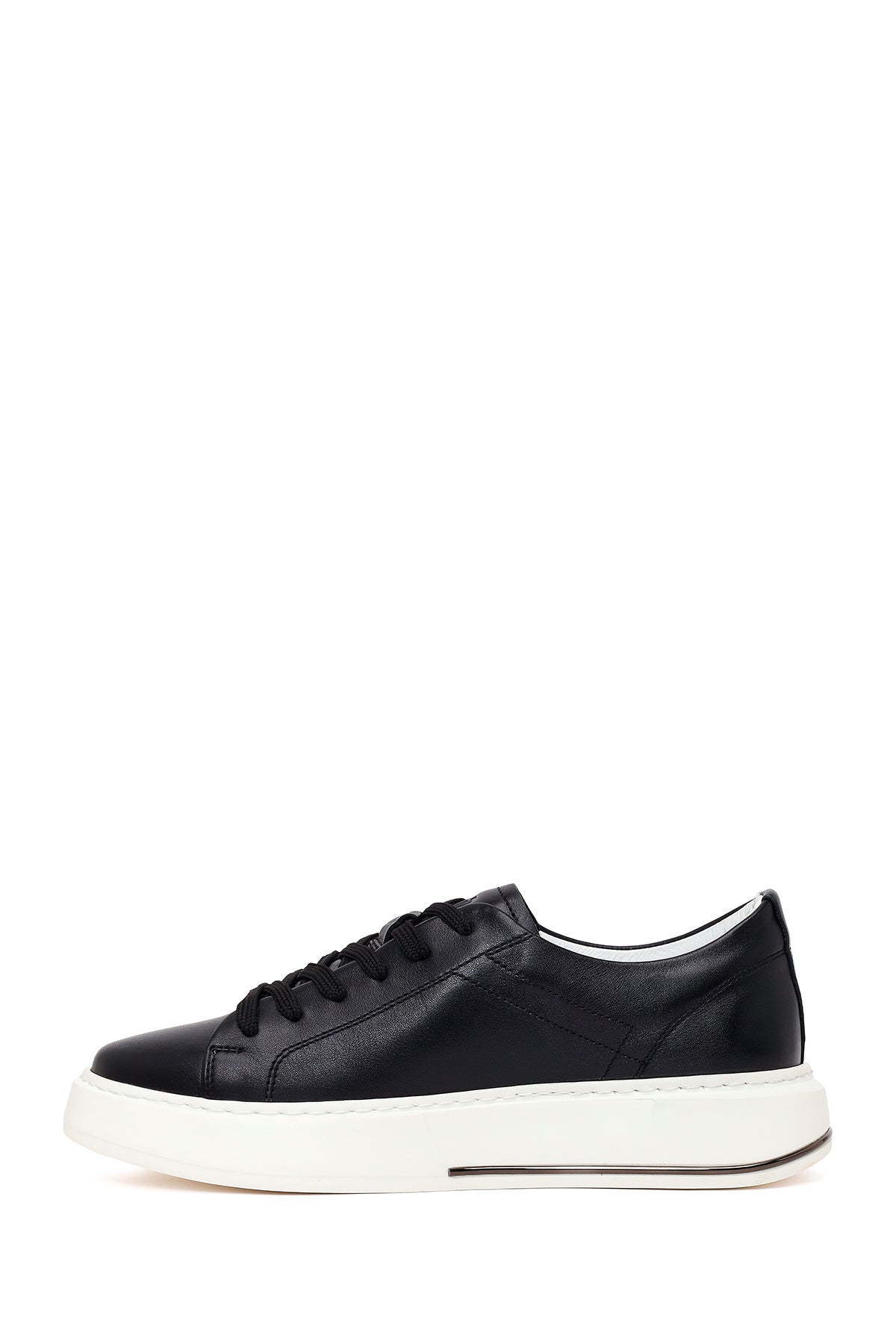 Erkek Siyah Bağcıklı Kalın Tabanlı Deri Sneaker