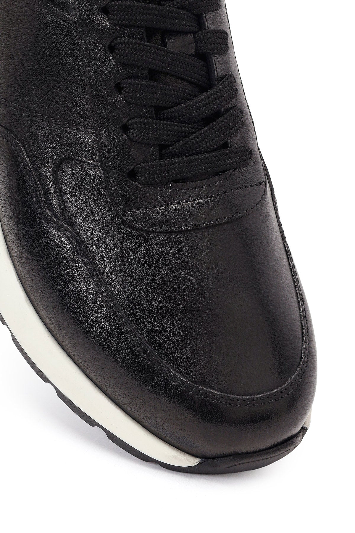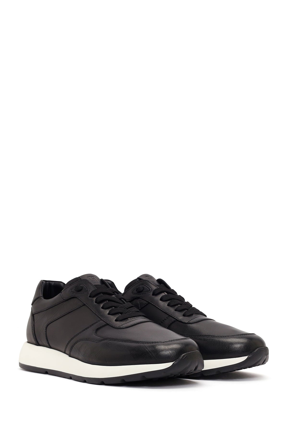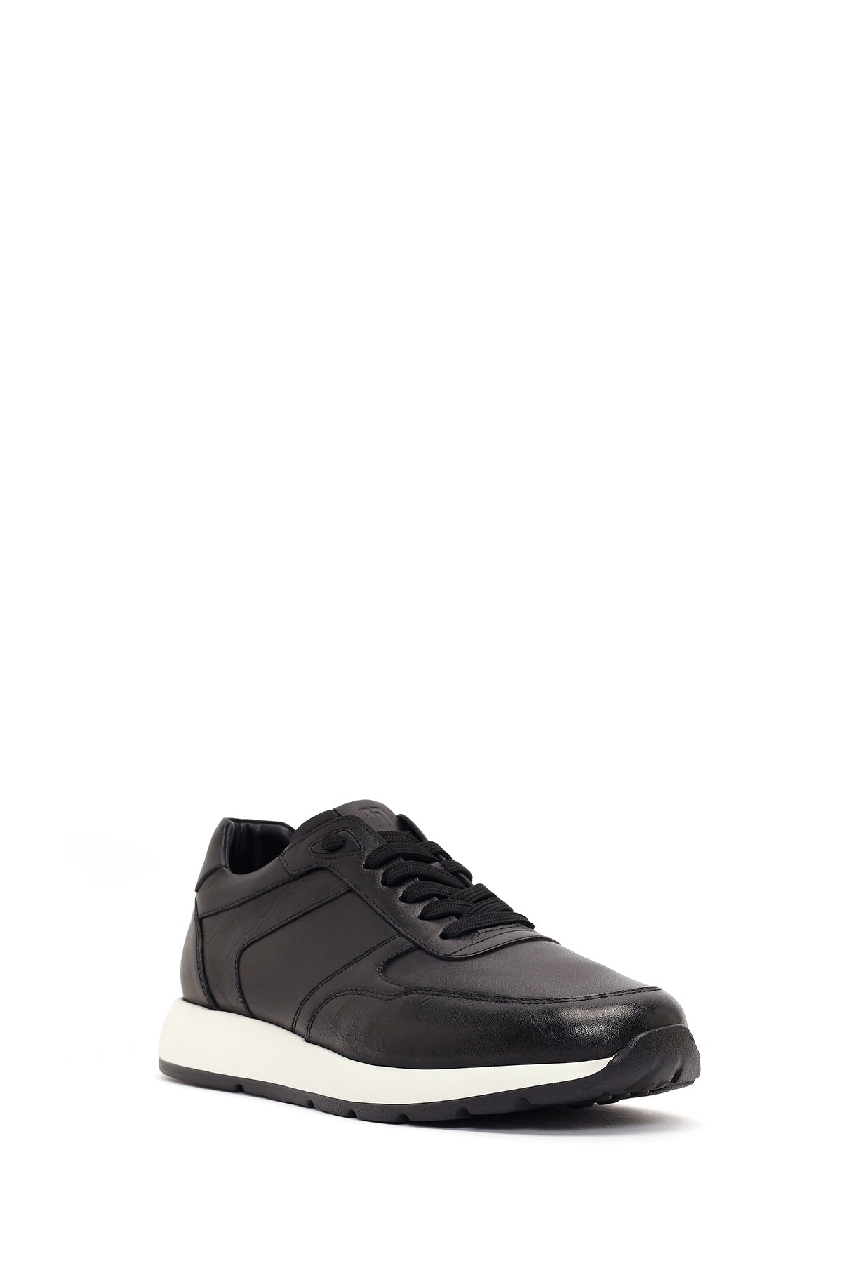 Erkek Siyah Bağcıklı Kalın Tabanlı Deri Sneaker