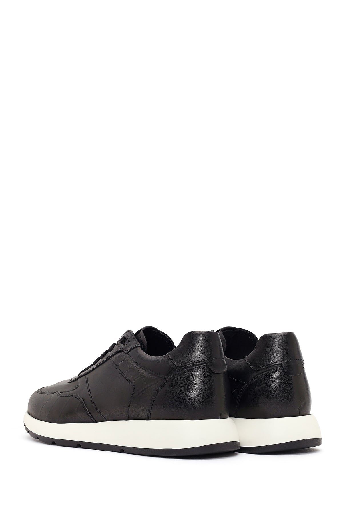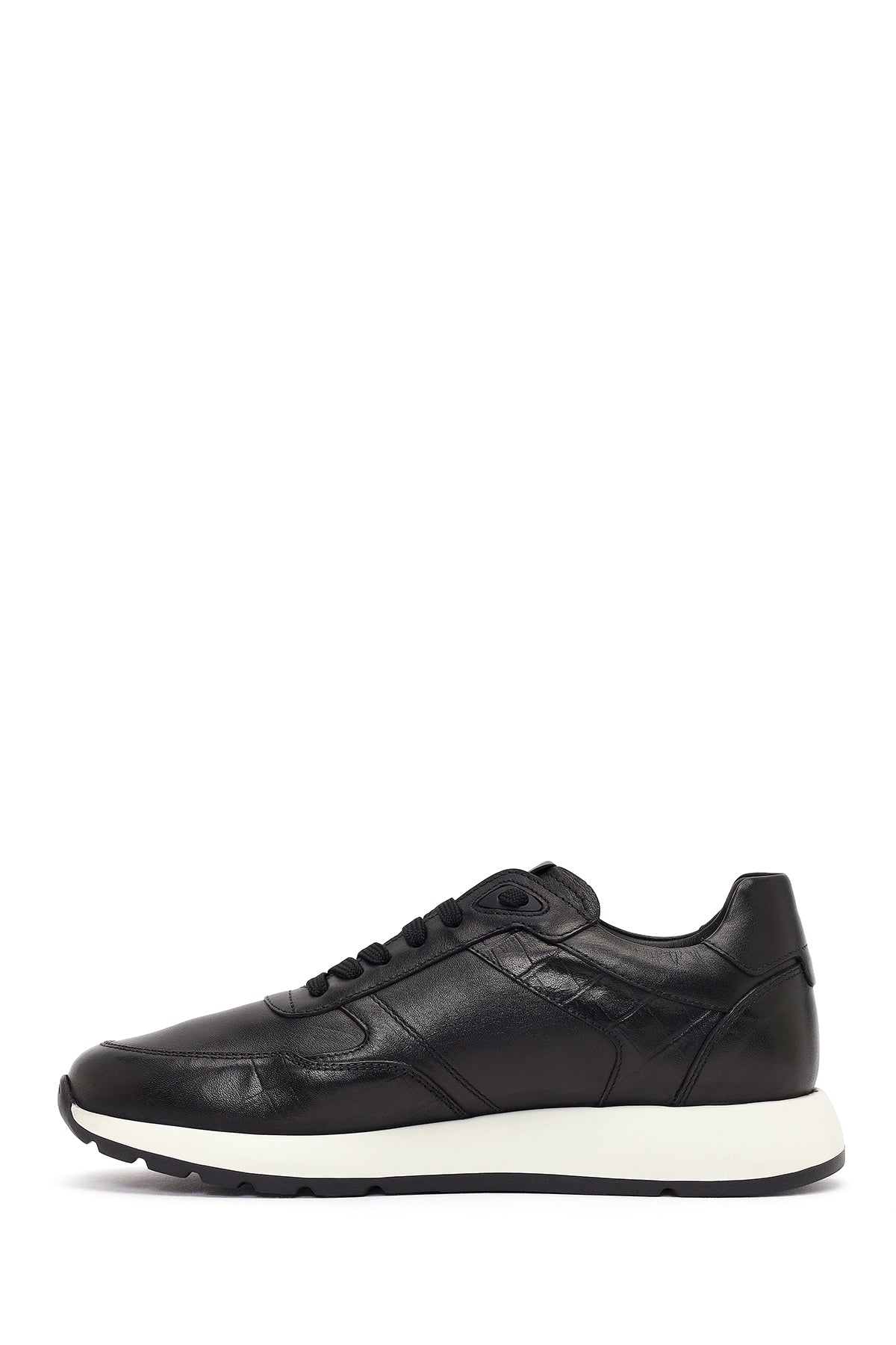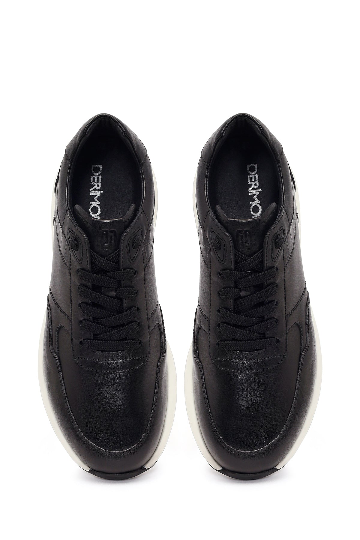 Erkek Siyah Bağcıklı Kalın Tabanlı Deri Sneaker