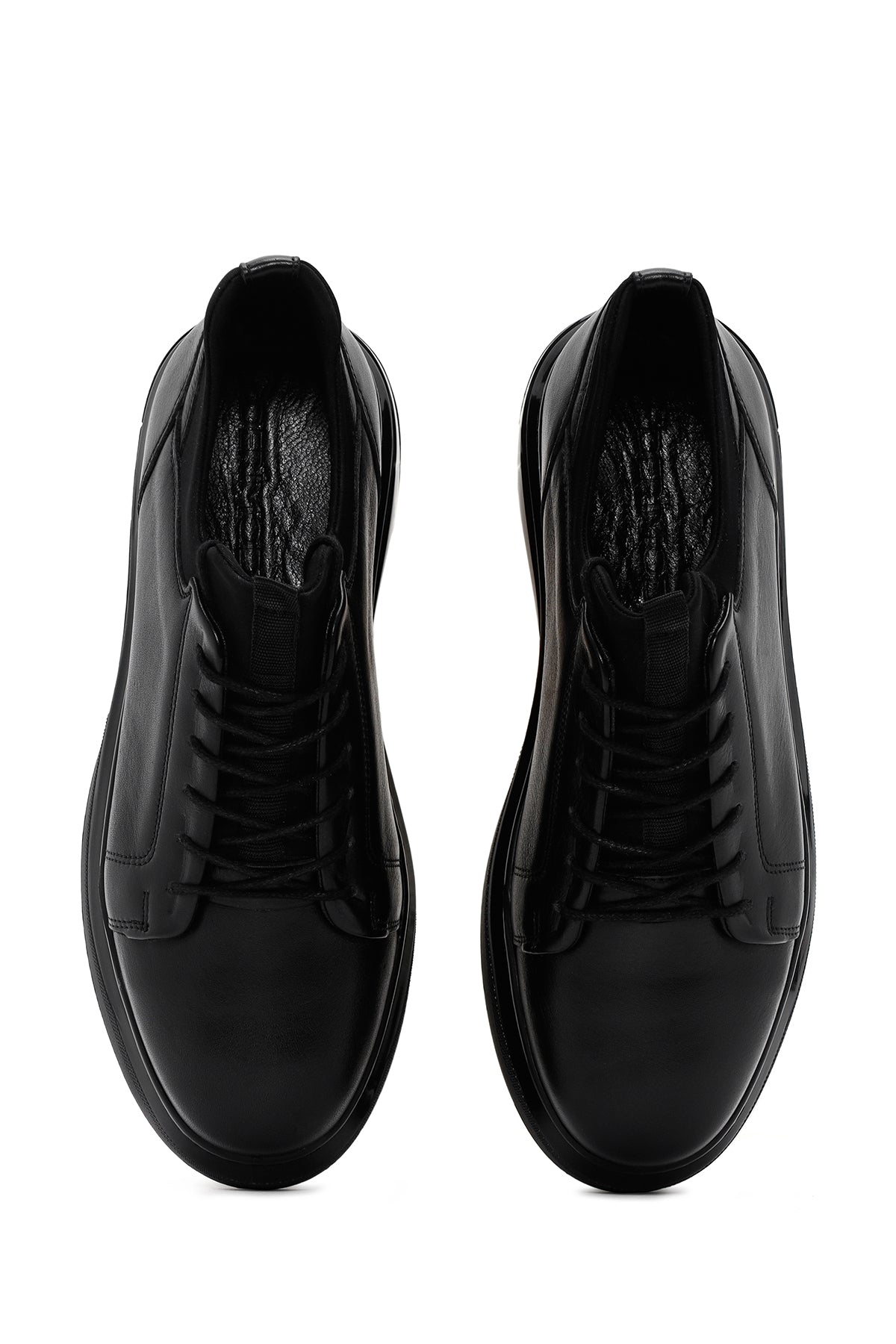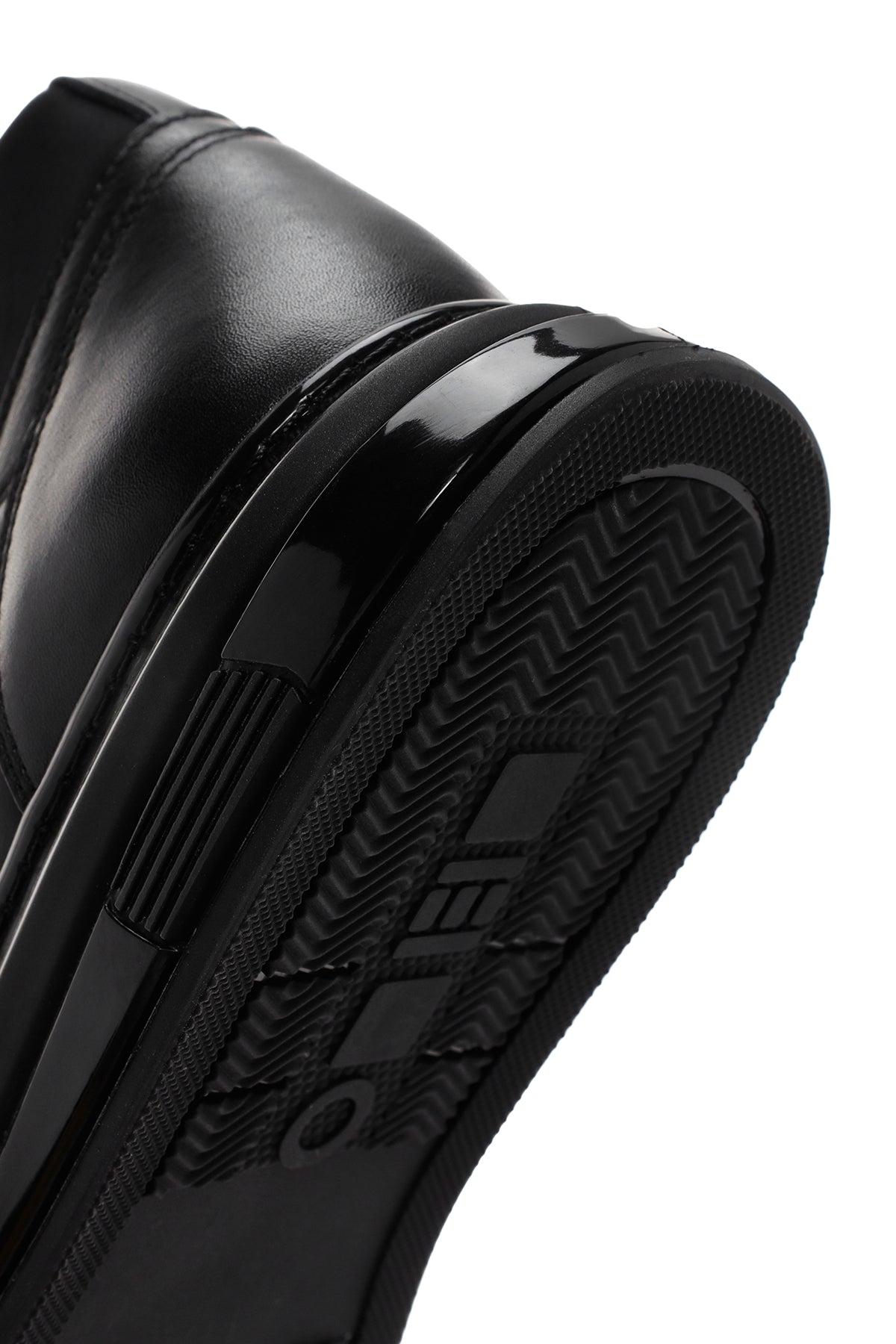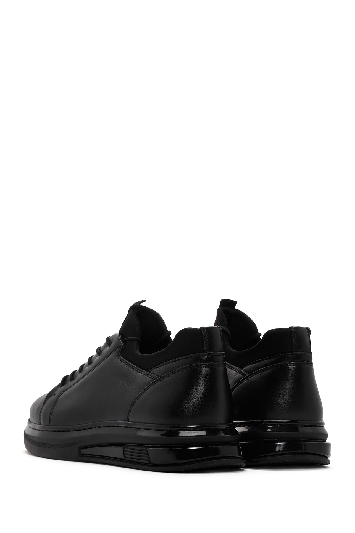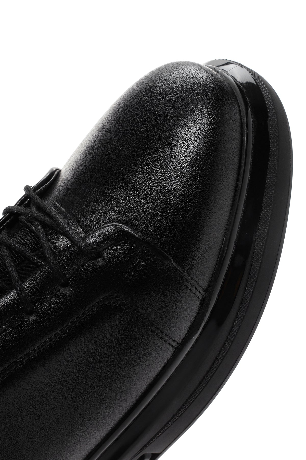 Erkek Siyah Bağcıklı Kalın Tabanlı Deri Sneaker
