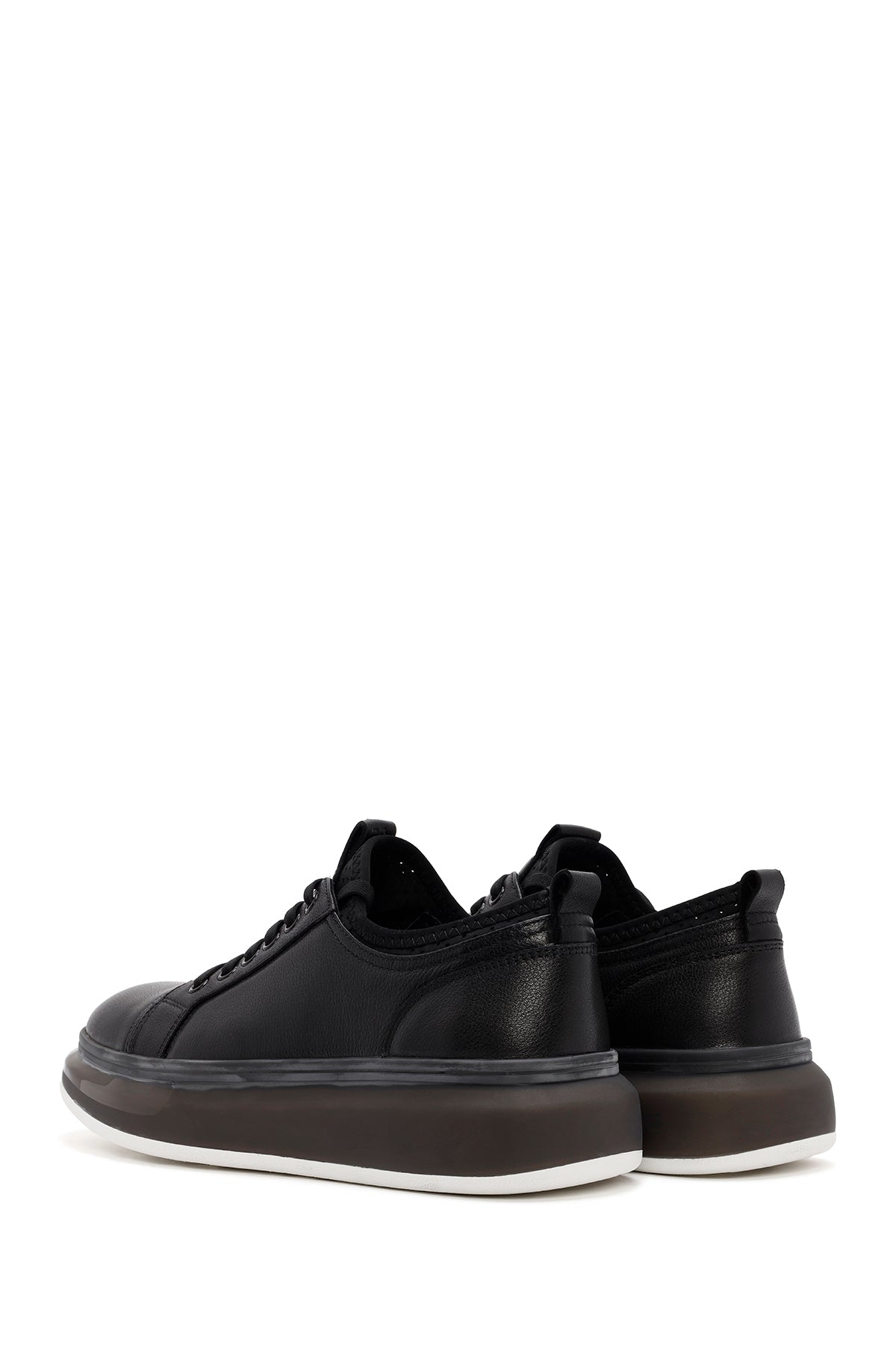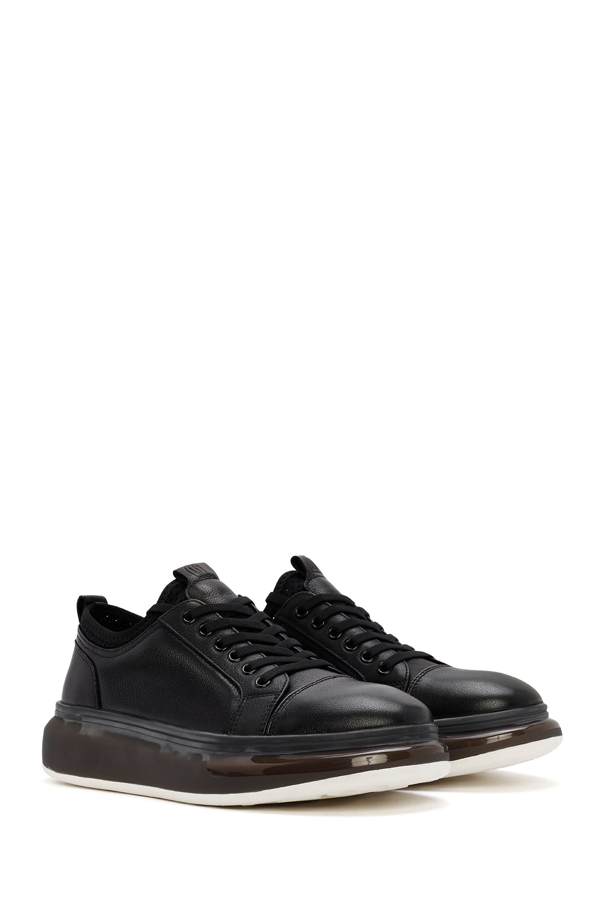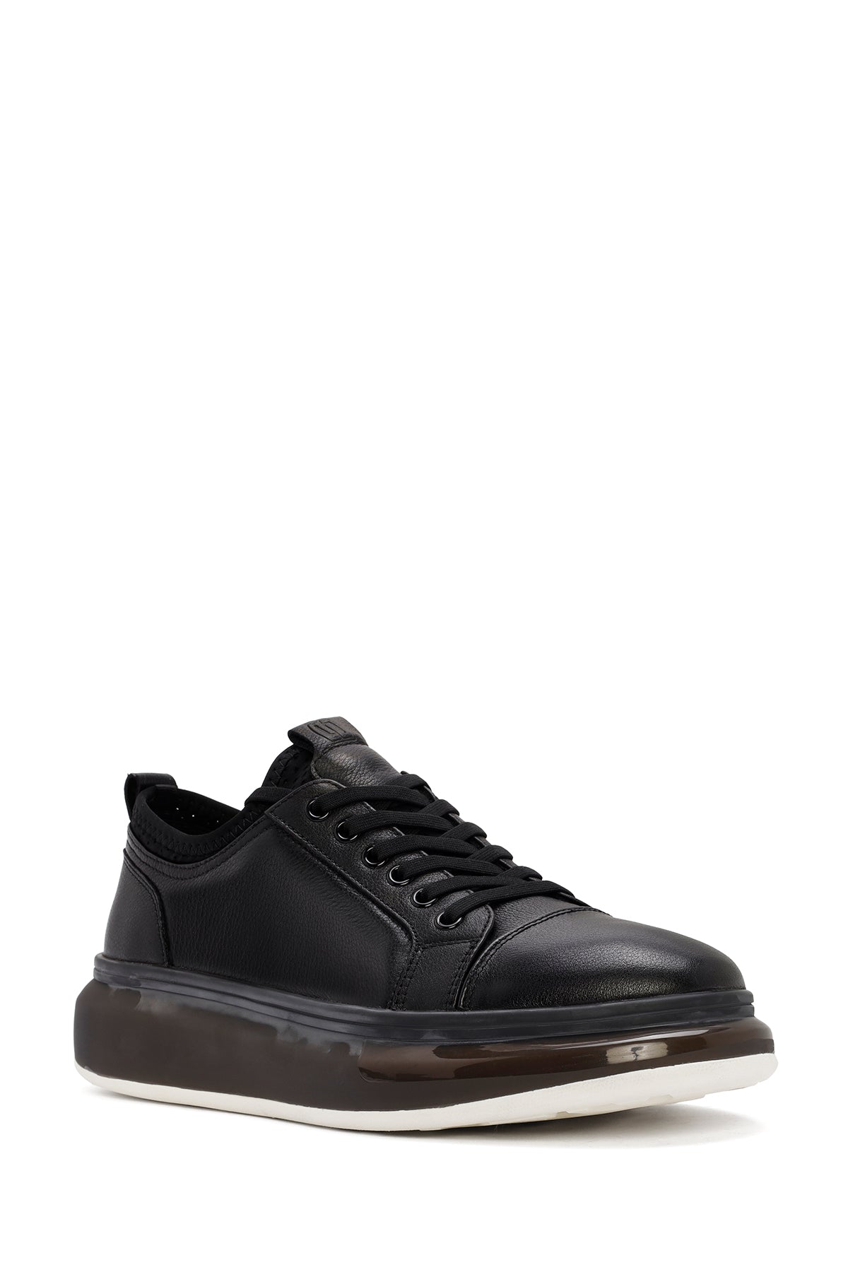 Erkek Siyah Bağcıklı Kalın Tabanlı Deri Sneaker