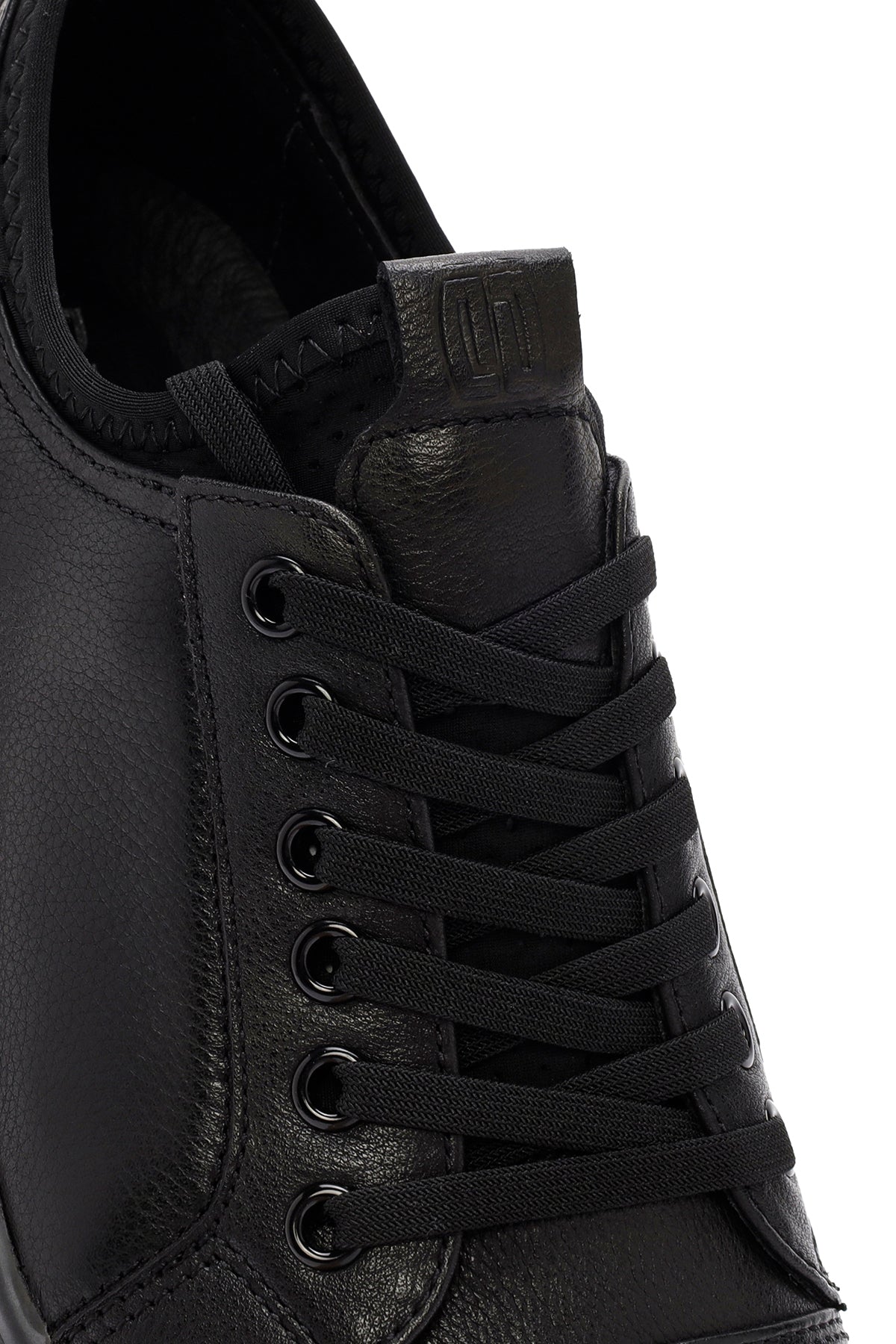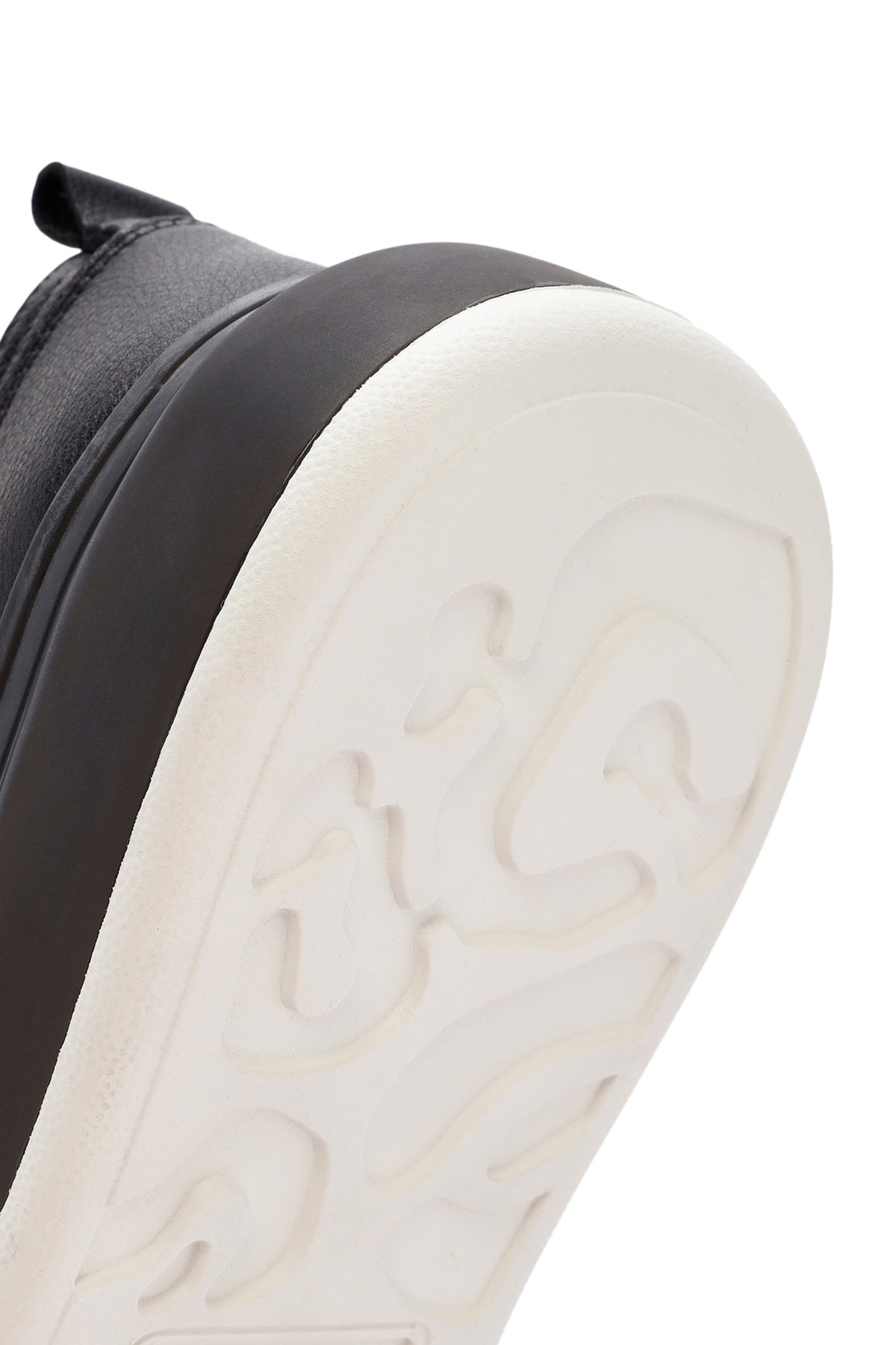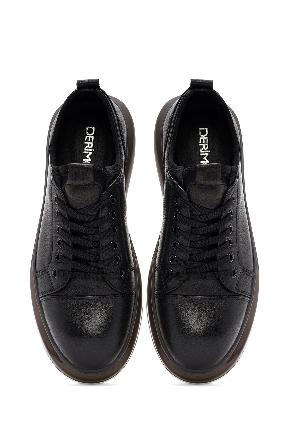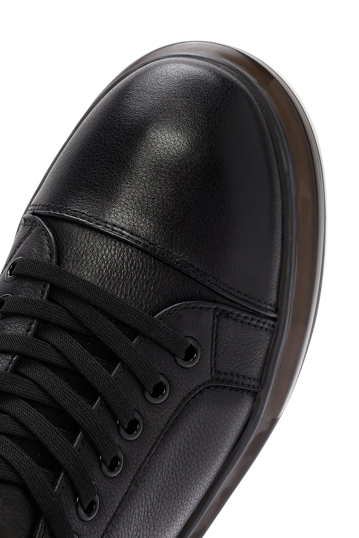 Erkek Siyah Bağcıklı Kalın Tabanlı Deri Sneaker